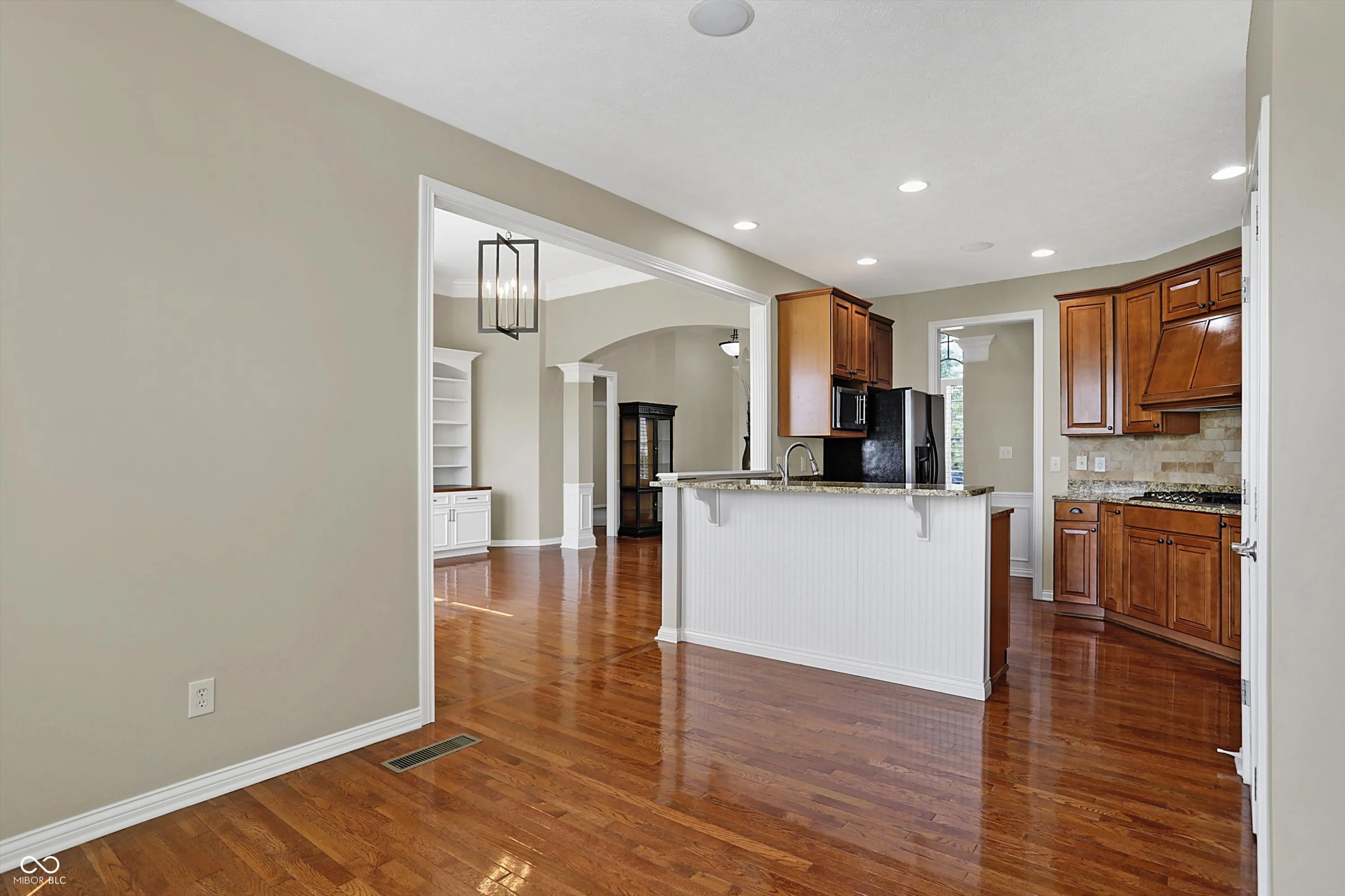 Step into this stunning 4-bedroom ranch home, where comfort meets style. The inviting entrance through the new front door opens to an appealing floor plan featuring a dining area and family room, complete with a cozy gas fireplace and custom built-ins. The kitchen featuring a new dishwasher, gas cooktop, fridge, garbage disposal and faucet, offers ample seating options at the two-tier countertop or in the adjacent eat-in area, perfect for casual dining. Designed with privacy in mind, the split-bedroom layout has two bedrooms connected by a Jack and Jill bathroom, while the owner’s suite boasts dual walk-in closets, whirlpool tub, and a tile shower. Relax in the sun room with heated floors, which leads to an open patio and a fully fenced backyard with unobstructed views and exterior lighting. The finished lower level with new waterproof laminate and carpet, is perfect for entertaining, featuring a wet bar with space for a bar fridge and a large entertainment area and the fourth bedroom/FLEX room with build in cabinets complete this impressive home. 3 car side load garage with storage wall cabinets and shelving.