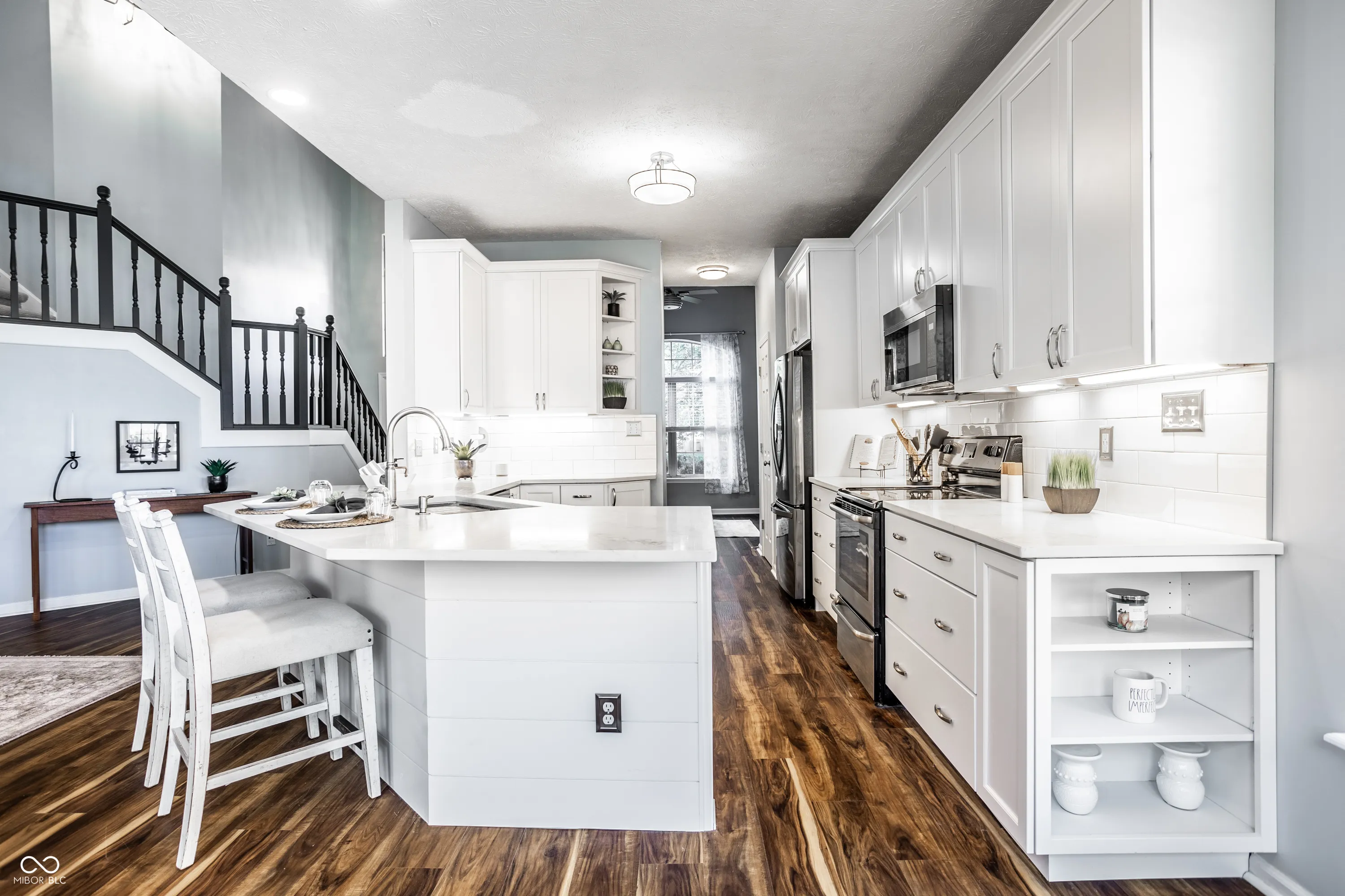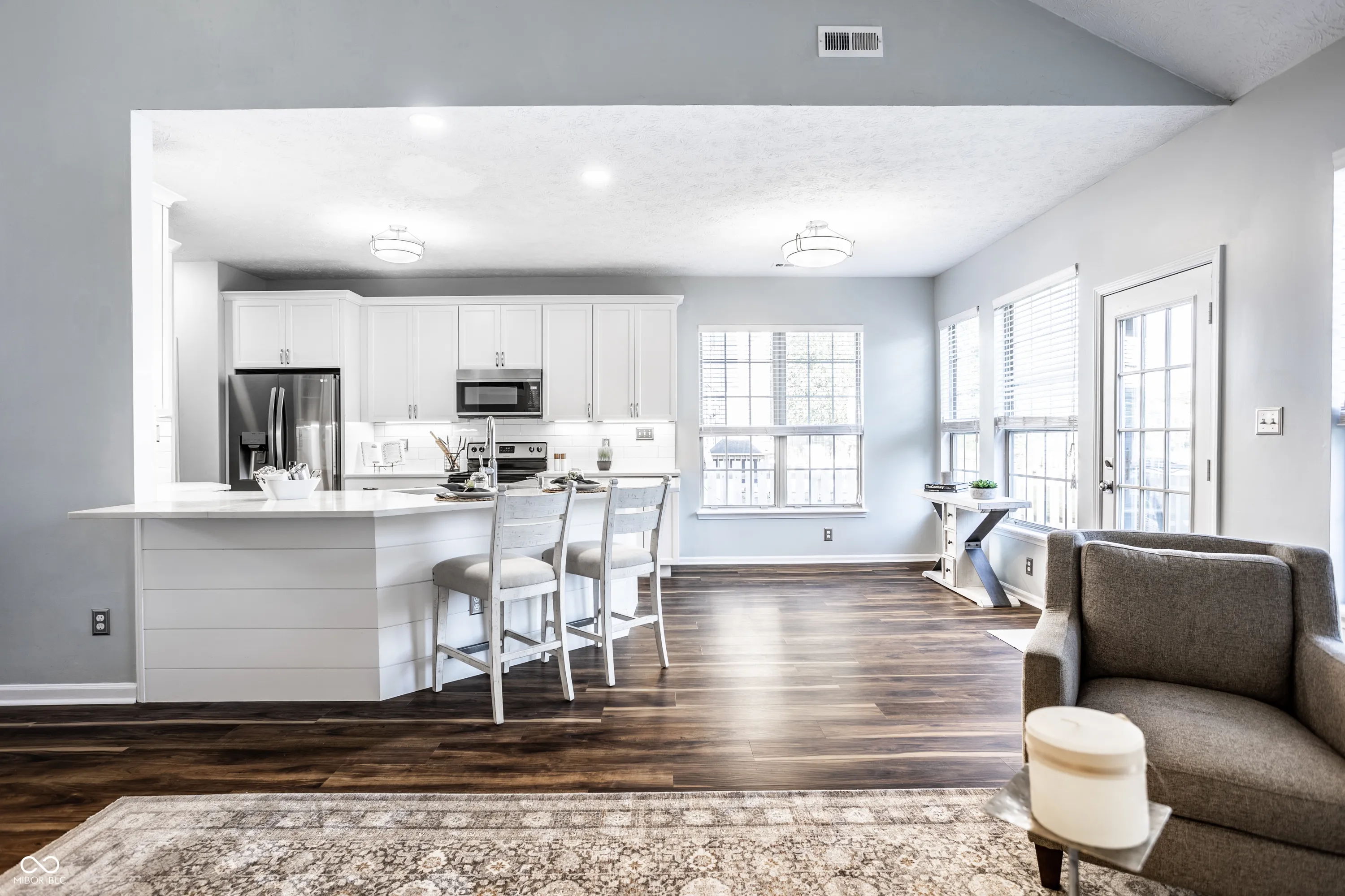 Don’t miss this exceptional opportunity to own a fully renovated home in the coveted Lakeside Green at Windermere community, within the highly acclaimed HSE School District. This beautifully updated residence stands out with its brand-new roof, fully renovated kitchen and primary bath, and updated exterior trim and landscape. Situated on a private, fully fenced lot with scenic views of a large pond, this home offers both style and tranquility. Upon entering, you’re greeted by a grand two-story foyer and a newly updated staircase that enhances the open floor plan. The interior features luxurious vinyl plank floors, gas log fireplace with a new mantle, and stylish tile & shiplap surround. The main floor primary suite includes a pocket door entry to the upscale bathroom with a spacious custom tile shower, double vanity, and a large walk-in closet. Upstairs are two additional bedrooms and a full bath. Step outside to enjoy the brand-new deck and lush landscaping. Windermere Park, featuring tennis/pickleball courts and a pool club (pool membership available at an additional cost) is just a few blocks away. Conveniently located near IN37/69 interstate, Geist, restaurants, shops, schools, and downtown routes, this home truly offers the best of both comfort and convenience. See the extensive list of updates in the photos.