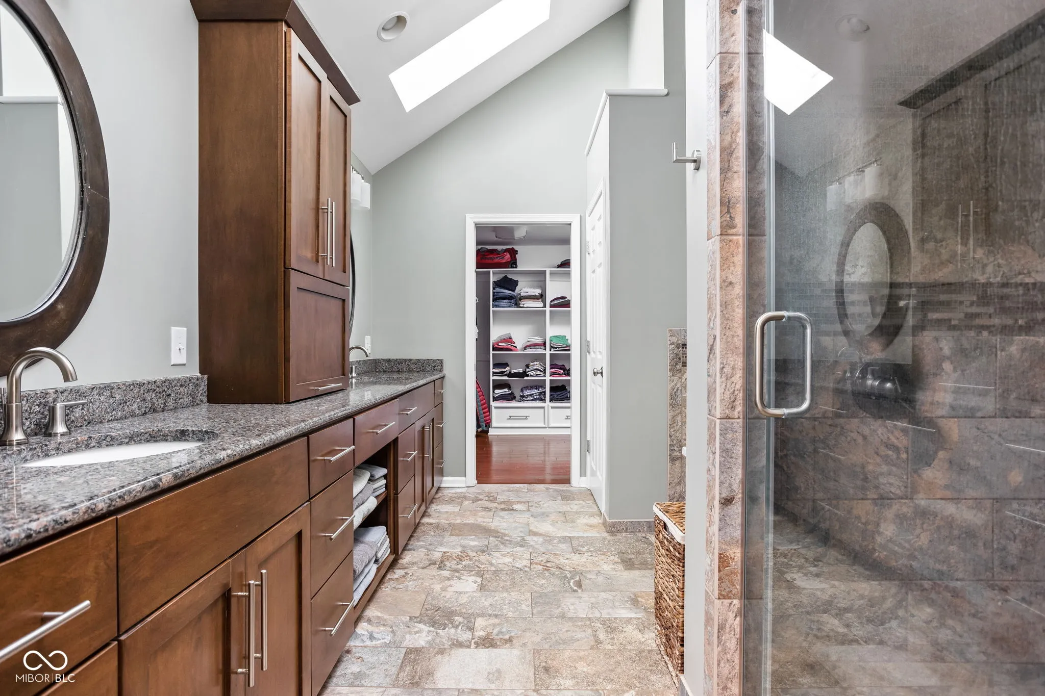 Nicely updated Meridian Hills French style brick ranch on a gorgeous wooded deep lot on wonderful Pennsylvania street. The sprawling main level floor plan has newer solid hand scraped hardwood floors throughout. The open kitchen with large bar seating area is the center of the home and is ideal for entertaining leading to two family room areas and a fabulous tiled sunroom with turret ceiling and panoramic views of the private expansive backyard. There are two very large bedroom suites on opposing sides of the home, giving everyone plenty of space. The guest suite has custom built-ins and a nicely updated large bathroom with walk-in shower, double vanities, and gorgeous tile work. Then spacious primary suite has raised cathedral ceilings with a double sided fireplace and sitting area. The primary bath has walk-in shower, double vanities, soaking tub, and huge custom walk-in closet. 3rd bedroom is also an ideal private office area. Beautiful private stamped concrete back patio overlooks expansive rolling backyard. Lower level has plenty of storage and work-out space plus attached 2 car garage underneath. Wonderful well maintained home with a premium location just minutes away from multiple schools, Arden, Holliday Park, Broad Ripple, and everything the north side of Indianapolis has to offer.