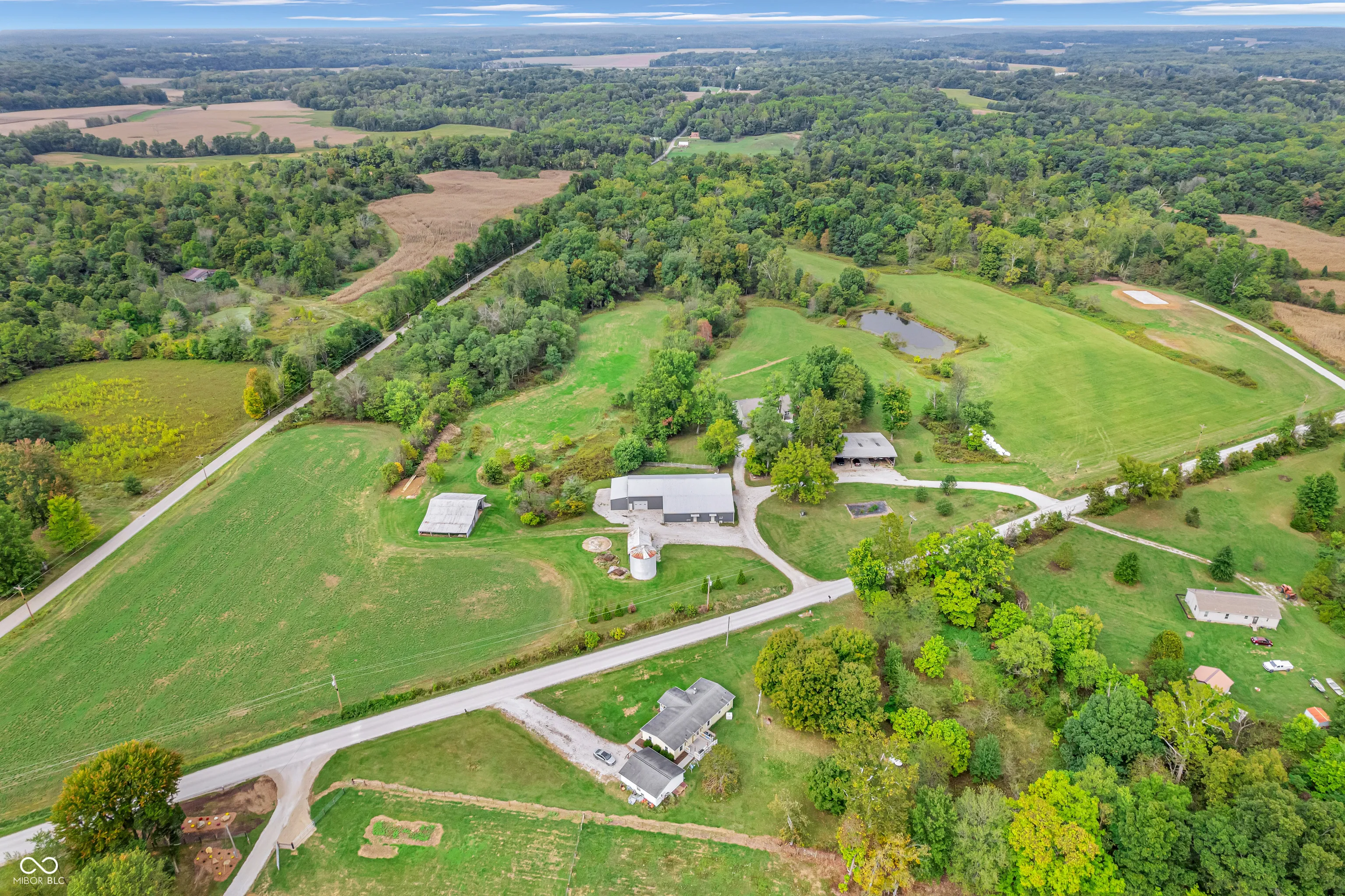 Discover your ultimate retreat on 71 acres of stunning landscape, featuring a serene 1/2-acre pond. This expansive 4,400-square-foot home boasts a luxurious primary ensuite, a dedicated office, and a large kitchen with custom cherry cabinets, seamlessly flowing into an open dining and living area. Enjoy the finished walkout basement with three additional bedrooms, a theater room, and a versatile bonus room. With ample storage throughout and the potential for additional living space in the equipped pole barn, this property offers a perfect blend of comfort and opportunity. Explore 14 acres of classified and non-classified forest with marketable timber and additional features, including a historic barn, and a large grain bin, all ready for your vision! (Acreage to be sold is 33 acres. The remaining acres have been divided off and has been given to assessor’s office to update the property card.)