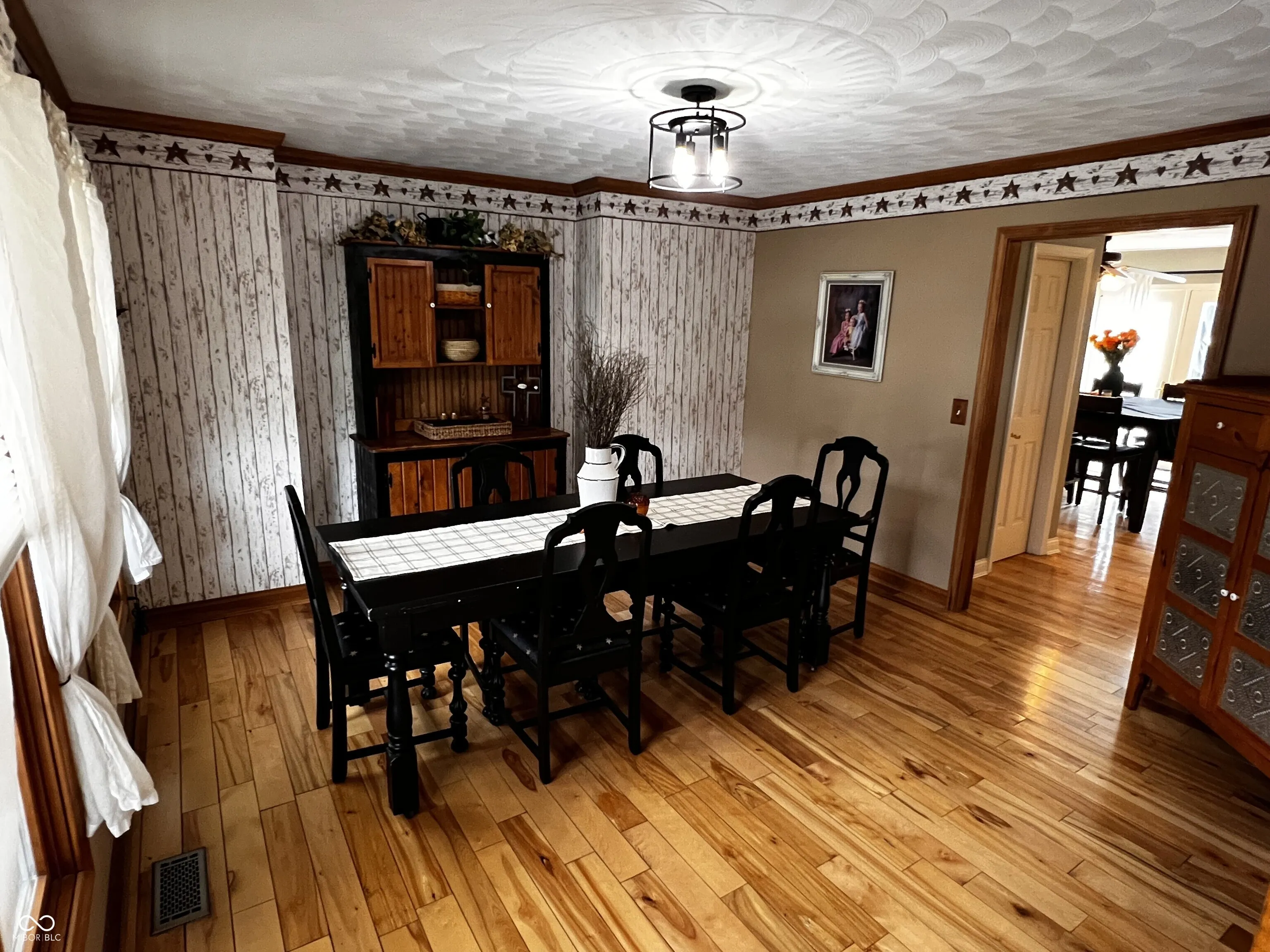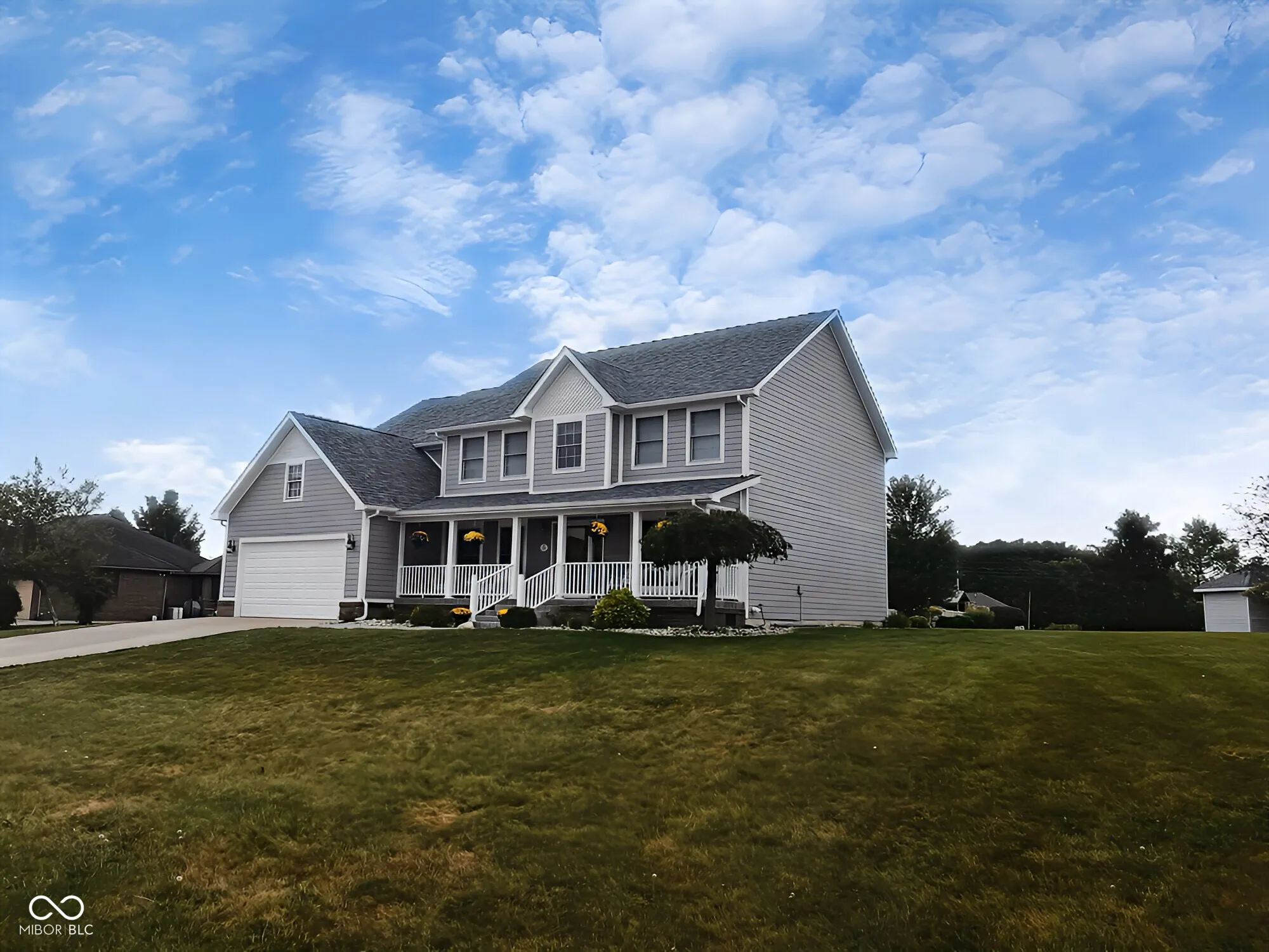 This gorgeous two-story, 4-bedroom, 2 1/2 bath Country-style home offers 4,597 sq. ft., with 3,902 sq. ft. of finished living space. Located within the Kokomo city limits but close to the highly acclaimed Northwestern School District, this home blends city convenience with access to top-rated schools. The freshly painted grand two-story foyer with hardwood floors and a solid wood staircase welcomes you. The main level features a spacious living room that flows into a light-filled family room, complete with a charming two-way fireplace that also warms the eat-in breakfast nook. French doors in the nook lead to an expansive wood deck, perfect for outdoor gatherings. The adjacent kitchen includes a large island, stainless steel appliances, a butler’s pantry, and a broom closet. A nearby laundry room with private door backyard access and a freshly painted two-car garage add more convenience. The main level also includes a half bath and a formal dining room for those special occasions. Upstairs, the luxurious owner’s suite offers a tray ceiling, en-suite bathroom with vaulted ceilings, a whirlpool tub, a walk-in shower, and an enormous two-person walk-in closet. Three more bedrooms and an additional full bath complete the second floor. The partially finished basement includes two spacious rooms ideal for family or game areas, with plumbing ready for an additional bathroom. Outside, the large deck opens to an enormous backyard complete with a beautifully appointed storage shed. The exterior features freshly painted fiber cement siding, a newly added very large covered country front porch, and a new roof. This home offers style, space, and comfort-move-in ready! New Water Heater 11/2024