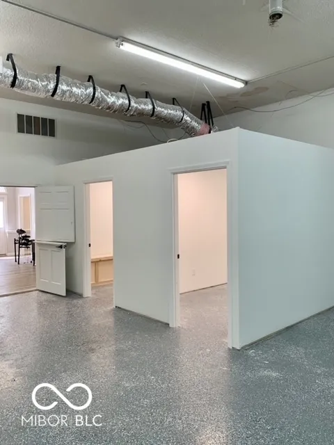 Space is nicely updated with three private offices, large open space with kitchenette, as well as utility/storage space with overhead door. Assignment of existing lease with four years remaining. Landlord may require new lease to be signed with substantially same terms. Space previously used for music therapy, both private and group experience. It has real potential for a variety of businesses as well as professional practices.