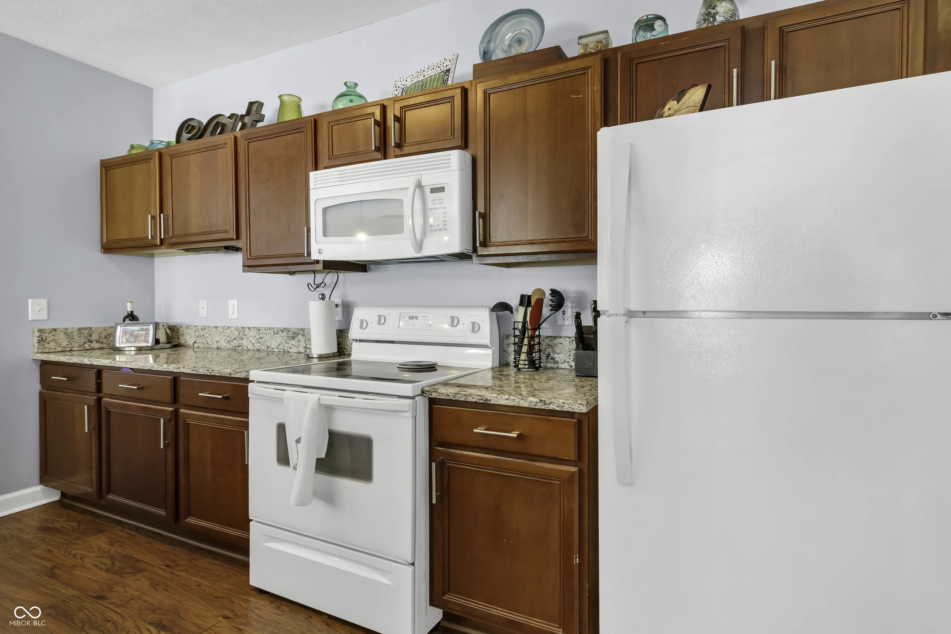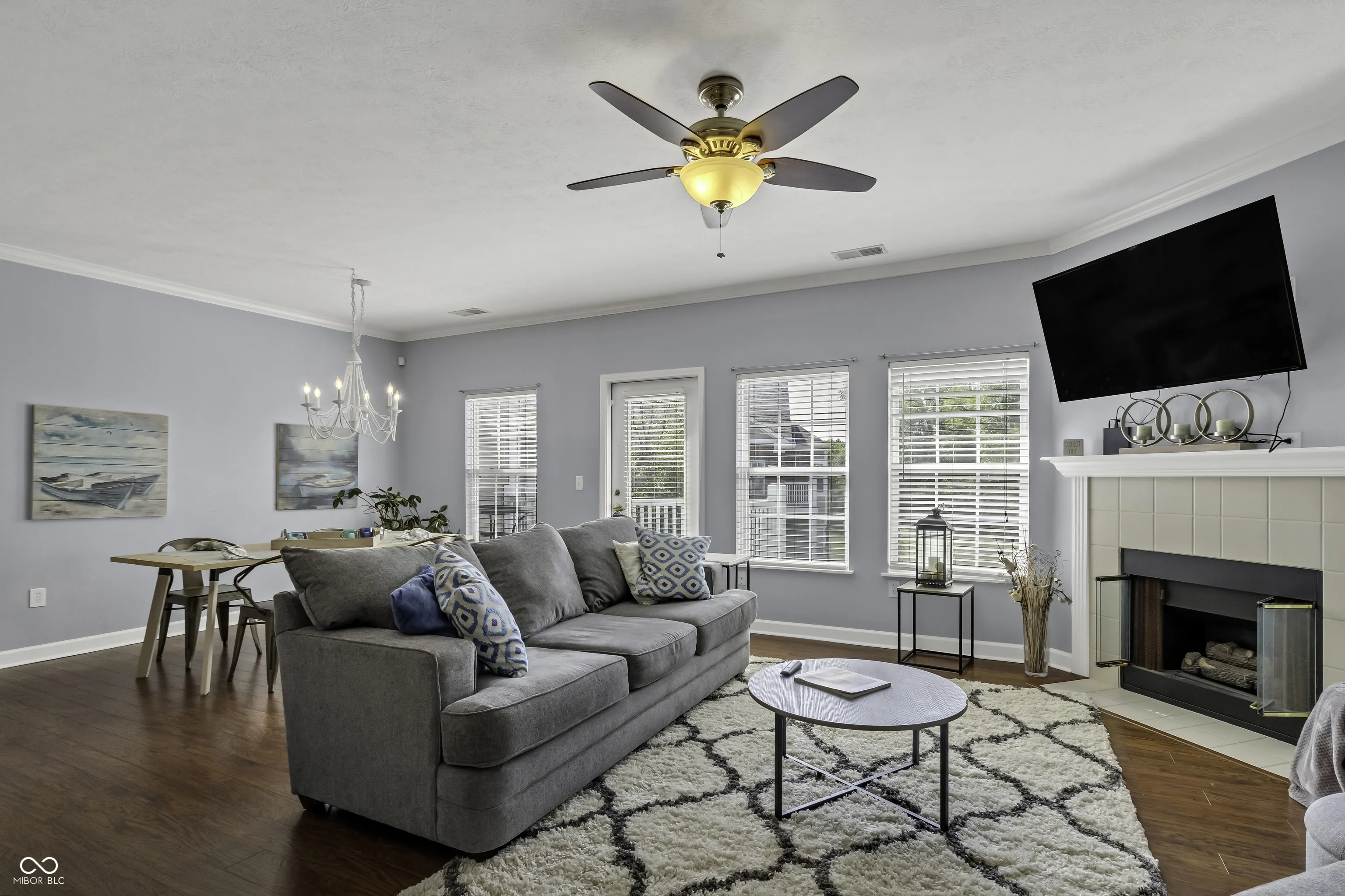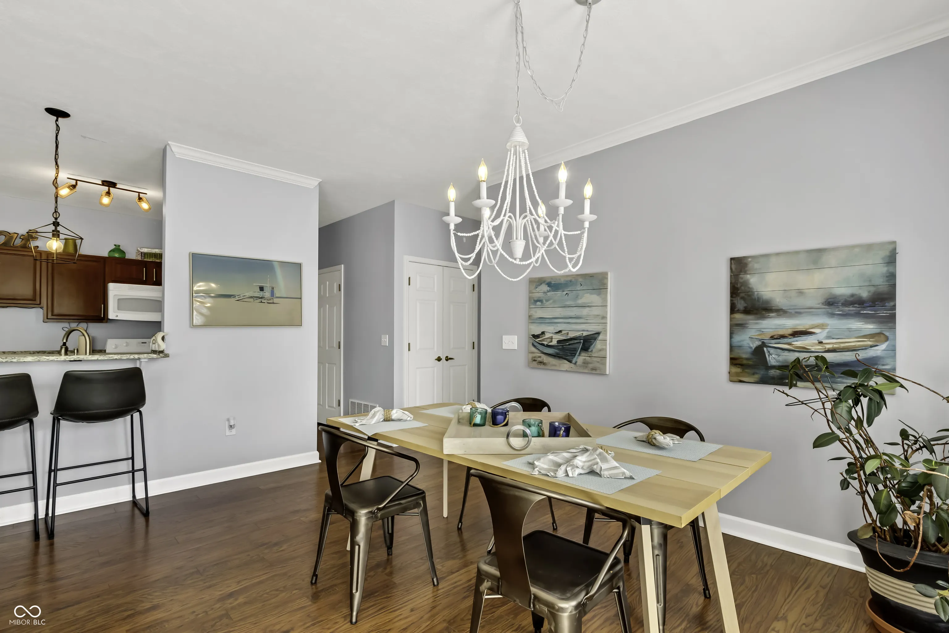 Discover this beautiful condo located in the serene Retreat subdivision of Carmel. Featuring 2 spacious bedrooms and 2 baths, this home showcases an open concept floor plan with engineered hardwood floors. The kitchen opens to a delightful living area with granite countertops and a bar top countertop, perfect for hosting. Unwind by the cozy fireplace or step out onto the inviting walk-out balcony to savor the fresh air. The large owner’s suite provides ample space for relaxation. AC and Water Heater new in 2022, HOA replaced the roof in 2023. Enjoy fantastic amenities, including a clubhouse, pool, tennis courts, and proximity to walking trails and the Monon Trail, all within a vibrant community.