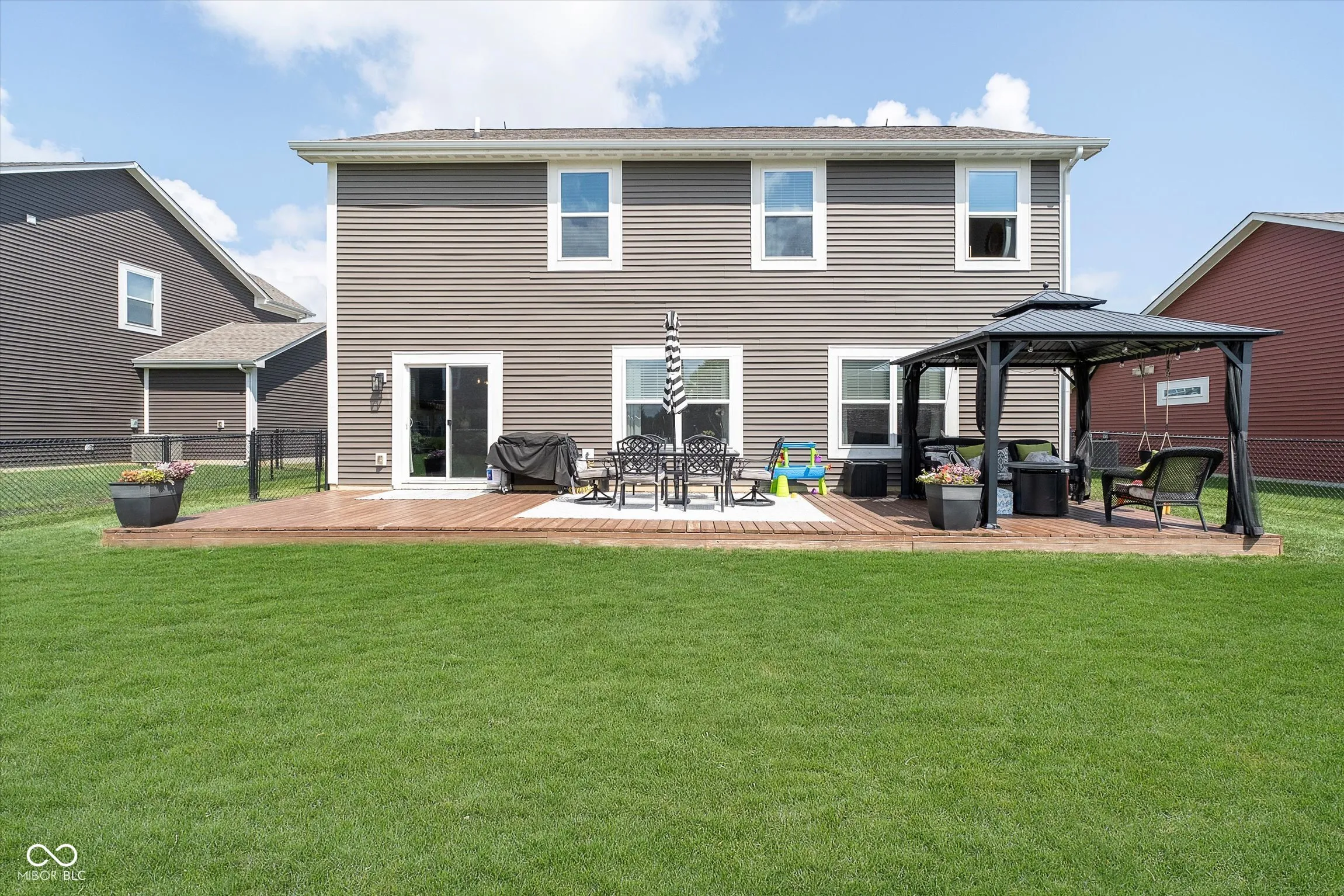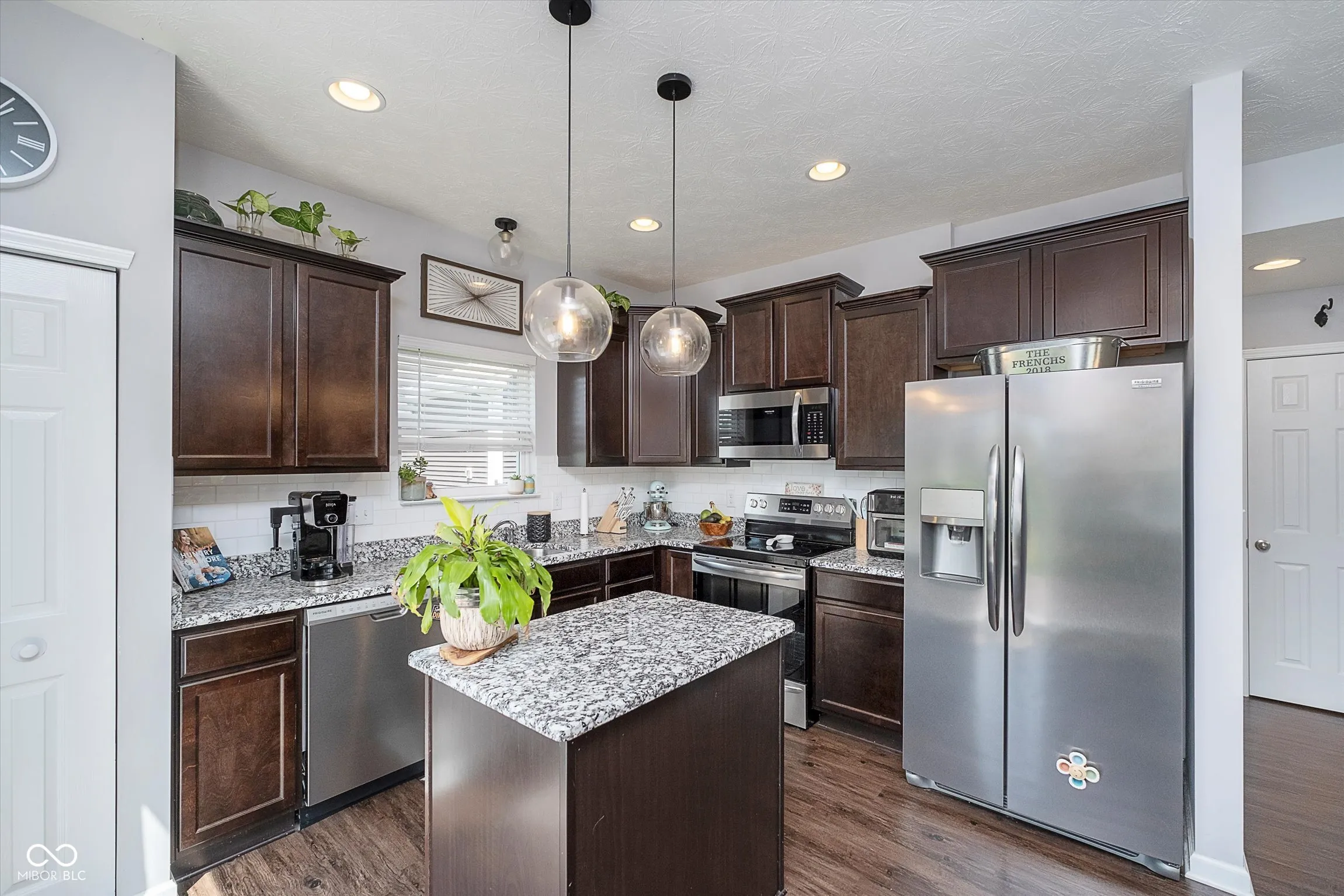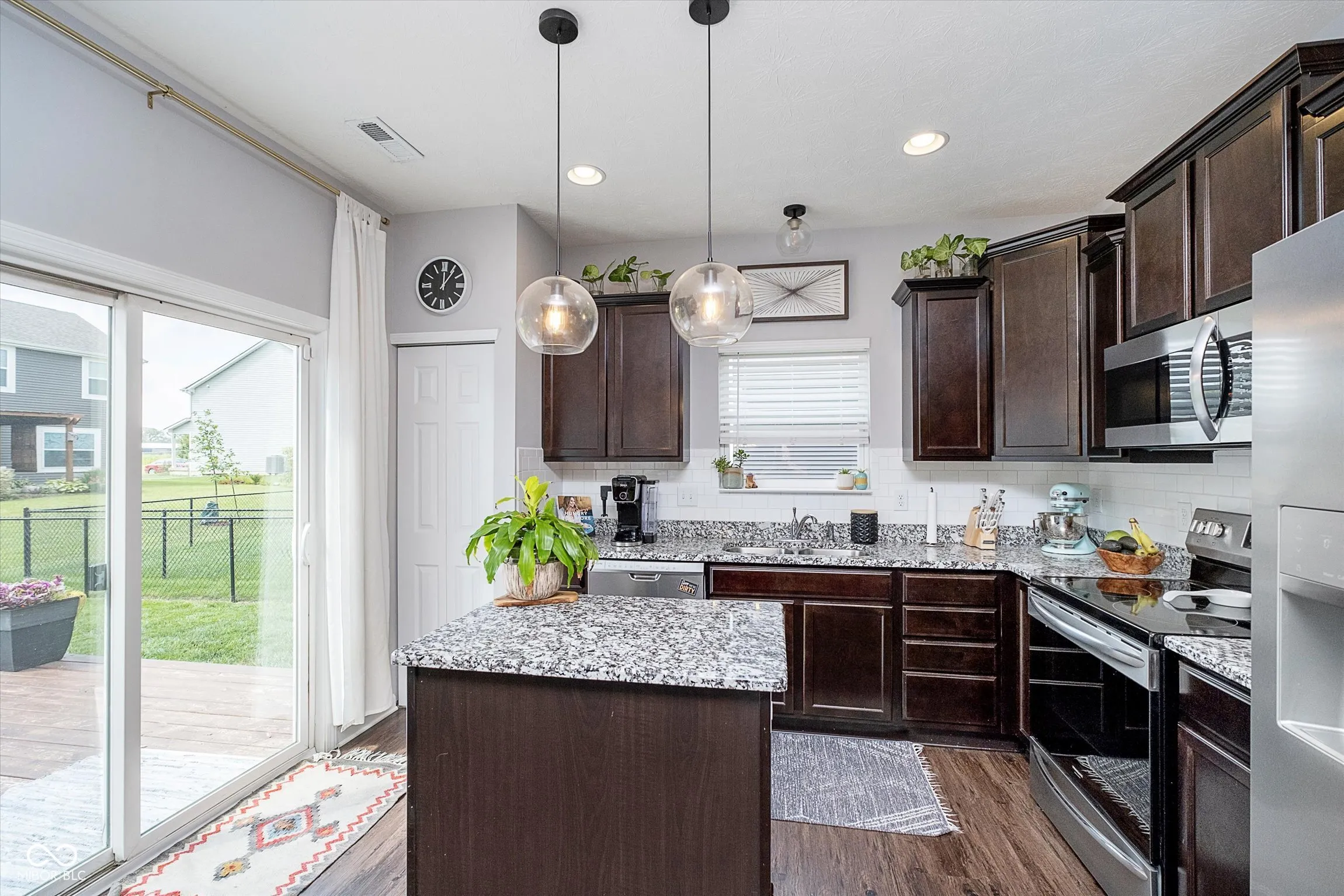 Welcome to this stunning 4-bedroom, 2.5-bathroom home, featuring a thoughtfully designed layout and numerous upgrades. As you step inside the two-story entry foyer, you’ll be greeted by the warmth of vinyl plank flooring that flows throughout the main living areas. The spacious great room and dining room combination offers an inviting atmosphere with its cozy fireplace, perfect for gatherings. The kitchen boasts upgraded staggered dark cabinets, granite countertops, a large snack bar, kitchen island with pendant lighting, and stainless-steel appliances. The main floor also features a convenient office space, ideal for working from home, and upgraded 9-foot ceilings for a sense of openness. Upstairs, you’ll find a versatile loft that can serve as a media room, playroom, or additional living space. The primary suite is a true retreat with two walk-in closets, double sinks, and a walk-in shower. Step outside to a large deck with a pergola, perfect for outdoor entertaining. The backyard is fully fenced. The home’s exterior is a beautiful blend of brick and vinyl with a charming, covered porch, adding to its curb appeal. This home has everything you need for comfortable, stylish living!