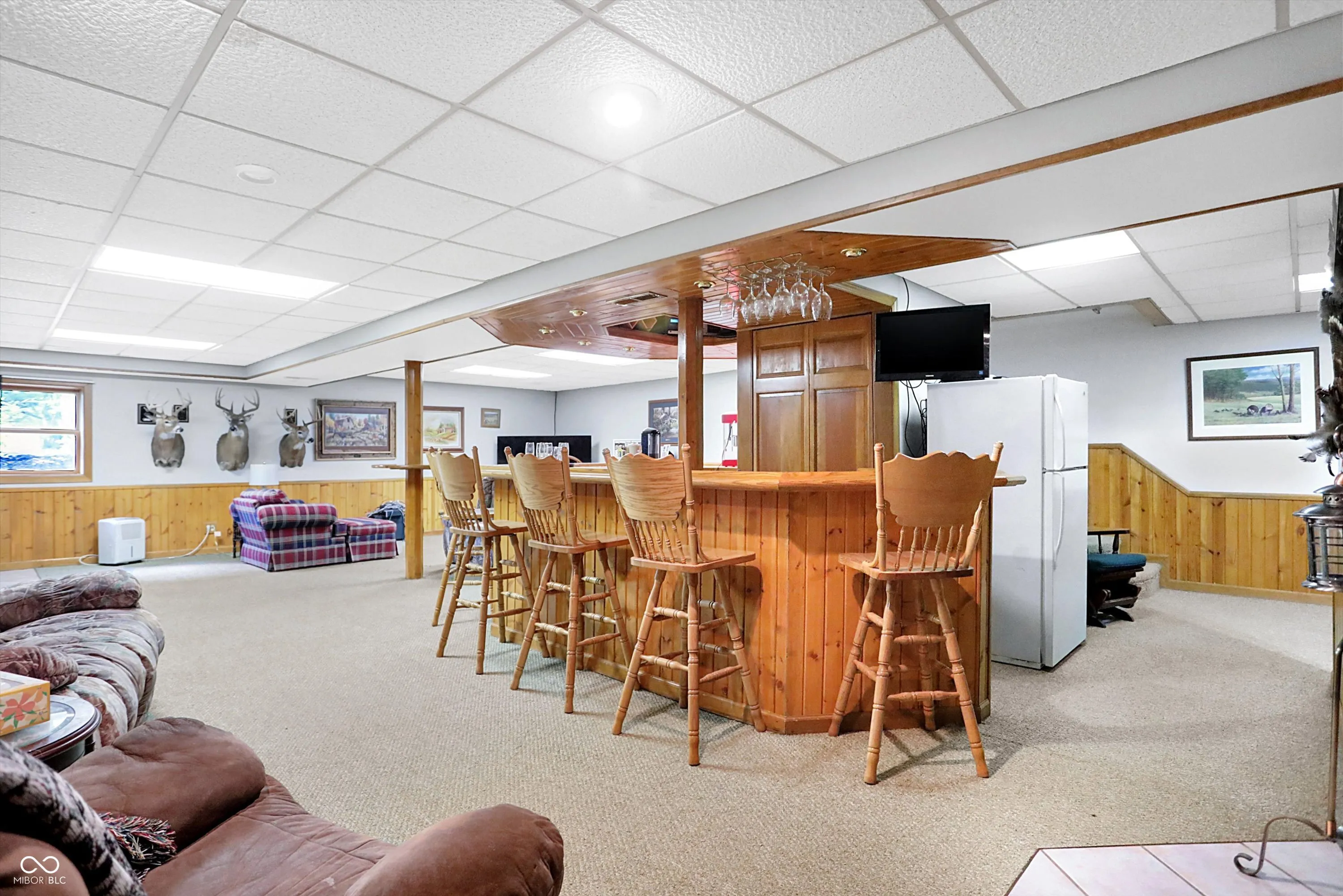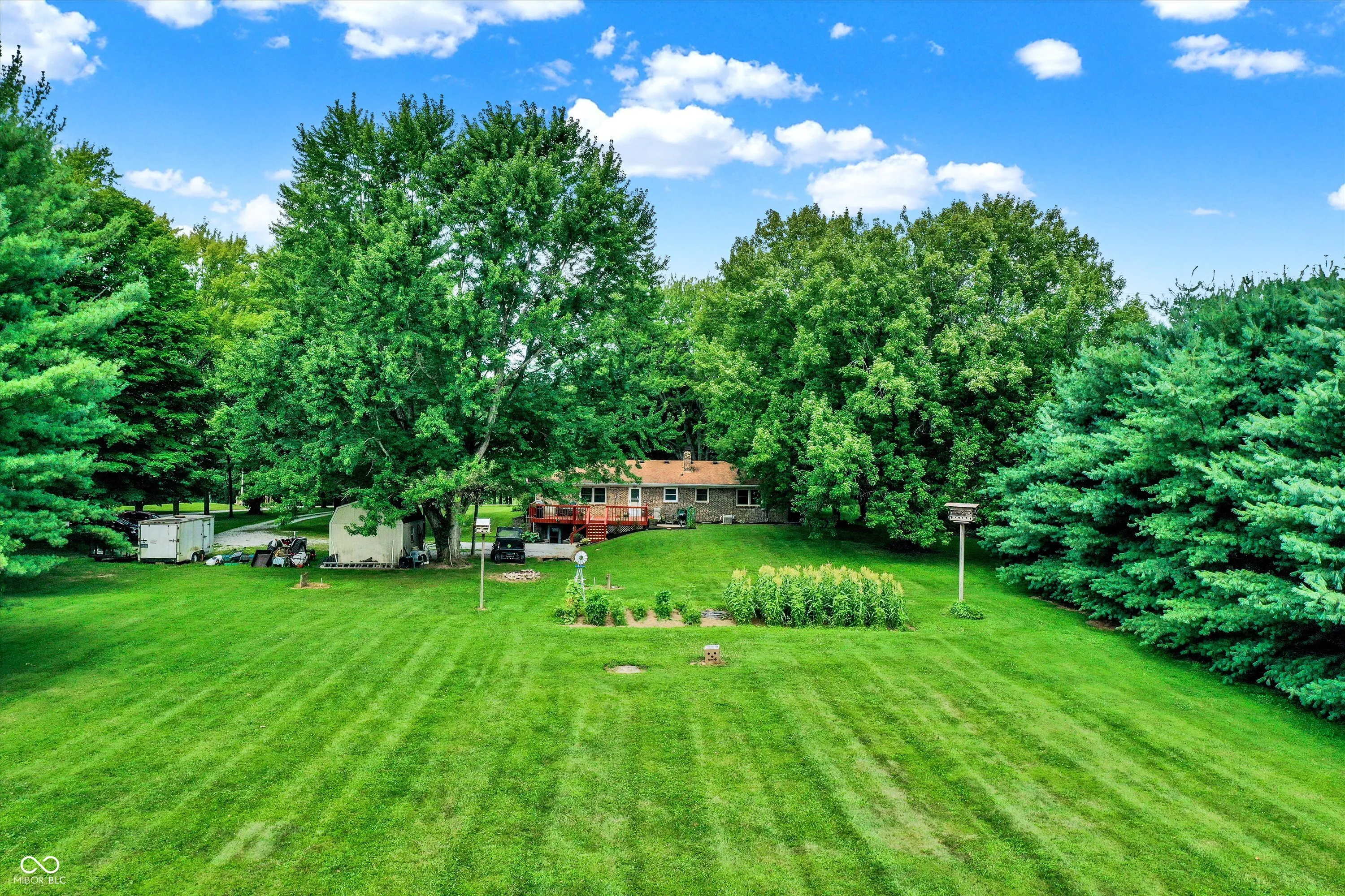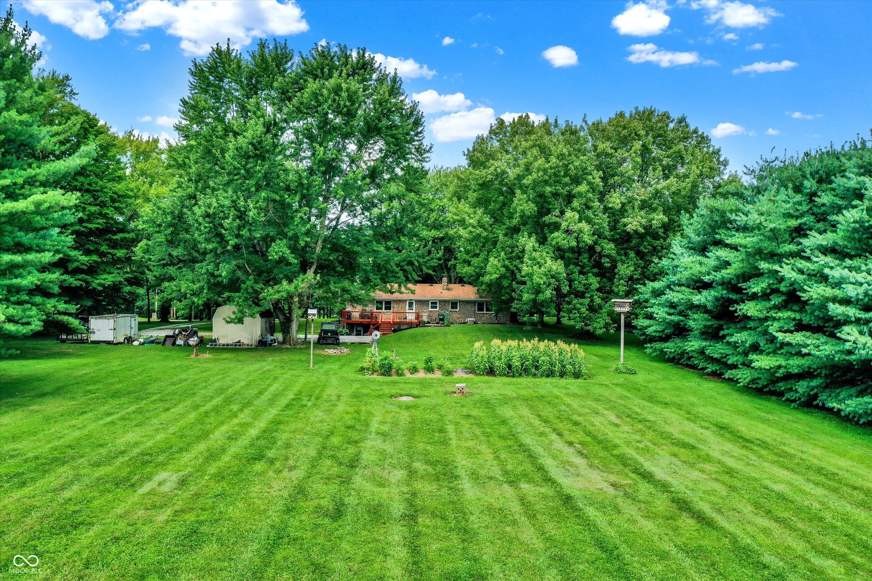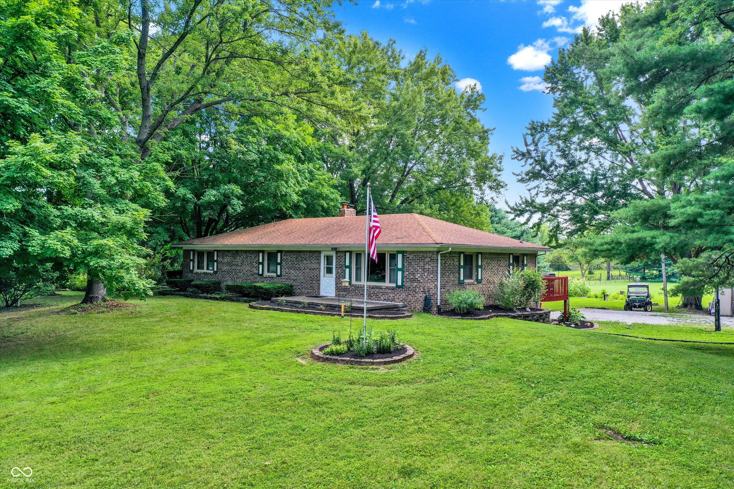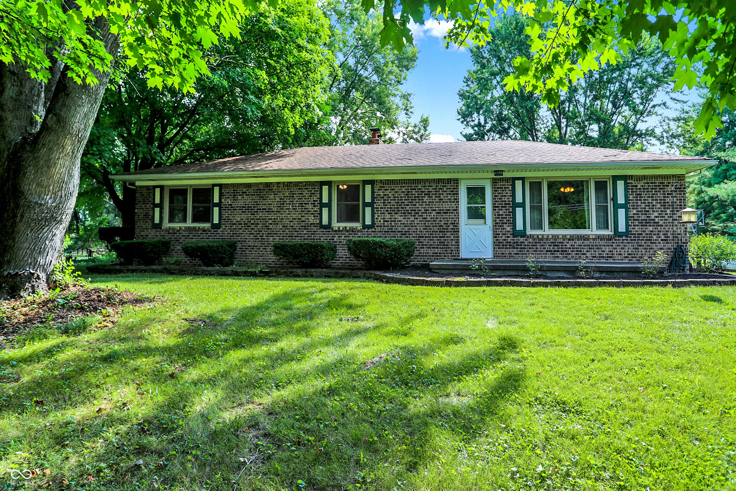 Welcome to your serene retreat! This spacious 3-bedroom, 2.5-bath all-brick ranch offers the perfect blend of country living & convenience. Situated on a stunning 3-acre tree-lined lot, this home boasts privacy, breathtaking sunrises, & a charming tree-lined driveway-all just under 2 miles from Center Grove HS, with no HOA, giving you the freedom to make this property truly your own. Inside, the large, open eat-in kitchen w/ a pantry flows into the living room, making it ideal for entertaining. The finished basement offers even more space, featuring a huge wet bar, large family room, utility room w/plenty of storage, & a bonus room perfect for a game room, home gym, or office. Step out onto the back deck to enjoy the peaceful surroundings & country living. While the home needs some updating, it has endless potential. With its unbeatable location, this property is a rare find!