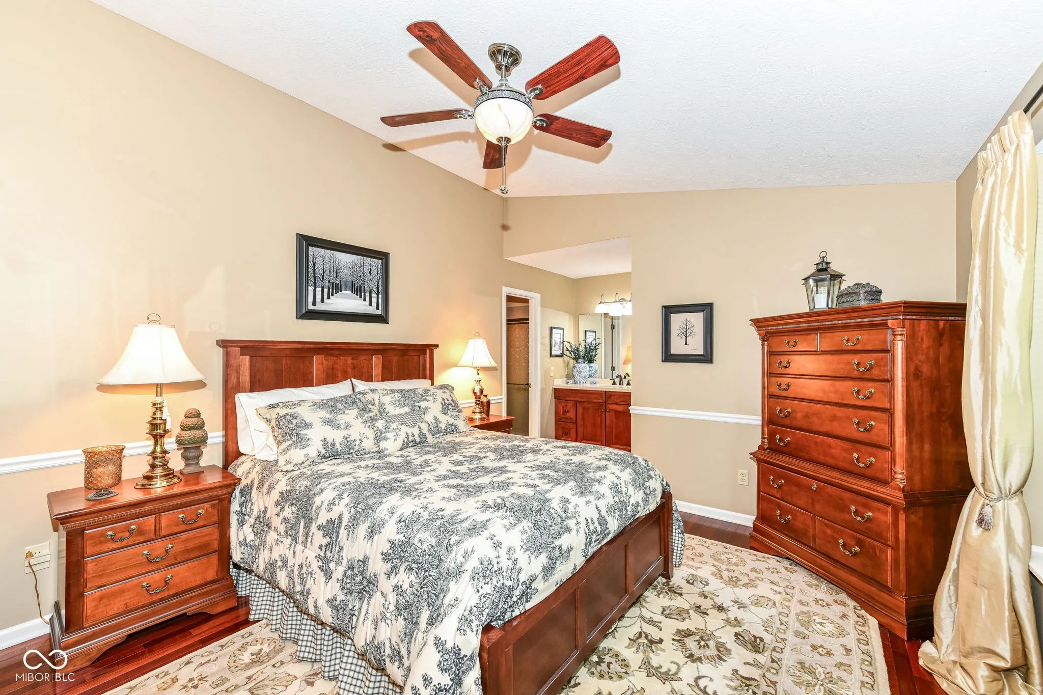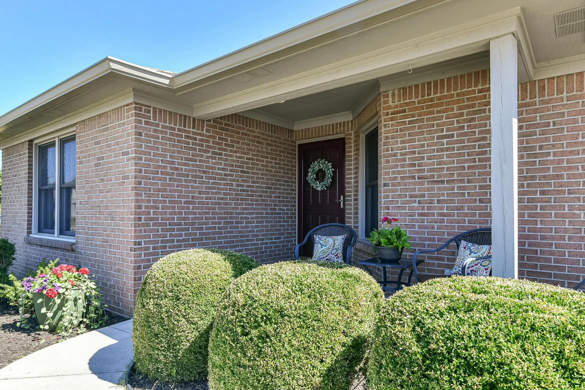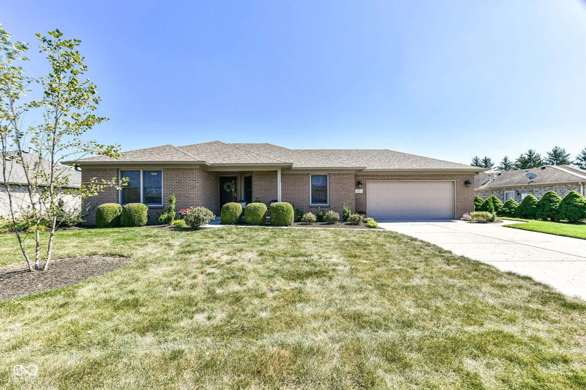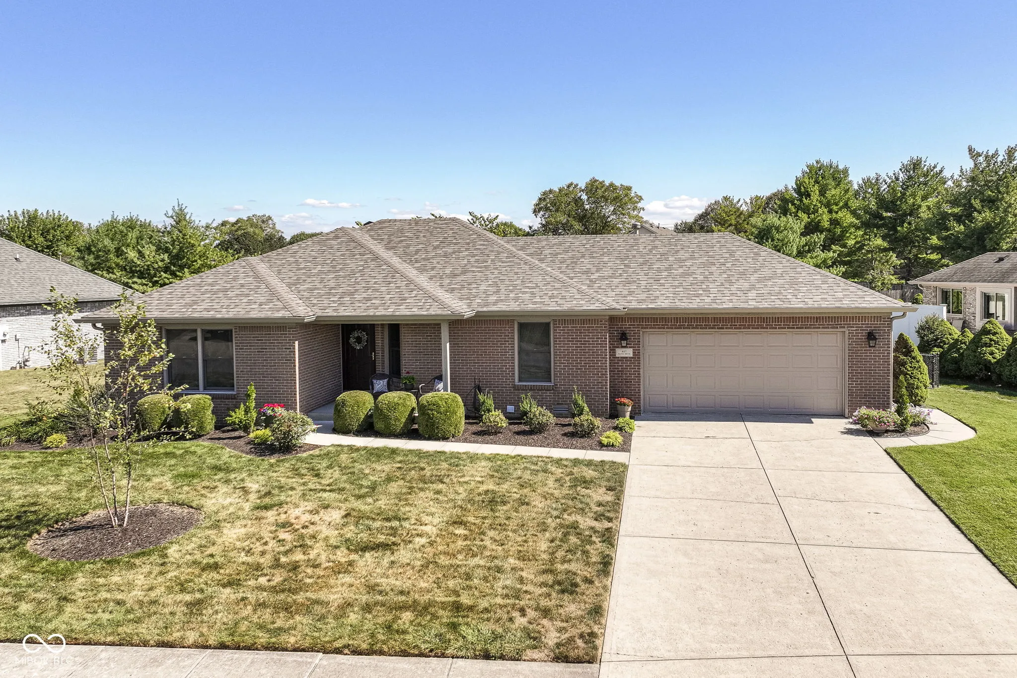 Beautifully maintained, all brick ranch in desirable Pebble Run/Center Grove Schools. Tastefully updated throughout, with gleaming cherry hardwood floors, cathedral ceiling in GR, w/ corner gas fireplace. Quartz countertops, white cabinets, primary bedroom suite w/ updated 5 ft. shower, gorgeous vanity, walk-in closet, and vaulted ceiling. Entertain on the beautiful custom deck, with built-in seating 2023. Spectacular landscaping, lush lawns and fully fenced rear yard. Roof/gutters 2022, newer HVAC and water heater. Sq footage per prior appraisal. All with no HOA. Hurry, this one won’t last long!
