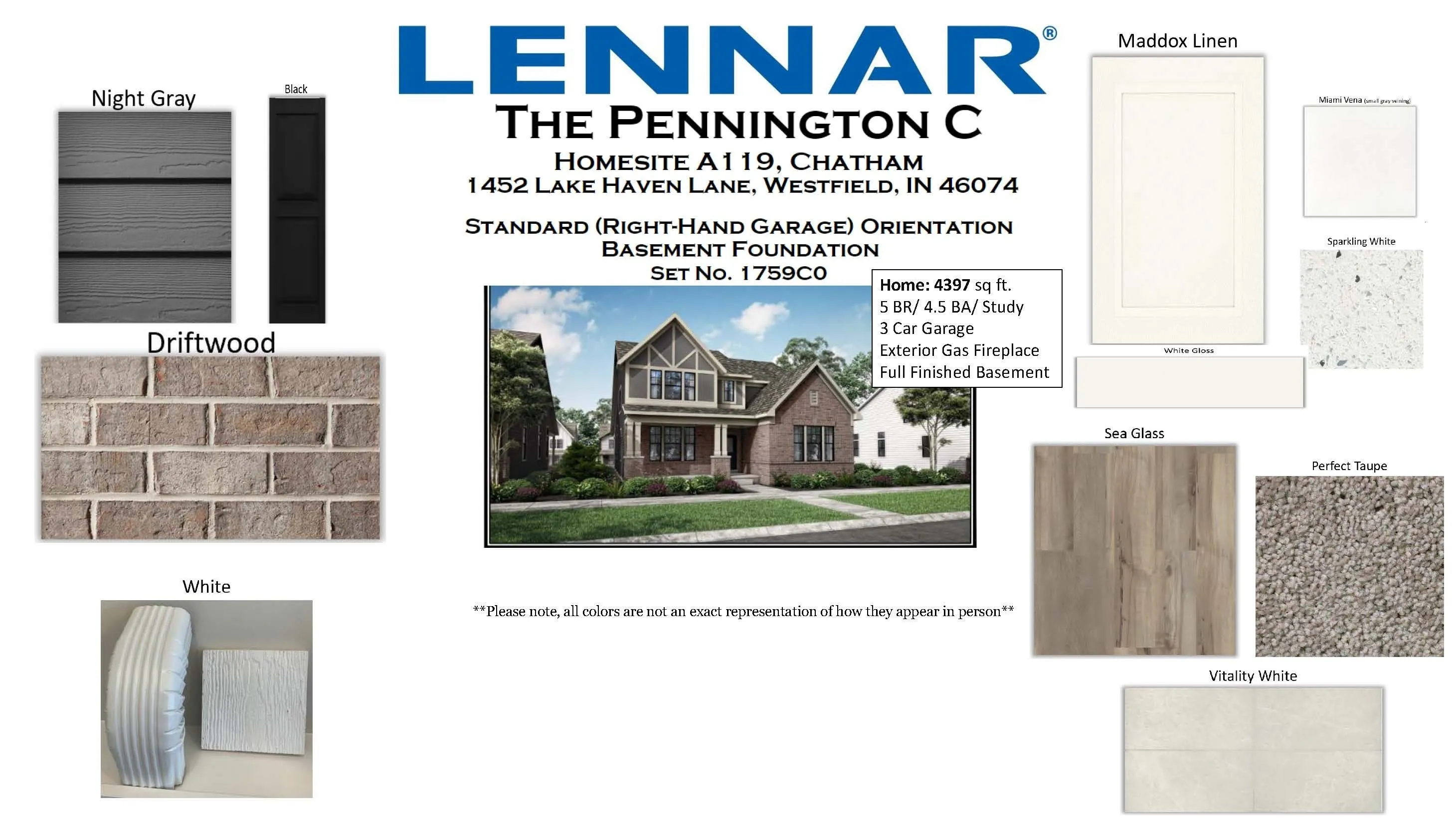 Chatham Village in Westfield’s prestigious Chatham Hills community features the Heritage Collection homes with beautiful front-porch living, rear-load garages, LENNAR’s Everything’s Included extras and upgrades, and Sport & Social Membership to The Club. Easy access to SR-32, US-31 and downtown Indy. The Pennington has 11′ ceilings in the common areas & an open Kitchen, Great Room & Dining area. The kitchen features SS appliances, a large island & ample storage space and overlooks the covered outdoor patio with gas fireplace – perfect for entertaining. The main level Owner’s suite includes a beautiful tiled shower, walk-in closet, & vaulted ceilings. A 3 car garage adds extra storage. Don’t miss the basement with full bath! *Photos/Tour of model may show features not selected in home.