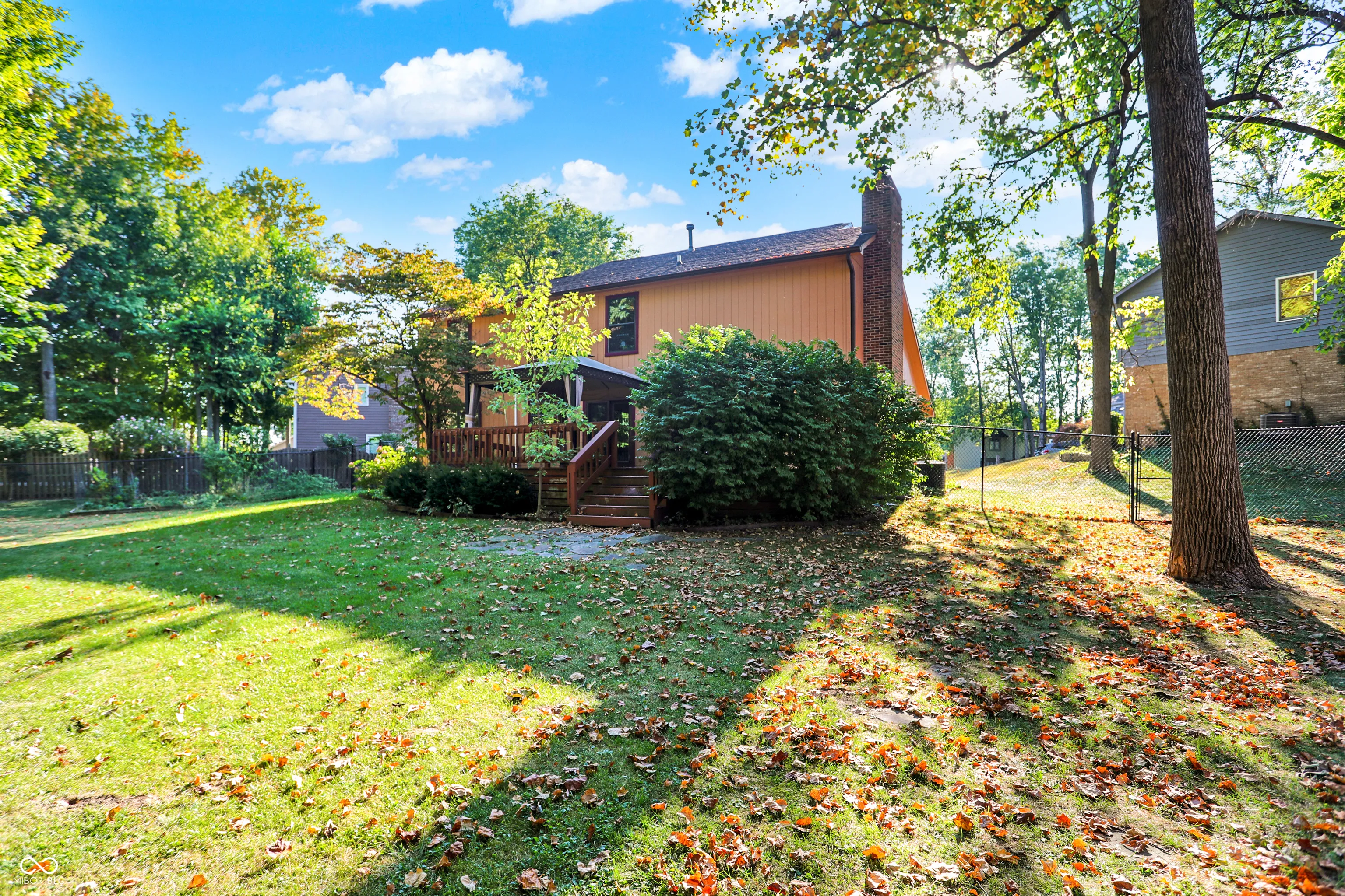 Welcome to your serene sanctuary nestled on a quiet cul-de-sac! This stunning home boasts a beautifully wooded backdrop, providing a perfect escape in your fully fenced backyard. Enjoy evenings by the firepit or unwind on the spacious wood deck, all framed by a canopy of mature trees. Step inside to an open-concept living room with soaring vaulted ceilings, leading seamlessly to the heart of the home – a well-appointed kitchen. Featuring a mobile island, pantry, and an easy flow into the family room and breakfast nook, this space is perfect for entertaining and family gatherings. The cozy family room is warmed by a charming brick hearth and a wood burning fireplace, ideal for relaxing nights in. Upstairs, the spacious primary suite awaits, complete with a walk-in closet and a luxurious ensuite featuring dual sinks and a separate shower. Three additional bedrooms provide ample space for a growing family. The finished basement offers even more versatility, with stylish stained concrete floors, a bar area, and generous storage options. With a two-car garage equipped with a pegboard wall, this home is truly move-in ready. Don’t miss out on this exceptional opportunity-schedule your showing today!