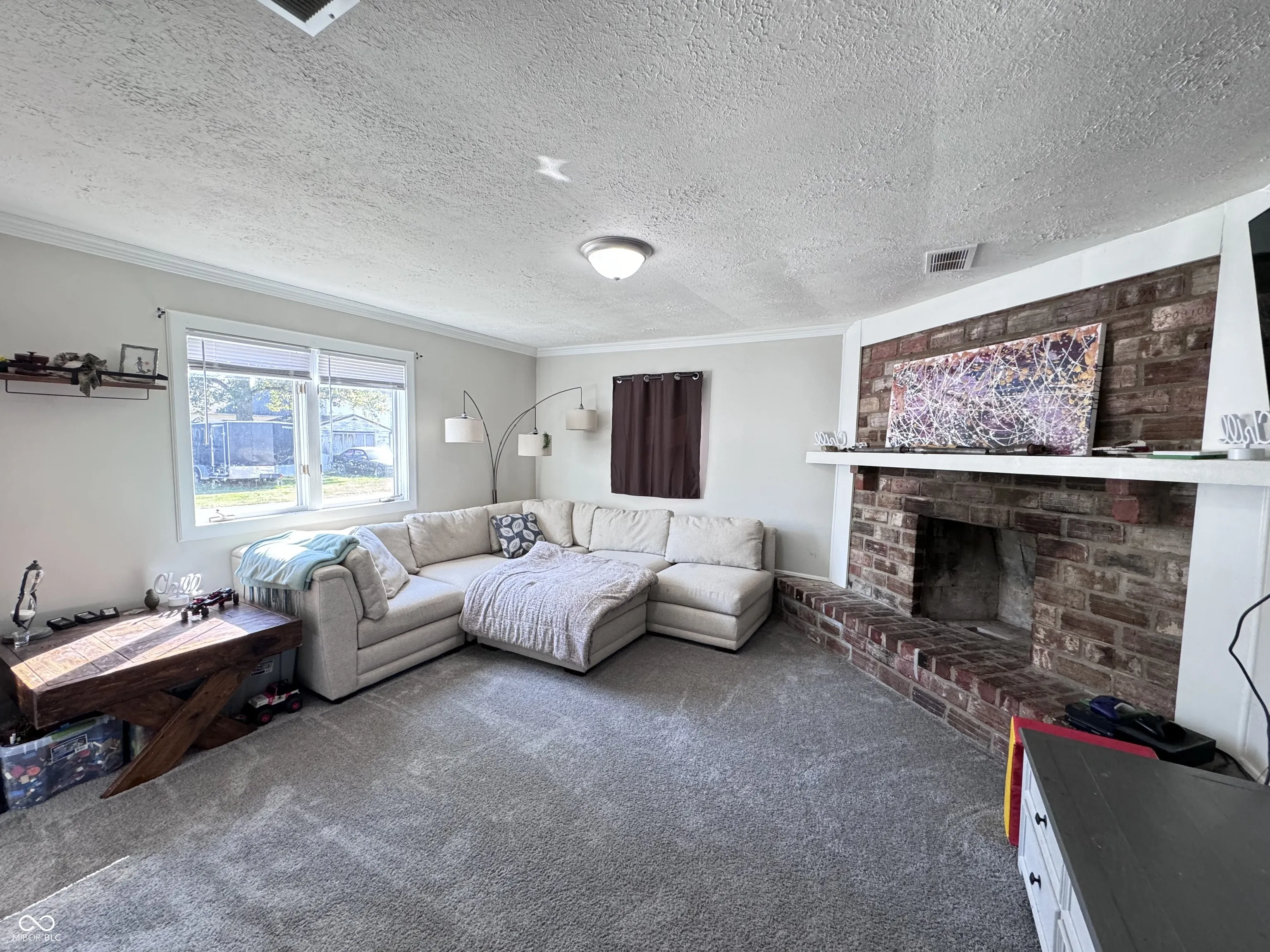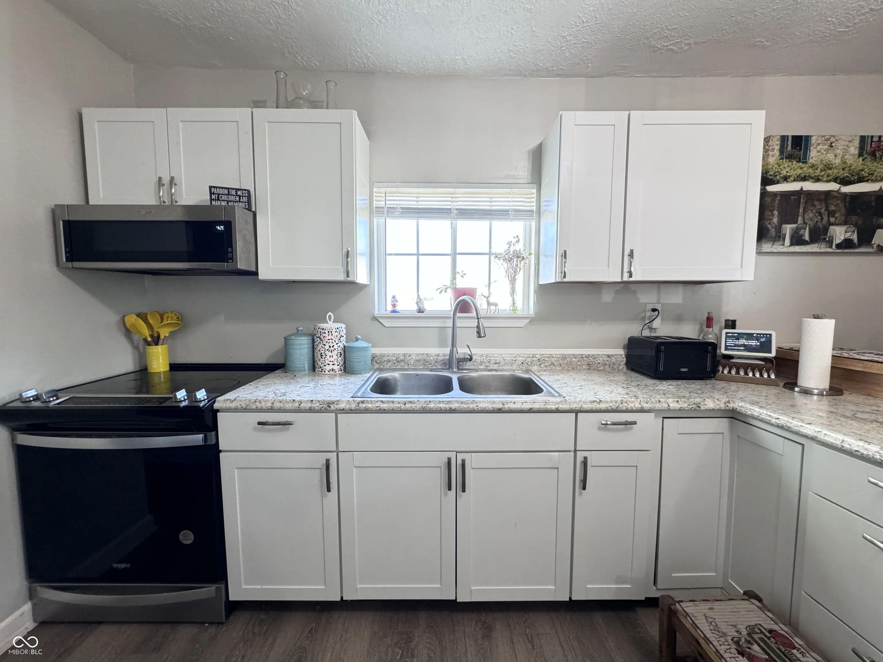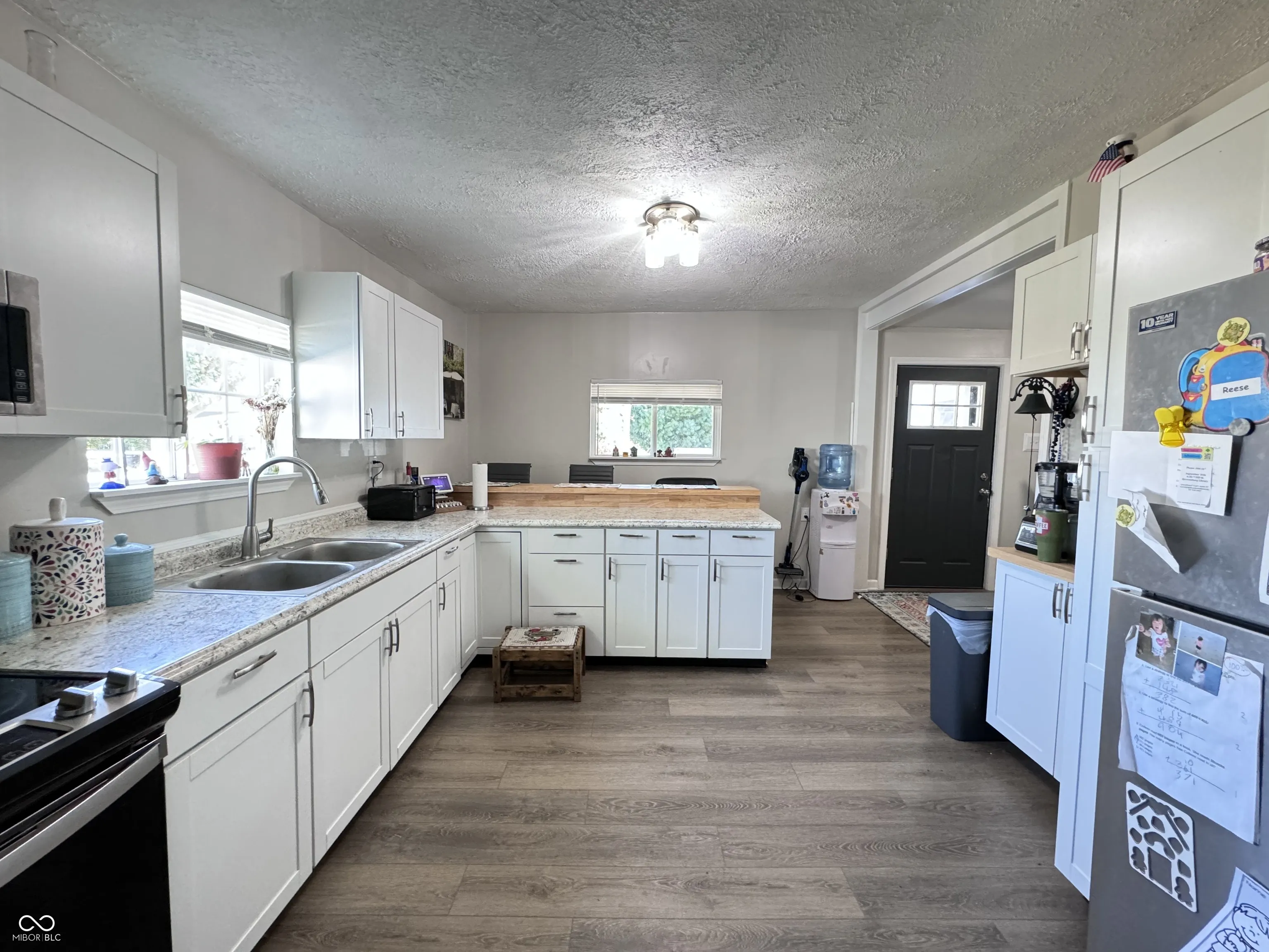 Step inside this adorable 3 bedroom, 2 bathroom home in New Ross, Indiana! Upon walking in, you are greeted with beautiful laminated hardwood floors. As you journey through the home you will find a cozy living room which boasts gorgeous natural light and a charming brick fireplace. The three bedrooms are well-sized with the master having an en-suite bathroom with a walk-in closet. The master bath has a twin sink vanity and tub/shower combo. Right off the front door is a beautiful open kitchen with lots of counter space, storage, and a breakfast bar. The laundry room is off the kitchen by the home’s back door. In the kitchen you will find an electric oven/range, microhood, and refrigerator all staying with the home. The house includes a detached two car garage, large yard, and covered front porch. Sewage, trash, and electric through the town of New Ross. Property has a private well. Unknown if fireplace is functional. Roof is only 2 years old. Schedule a tour today!