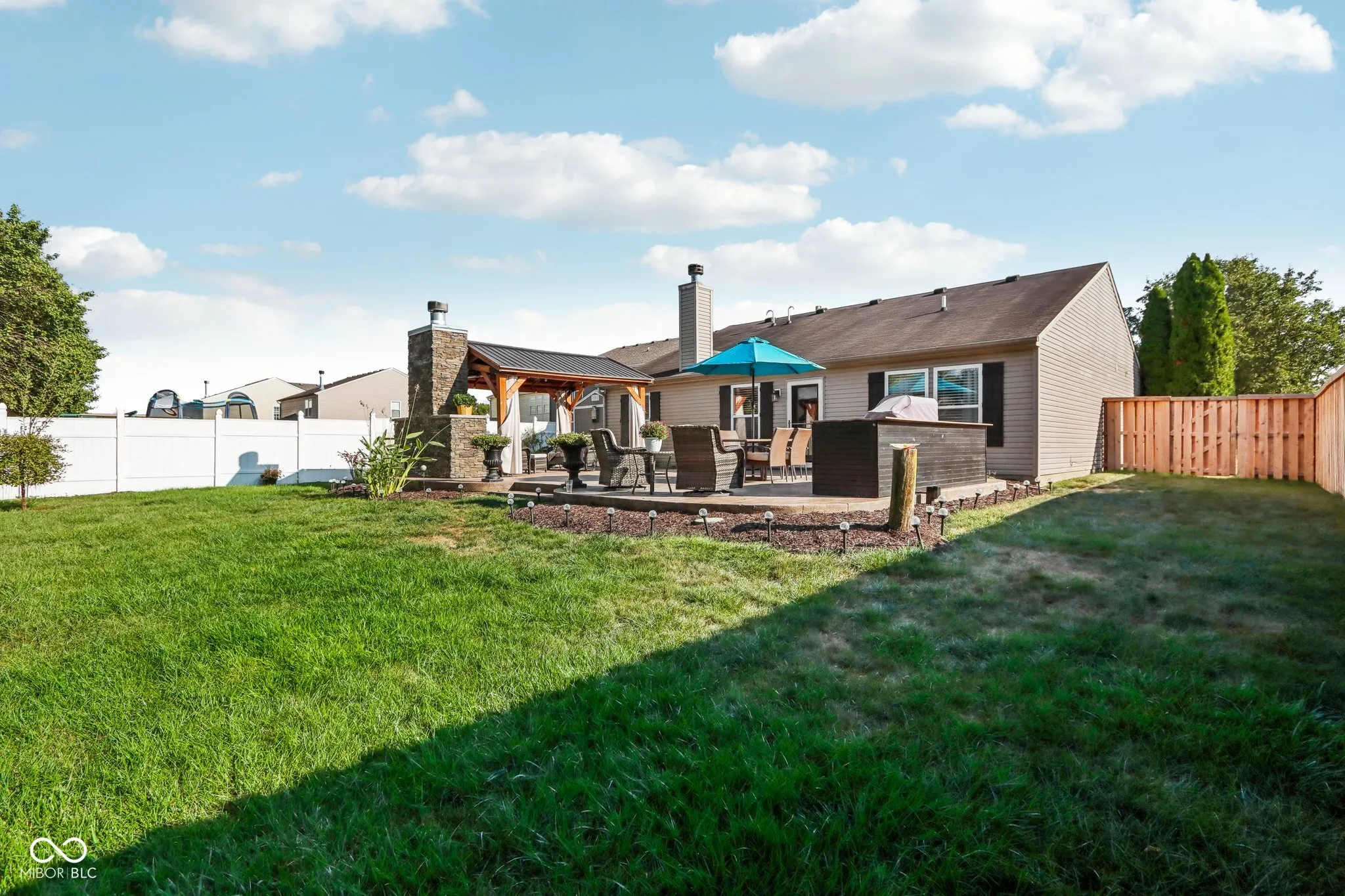 Nestled in the heart of Greenfield, IN, this beautifully updated 3-bedroom, 2-bath ranch home at 1290 Jasmine Dr is a true gem! Spanning 1,504 sq. ft., this meticulously maintained property offers a perfect blend of indoor comfort and outdoor paradise. Recent updates include modern flooring, fresh paint, stylish lighting, and bathroom updates. The kitchen shines with newer black stainless steel appliances, adding a sleek, contemporary touch to the home. The oversized laundry room, designed as a functional butler’s pantry, features cabinets, shelves, a farmhouse sink, and luxurious quartz countertops, making it a standout feature. Step outside to an entertainer’s dream-a spacious stamped concrete patio with multiple seating areas, dining space, a covered pergola, and a stunning masonry wood-burning fireplace. The tranquil koi pond with a water feature adds a serene backdrop to this incredible outdoor living area. A new tankless water heater was installed in 2022, ensuring energy efficiency. The 2-car attached garage offers ample space for parking and storage. Located just minutes from top-rated schools, shopping, and dining, with quick access to I-70 for an easy commute to Indianapolis, this home is perfect for a small family, empty nesters, or anyone who loves enjoying the great outdoors right in their backyard. Don’t miss your chance to own this incredible home!