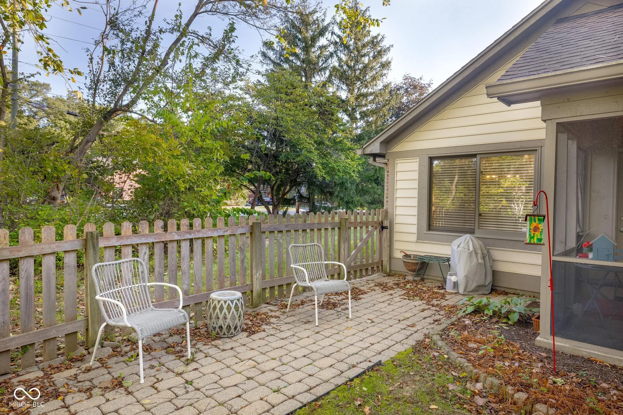 Discover the hidden gem in Pennwood North! This charming, well-built condominium is brimming with character. Upon entering, you’ll be greeted by a spacious foyer, soaring ceilings, and stunning wood floors, complemented by a wood-burning fireplace with built-in bookshelves perfect for showcasing your treasures. Explore the efficient kitchen featuring a cozy breakfast nook overlooking the ample dining area. The secondary bedroom doubles as an office or den. The primary bedroom boasts a walk-in closet and an ensuite bathroom with a walk-in shower and a large vanity complete with a makeup counter. Nature enthusiasts will adore the screened porch for bug-free summer evenings and the lush backyard enclosed by a picket fence. This condo offers more greenspace than the average, enhancing its appeal. The HVAC was replaced in 2022, and the water heater in 2022. All appliances are included. Oversized finished 2 car garage with insulated garage door has built in wall shelves and plenty of room for seasonal storage. Pennwood North is a quaint 18-home community conveniently located near essential amenities like highways, dining, shopping, and hospitals. Lawn care and certain exterior maintenance tasks are covered by an affordable monthly fee.