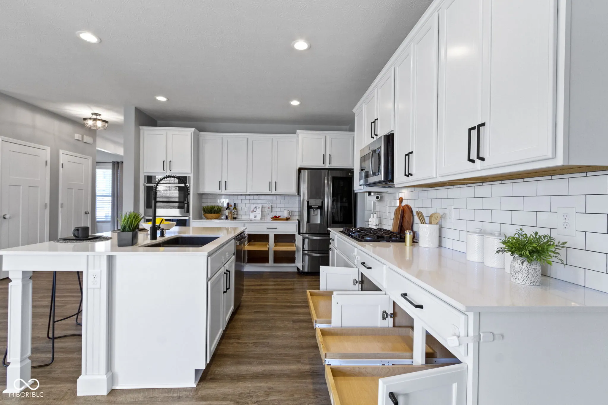 Fantastic lot backing up to woods & Fantastic 4 bed/3.5 bath home w/finished basement offering over 3600 sq.ft.* Upgraded features include LVP flooring throughout most of the main floor & basement, fresh neutral paint on main & upper floors, 9 ft. ceilings on main & basement, new carpet in some areas upstairs, gas fireplace, walk in closets, water softener (’19), upgraded owner’s spa bath, gourmet kitchen w/upgraded V-groove island, morning room w/cathedral ceiling, garage storage extension, black aluminum fence (’19), large paver patio (’21), cement board siding, dimensional roof & more! Gourmet kitchen boasts Quartz counter tops, subway backsplash, 42in.white cabinets w/crown, soft close, dove tailed drawers, roll out shelving, pots & pan drawers, trash pull out cabinet, black hardware, stainless appl. incl. double oven, gas range, dishwasher, refrigerator, microwave vented to the exterior, high end finishes on island w/bar top extension, additional recessed lighting & large walk in pantry* Mud room area on main w/coat closet* Upstairs you’ll find a loft, 3 beds all with walk in closets, huge hallway storage closet & laundry rm* Pampering primary suite has tray ceiling, decorative wall molding & spa bath w/LVP floors, huge walk in shower w/subway tiled walls & floor, double shower head, double vanity w/extra drawers, water closet & WIC* You’ll love the open finished space in the basement w/LVP flooring, 4th bedroom & full bath* You’ll truly enjoy your outdoor space with views of the woods/no one behind, large paver patio area for outdoor living/entertaining & .23 acre fully fenced in yard* Finished garage offers an extension for additional storage/workshop & laundry sink* Move in ready home in a great subdivision across the street from a city park & close to SR 38/US 31, shopping & more.