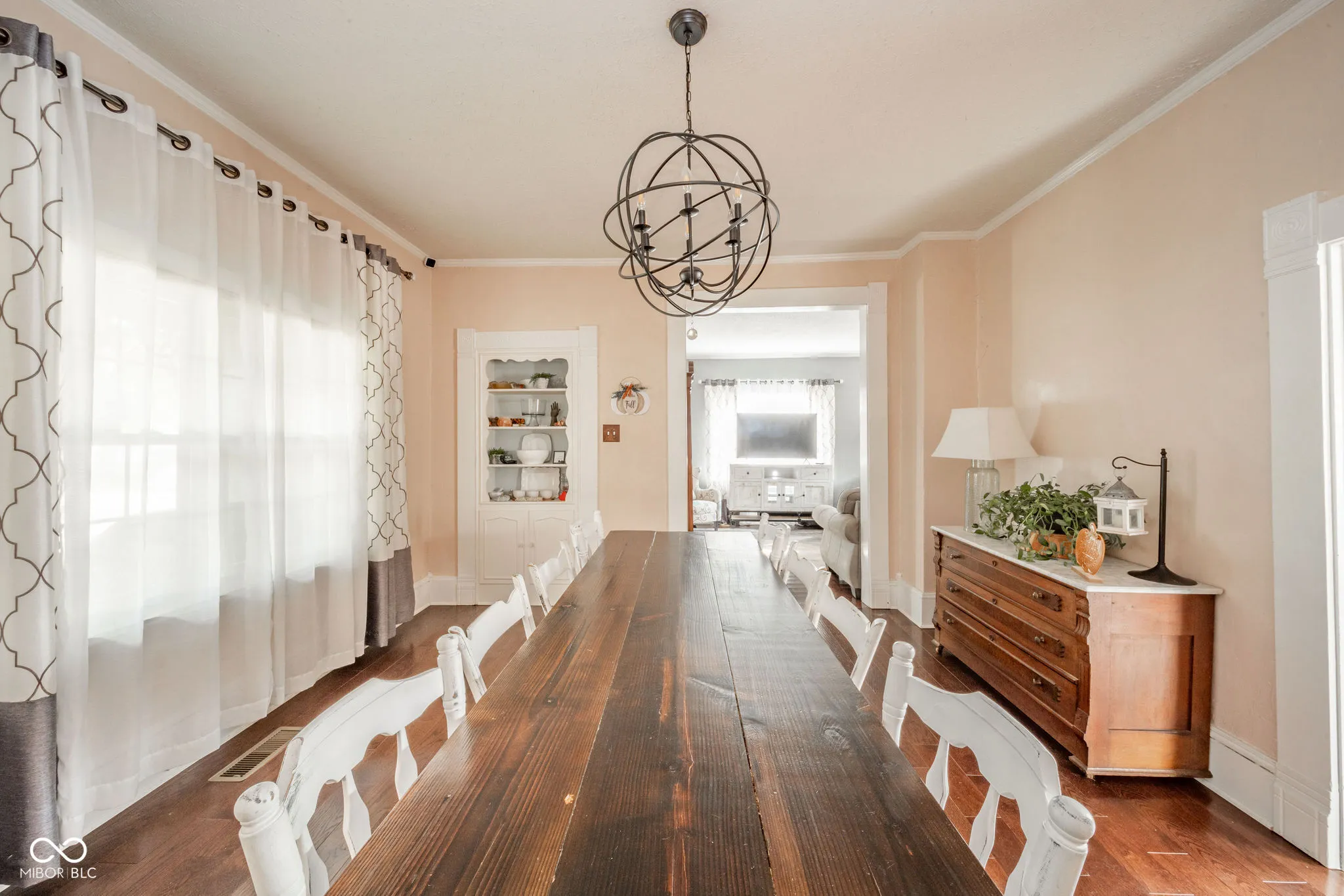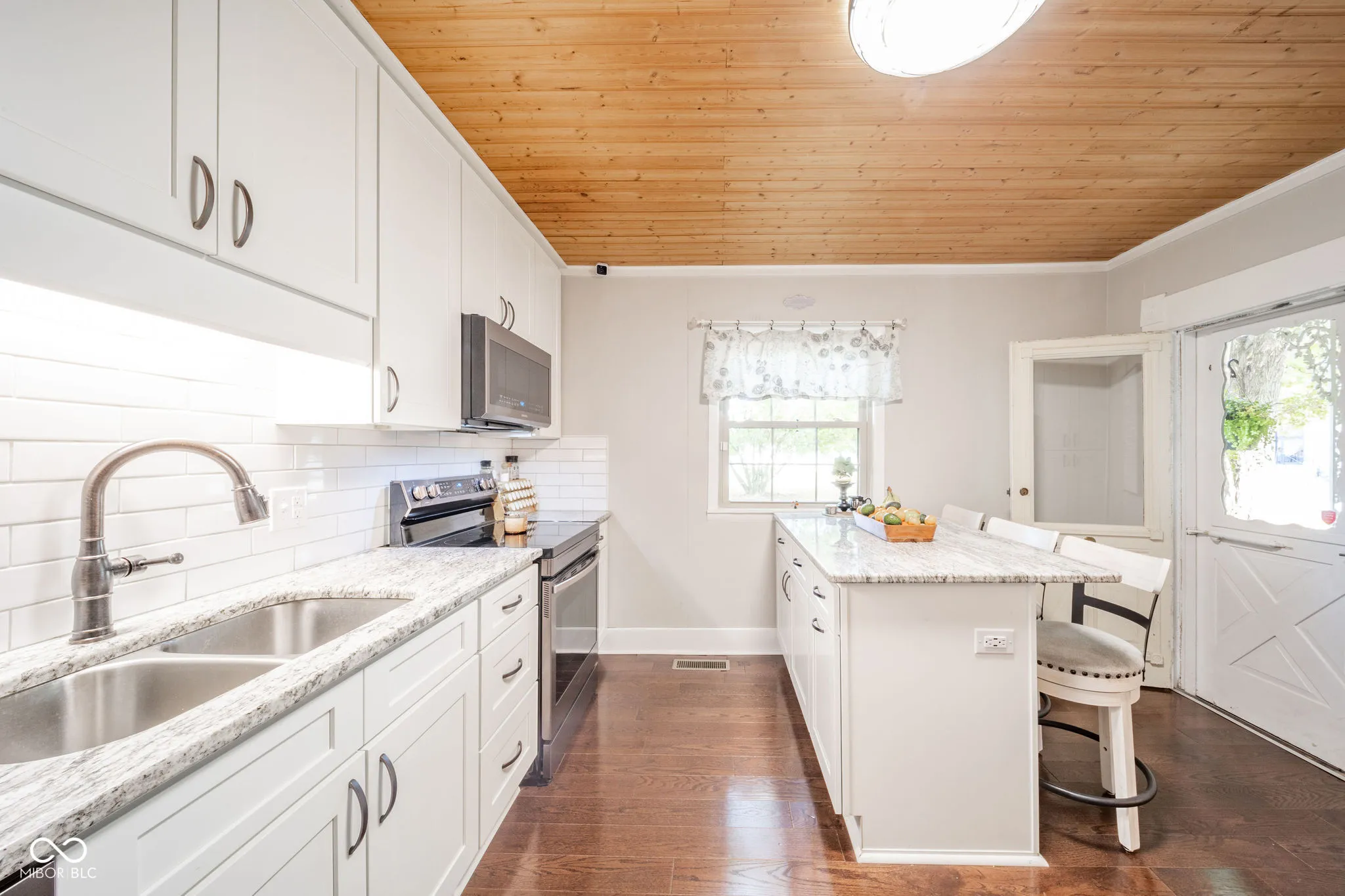 Beautiful, 3 to 4 bedroom home in Spiceland with fenced-in yard, barn, and updates throughout. Walk in the front door into a small foyer that leads to the living room. You’ll notice the original built-ins in the living room as well as in the adjoining formal dining room. The kitchen is beautiful and modern. Updated cabinets, granite countertop, smart refrigerator, and so much more to admire. On the main floor is an updated full bathroom, bedroom, and an additional large room with fireplace that can serve as a fourth bedroom or extra family room, depending on your needs. Upstairs are two spacious bedrooms and a completely remodeled half bath. New flooring, paint and other updates throughout. The lovely yard and location are welcoming and charming.