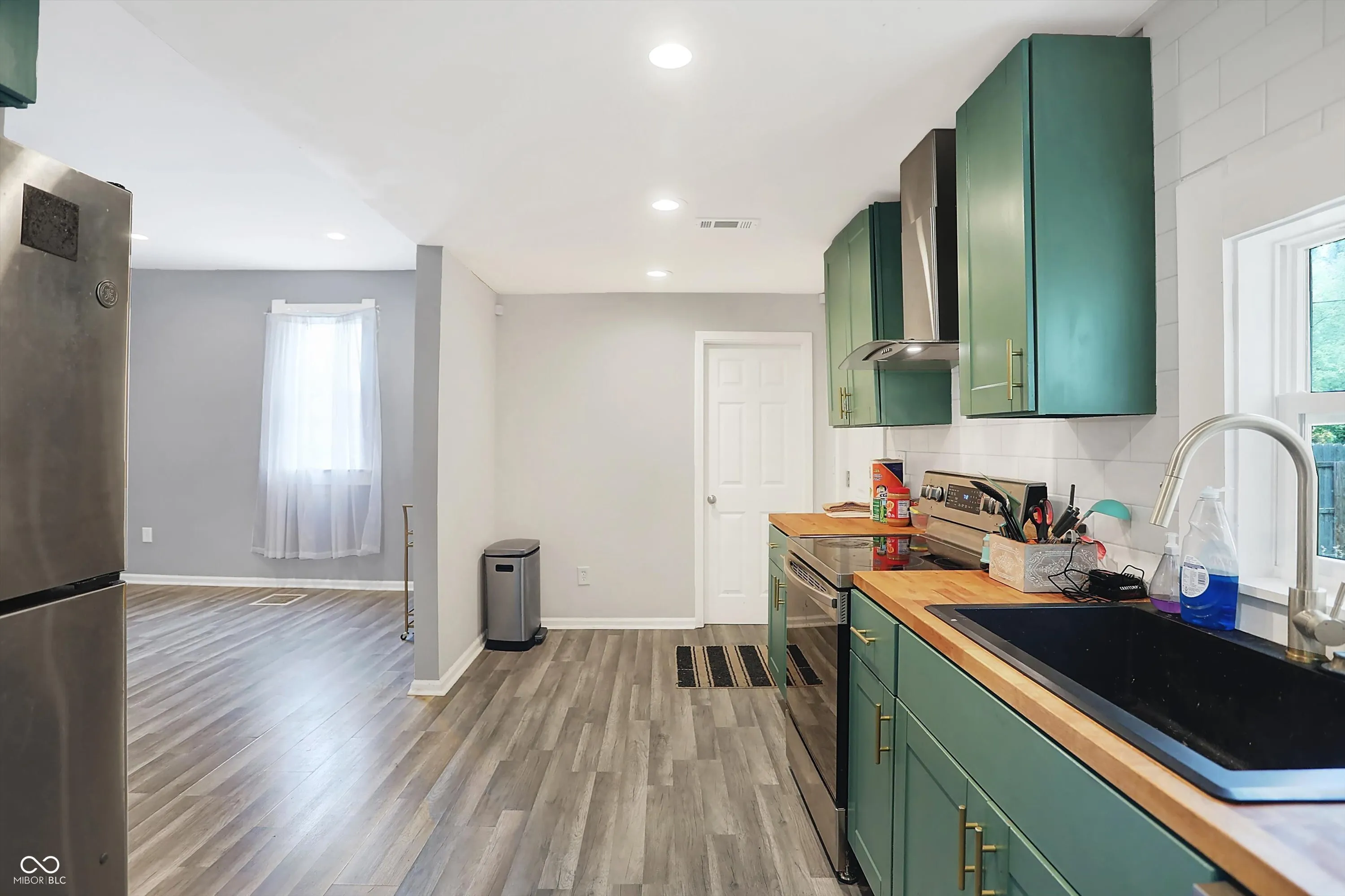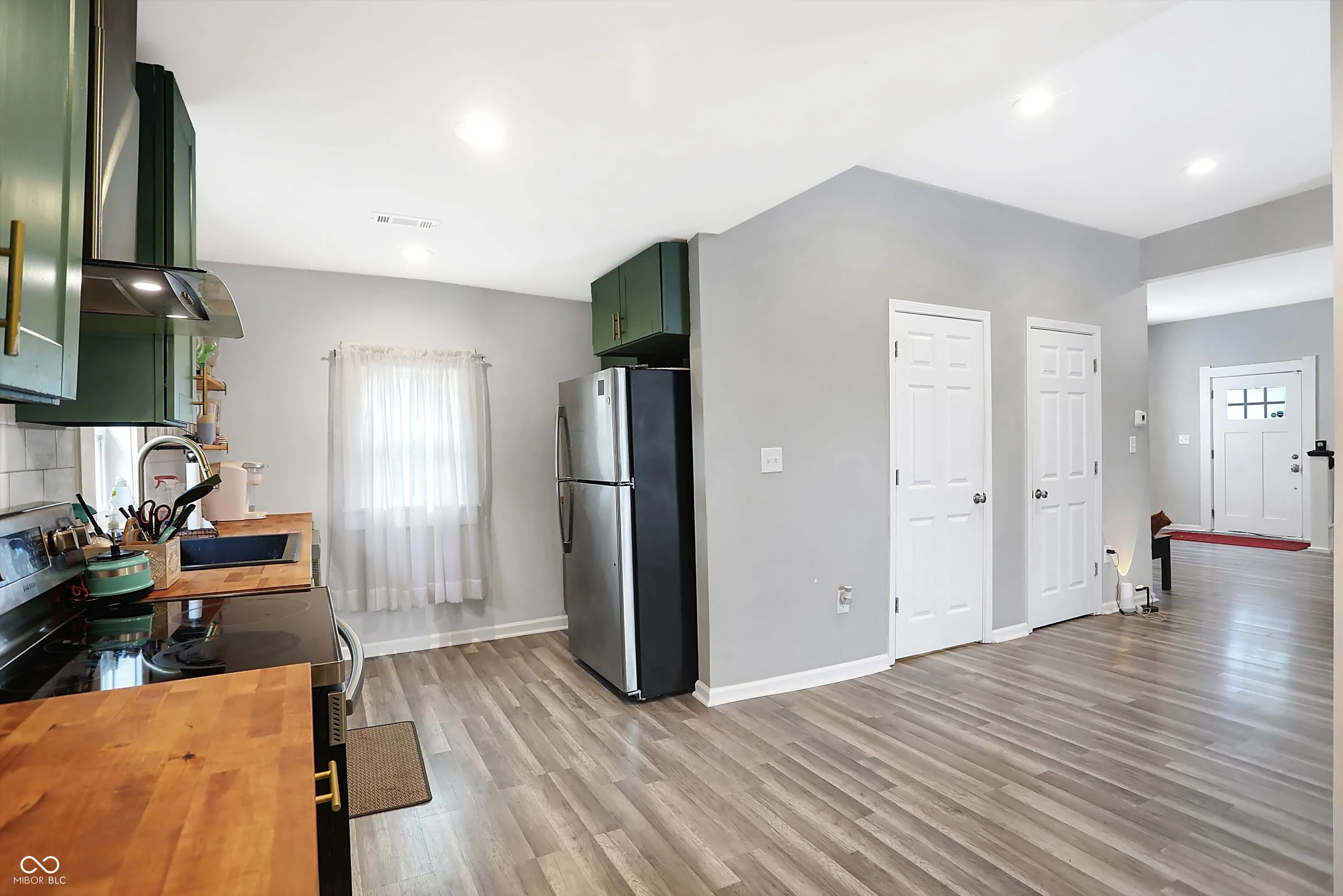 3 bed 2.5 bath home in a great location near Fountain Square! You will love the spacious living room as soon as you walk through the front door. Laminate hardwoods run through the primary living areas into the open concept kitchen. Modern green cabinetry is a beautiful touch adorned with wood butcher block counter tops and finished with stainless steel appliances. The main floor master is a true retreat with an on suite bath and large windows allowing natural light to pour in. Upstairs bedrooms are a generous size and the loft is a great flex space for an office or hobby space.