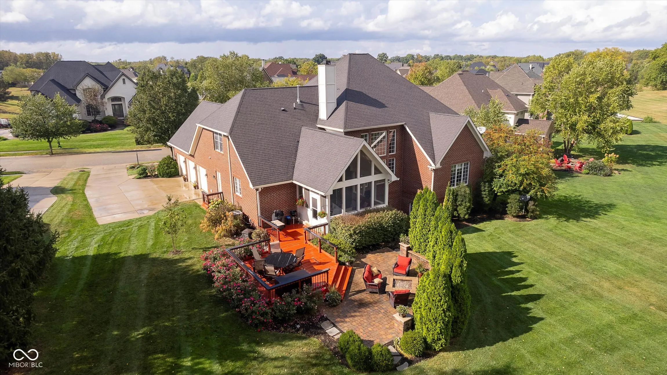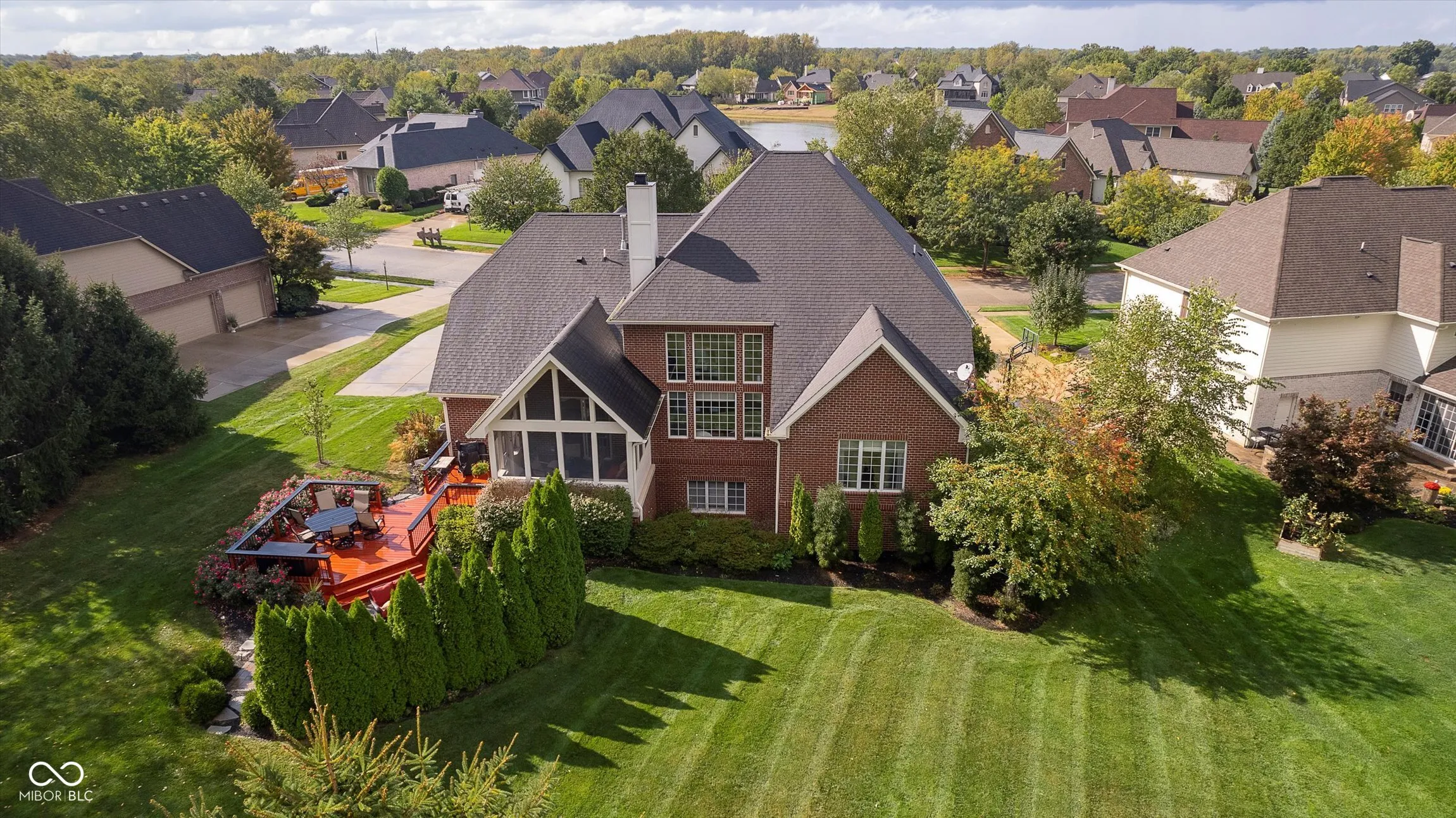 Welcome to your dream home in the coveted Lochaven neighborhood. This stunning custom brick home with five bedrooms and 4.5 baths offers a perfect blend of luxury and comfort. The first floor primary bedroom features a generous ensuite providing privacy and a convenient retreat. Step into the inviting living room, where large windows fill the space with natural light. The double-sided fireplace seamlessly connects the family room and the gourmet kitchen, creating a warm and welcoming atmosphere for gatherings. The expansive finished basement is an entertainer’s paradise, with a theater room that includes built in surround sound, gaming area, and a custom wet bar – perfect for hosting family and friends. Enjoy serene moments in the sunroom that opens to a mature landscaped yard, featuring elegant hardscaping and a cozy fire pit. This outdoor oasis borders a peaceful walking trail, offering a perfect escape into nature. Enjoy the many amenities of Lochaven including two clubhouses with swimming pools, tennis court, and extensive walking/jogging trails that weave throughout the neighborhood. Dillon Park is just a block away with live music and food trucks during the summer months. Don’t miss your chance to own this exceptional home, where every detail is designed for comfort and enjoyment .