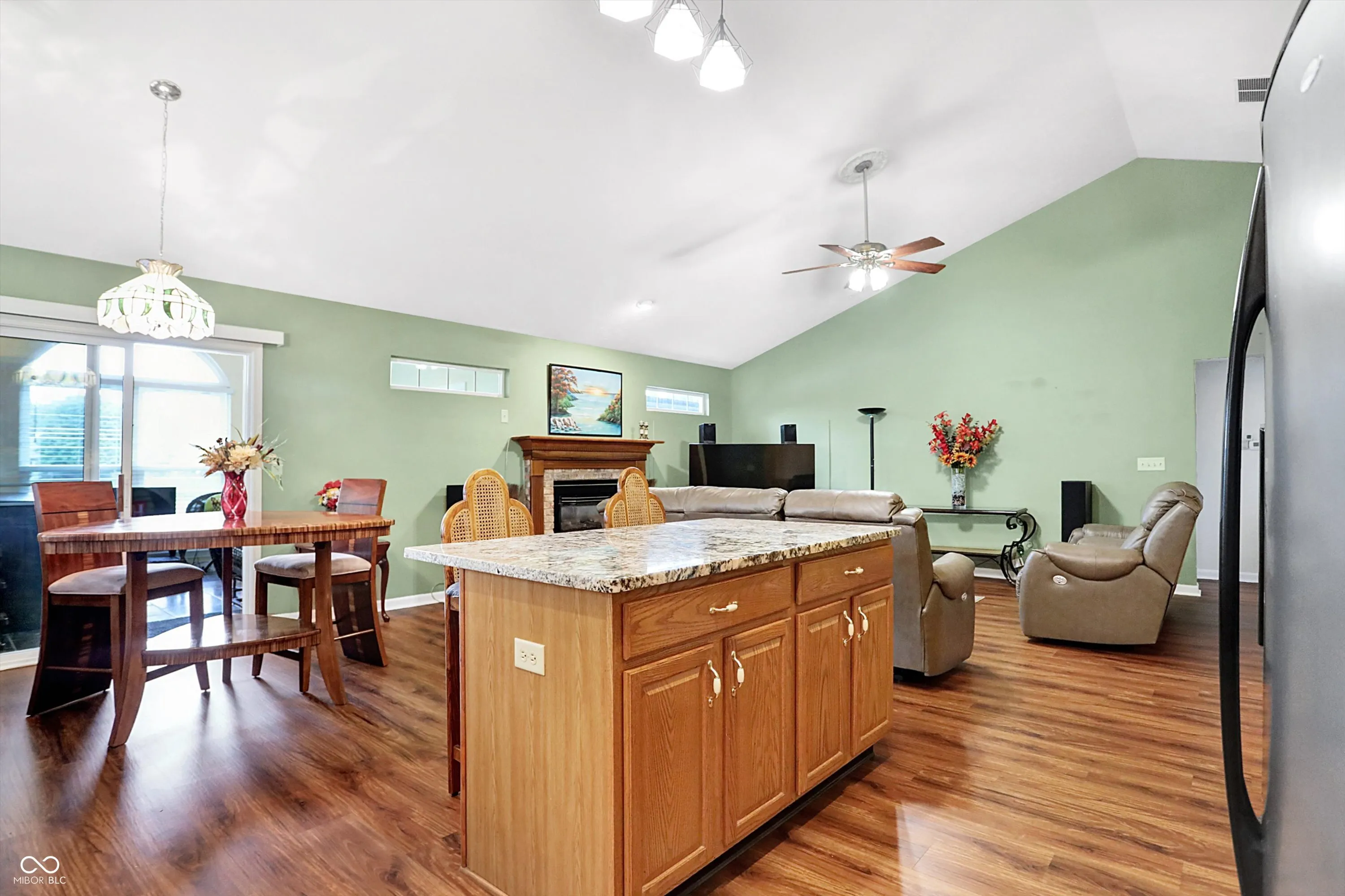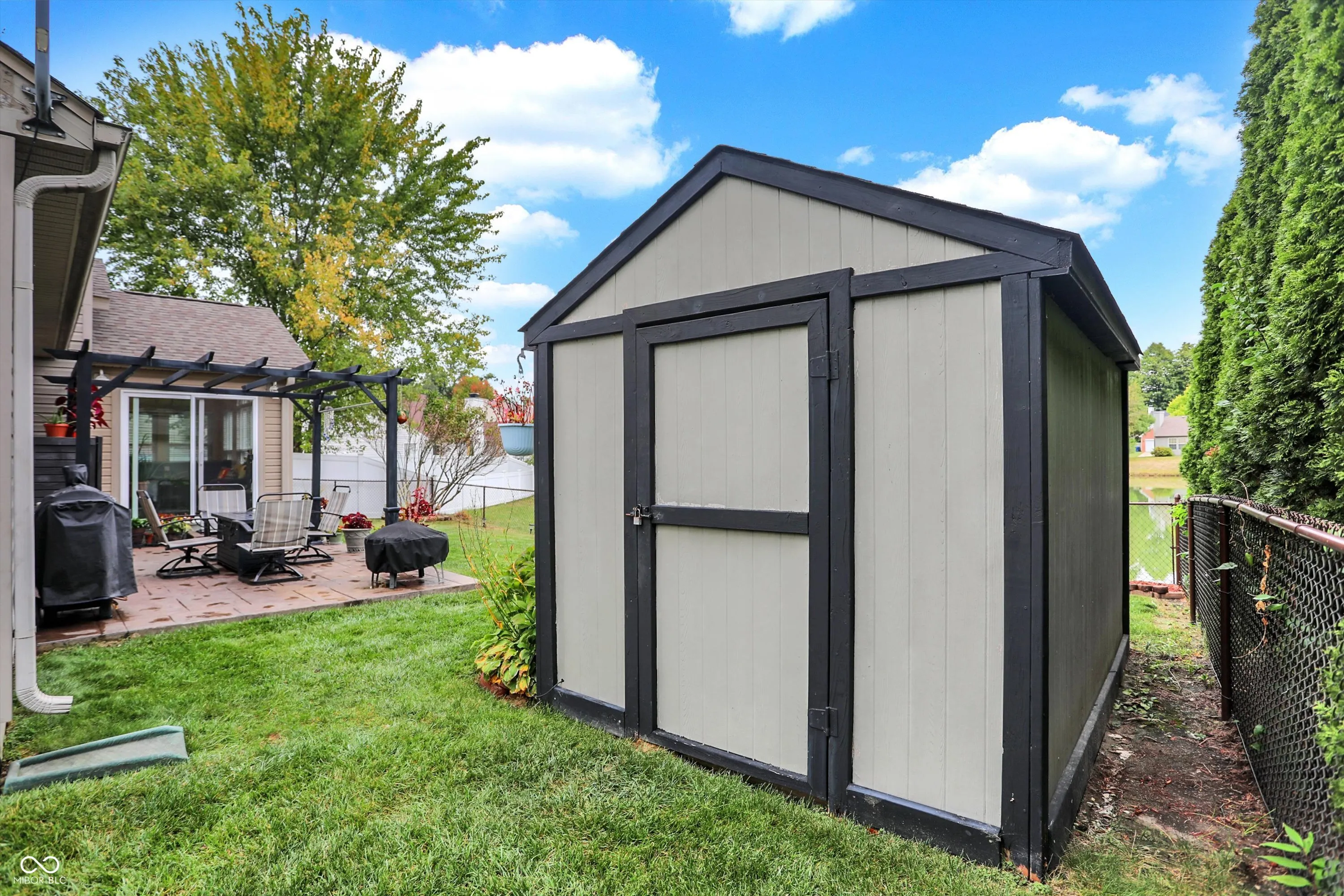 Welcome to this beautiful 3-bedroom, 2-bath ranch, offering a spacious open floor plan with vaulted ceilings. The kitchen features granite countertops, stainless steel appliances, and a large island, perfect for entertaining. Cozy up by the fireplace in the family room or enjoy the serene views from the 4-seasons sunroom overlooking the pond. The master suite boasts double sinks, a separate shower, and a relaxing garden tub. Laminate floors flow throughout the home. Step outside to your private backyard oasis, complete with a pergola, stamped concrete patio, fenced yard, and a mini barn for extra storage. This home also offers peace of mind with a 2-year-old roof and a 3-year-old furnace and AC. Conveniently located near shopping and dining, this home offers the perfect blend of comfort and convenience.