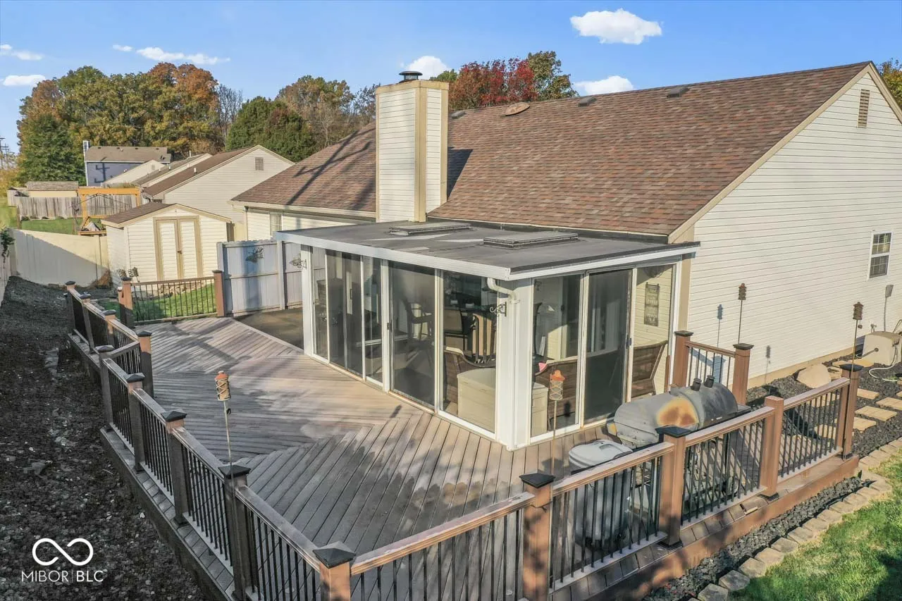 Stunning 3-Bedroom home with All-Season Sunroom and Upgrades Galore! Welcome to your perfect sanctuary! This beautifully updated 3-bedroom, 2-bathroom home features an inviting layout designed for modern living. The spacious living room boasts vaulted ceilings and a cozy fireplace, creating a warm and inviting atmosphere for gatherings or quiet evenings. Beautiful hardwood laminate floors throughout the home. Quartz countertops in the kitchen with stainless steel appliances. Step into the all-season sunroom, where you can enjoy the beauty of the outdoors year-round, whether sipping your morning coffee or hosting friends for dinner. The outdoor space is equally impressive, featuring composite decking and a privacy fence, offering the perfect setting for relaxing or entertaining. All the major mechanicals have been updated (Water Heater 1 year, HVAC 1 year, Roof 4 years). The garage is a dream come true with epoxy flooring, providing durability and a sleek finish. This home is a rare find-schedule your showing today and experience the perfect blend of comfort and style!