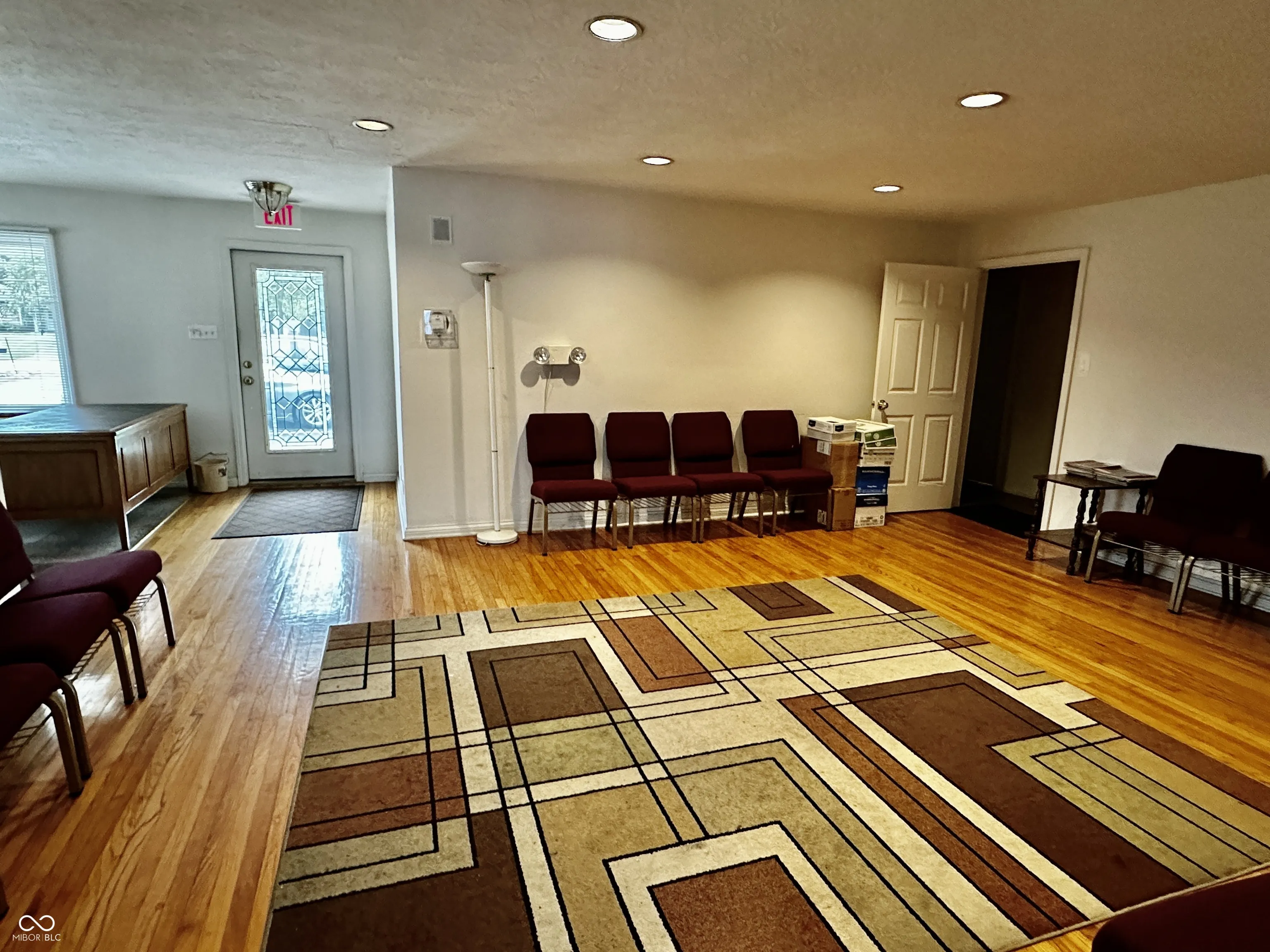 Private office space for lease in popular Greenwood with high traffic count, street visibility. 10×10 office has an exterior window for natural light. Brand new luxury vinyl plank flooring. Shared waiting area, kitchen, restrooms. Large paved parking lot. All utilities included. Internet available for additional $50/month. One year lease.