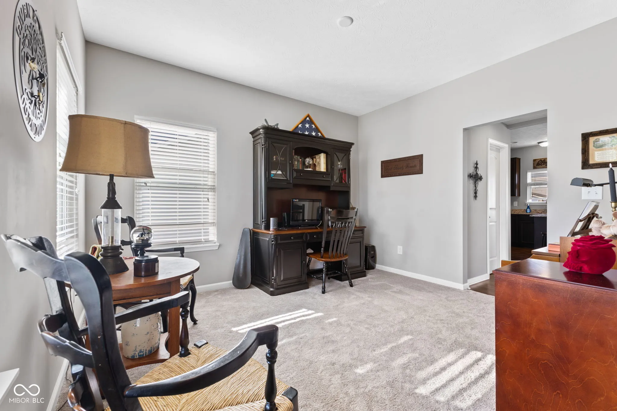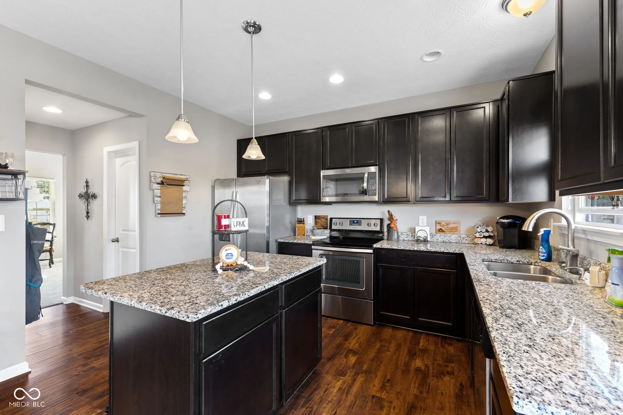 Welcome home to this charming and gently used 2-story home in Greenfield’s popular Sawmill. The beautifully laid-out main level is beautifully decorated in warm tones and features a great floor plan which includes what could be a dedicated office space just off the entry, perfect for remote work or study. The heart of the home offers an inviting kitchen/dining and living space ideal for entertaining or cozy family gatherings. The kitchen is a true delight, complete with a large island, granite countertops, espresso cabinets, and room large enough for a dining table and 4-6 chairs. Upstairs you will find a large primary bedroom with 2 closets and a spacious primary bath with double sinks, separate tub, and tiled shower. The double walk-in closets will definitely satisfy all your storage needs, ensuring everything is organized and within reach. Upstairs, you’ll also find a versatile loft space that can serve as a playroom, media area, or additional office, and the laundry room is also conveniently located upstairs. The home also has a fully fenced rear to keep your fur babies safe and contained and the community offers a park, playground, and pool. This home is truly move-in ready and waiting for its next owners!