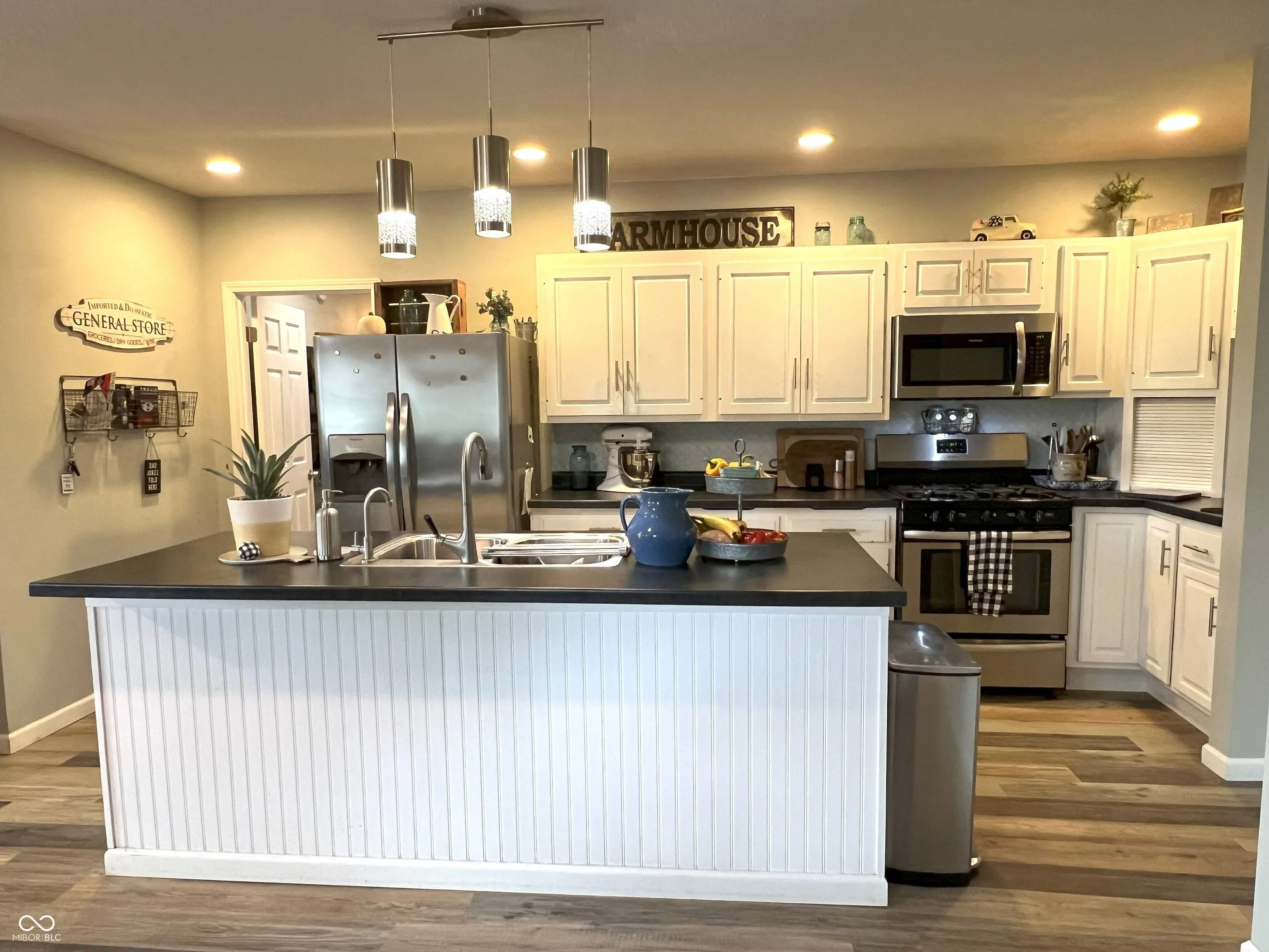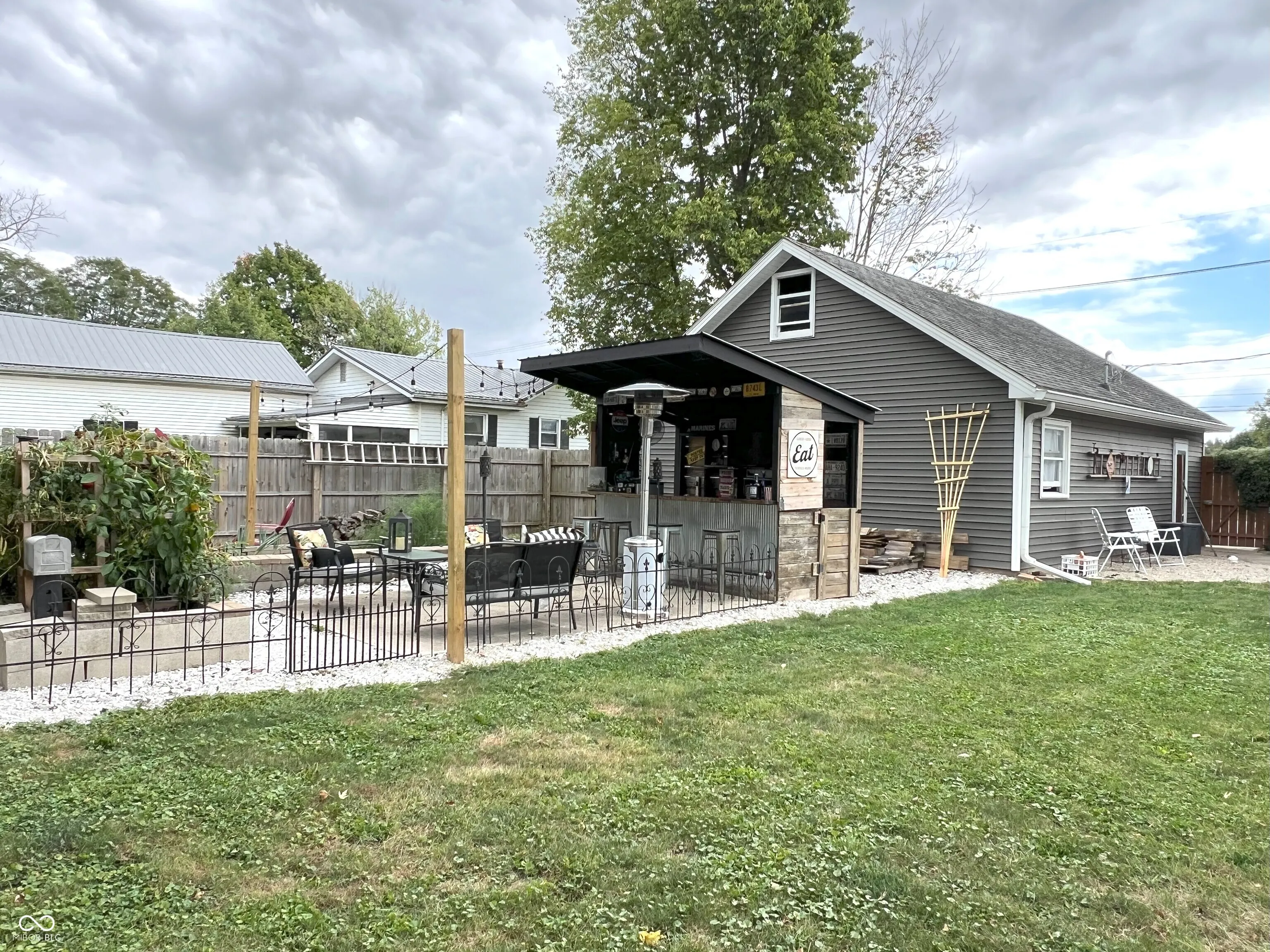 Completely renovated in 2019, this beautifully updated 3-bedroom, 2-bathroom home offers 1,372 sq. ft. of modern living space. Every detail was upgraded, from the drywall and ceilings to the stylish vinyl plank flooring. Key updates include new lighting, HVAC system, vinyl siding, windows, roof, kitchen cabinetry and countertops, appliances, and bathroom vanities and fixtures. The spacious, privacy-fenced backyard features a cozy fire pit and a custom-built bar/patio area, perfect for hosting gatherings. Additionally, an oversized, heated 2-car detached garage includes a fully floored second level, ideal for storage or transforming into your dream man cave. Don’t miss this turnkey gem!