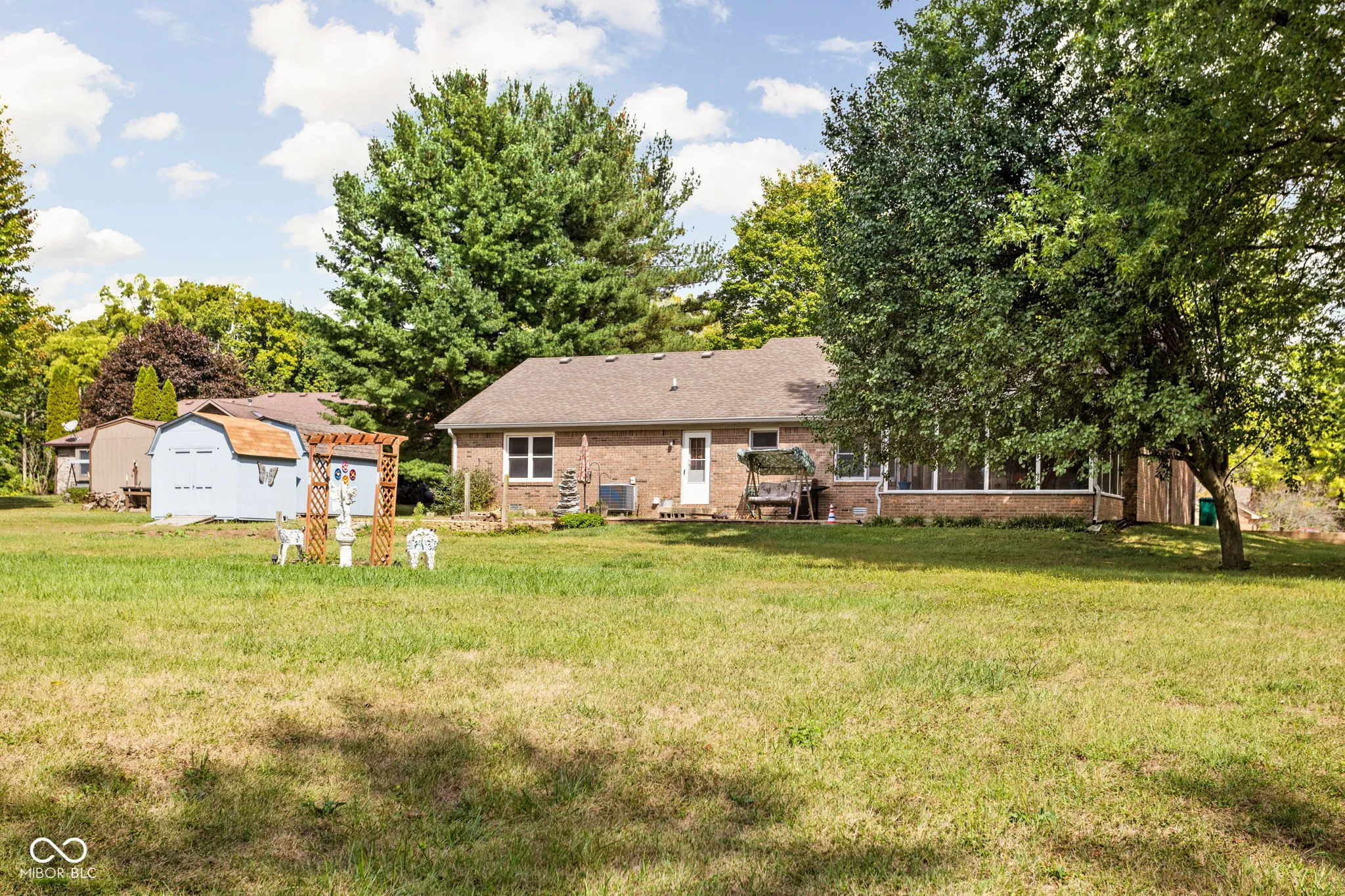Welcome to this charming 3 bed, 2.5 bath all-brick custom ranch in Clayton, nestled on a quiet cul-de-sac with a private, wooded 1.95-acre backyard with pond access! Enjoy peaceful mornings in the screened in porch overlooking your serene retreat. The home features two cozy living spaces, one with a fireplace, perfect for relaxing. New paint in kitchen and bedrooms as well as new carpet in the primary bedroom! With a 2-year-old HVAC and two mini barns for extra storage, this home combines comfort and convenience. If you’re looking for quiet, nature-filled living in a great location, this home is a must-see!