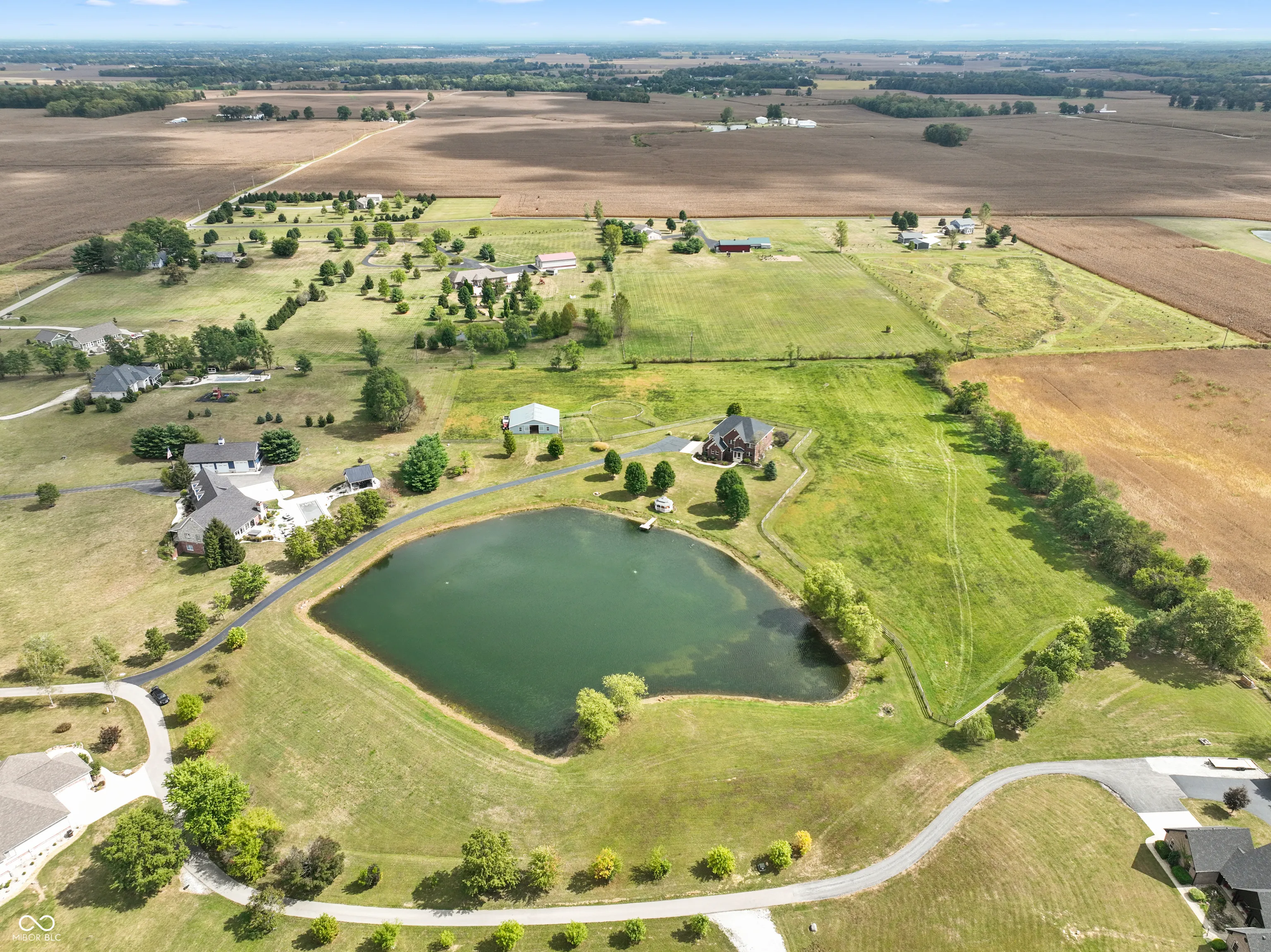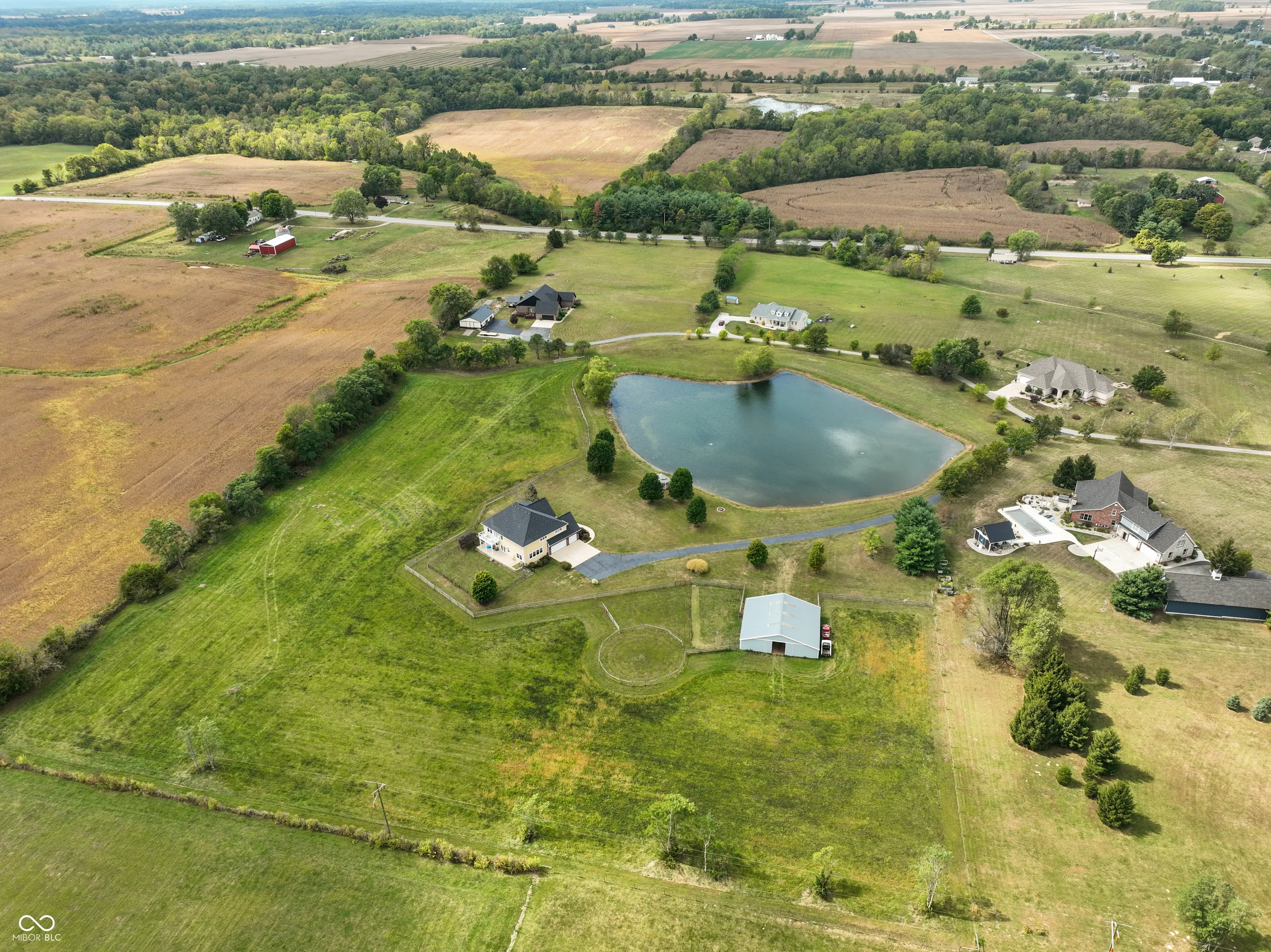 EXQUISITE executive estate on over 11 acres. Welcome to this 6,000+ total sq.ft. home, perfectly situated on over 11 acres of serene countryside. This luxurious property offers unparalleled privacy & upscale living, complete with a 2-acre stocked private pond for fishing or enjoying peaceful waterfront views and sunsets. The estate includes a 45×36 horse barn fully equipped to accommodate your equestrian needs, fenced pasture, electricity & water, perfect for horses or other livestock. Inside the home boasts expansive living spaces with fine finishes throughout. Multiple living spaces including a full basement. Gourmet kitchen with granite tops, a formal dining room, office, family room with fireplace and also a living room. This one-of-a kind property offers a blend of luxury, comfort, and country living at its finest.