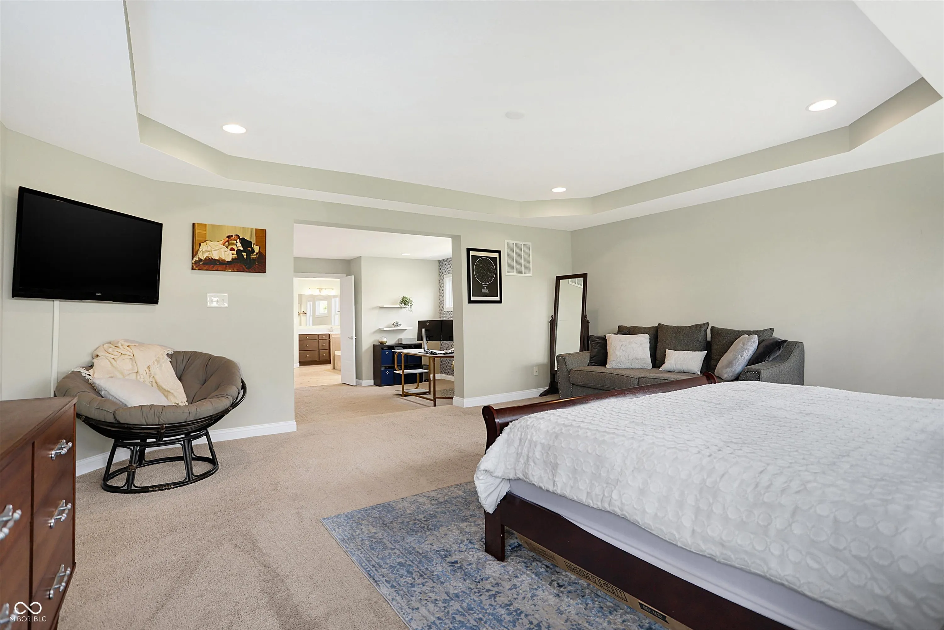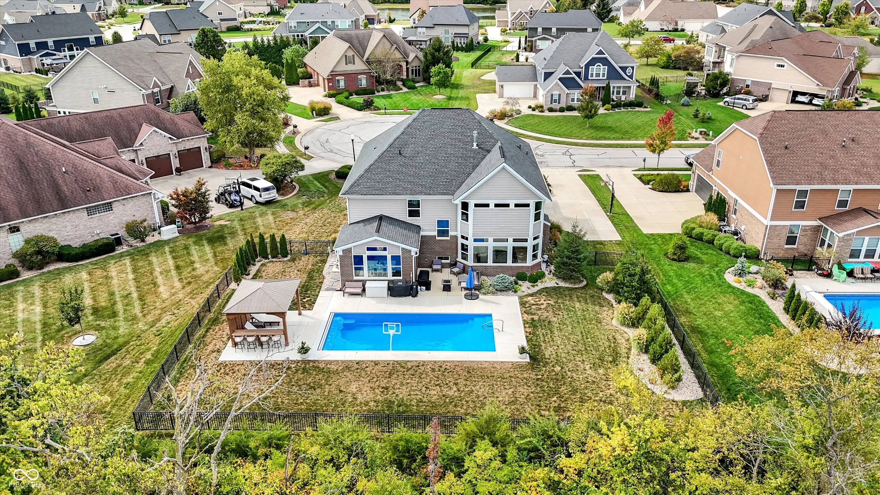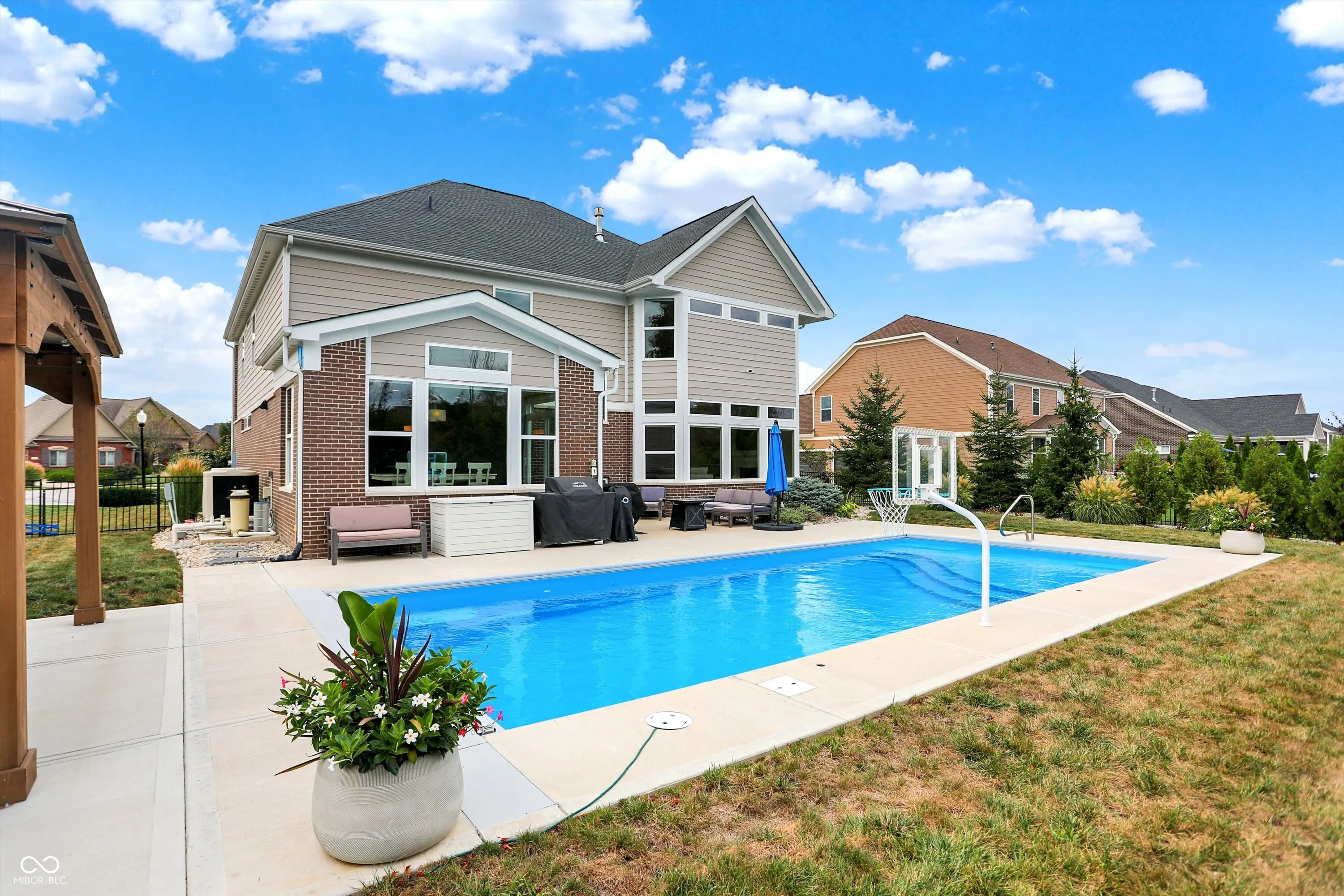 Welcome to this stunning two-story home featuring 5 spacious bedrooms and 4.5 baths, perfectly designed for modern living. As you enter, you’ll be greeted by new carpet throughout the main level, enhancing the warm and inviting atmosphere. The open floor plan seamlessly connects the chef’s kitchen-equipped with double ovens, a massive center island, and a cozy breakfast room-to the expansive great room, which boasts a gas fireplace, ideal for cozy evenings. Upstairs, the impressive primary suite is a true retreat, complete with a private office and a luxurious bathroom. The fully finished basement serves as an entertainer’s paradise, featuring a 5th bedroom, a full bath, a stylish bar, and a versatile rec room. Step outside to discover your fenced backyard oasis, featuring a beautiful pergola and patio, perfect for outdoor gatherings and relaxation. Enjoy the meticulously designed new landscaping that enhances the home’s curb appeal and outdoor living space. For ultimate relaxation, take a dip in the gorgeous fiberglass saltwater pool, complete with a heater and automatic cover, ensuring year-round enjoyment. This home combines elegance and functionality in a desirable neighborhood, making it a must-see