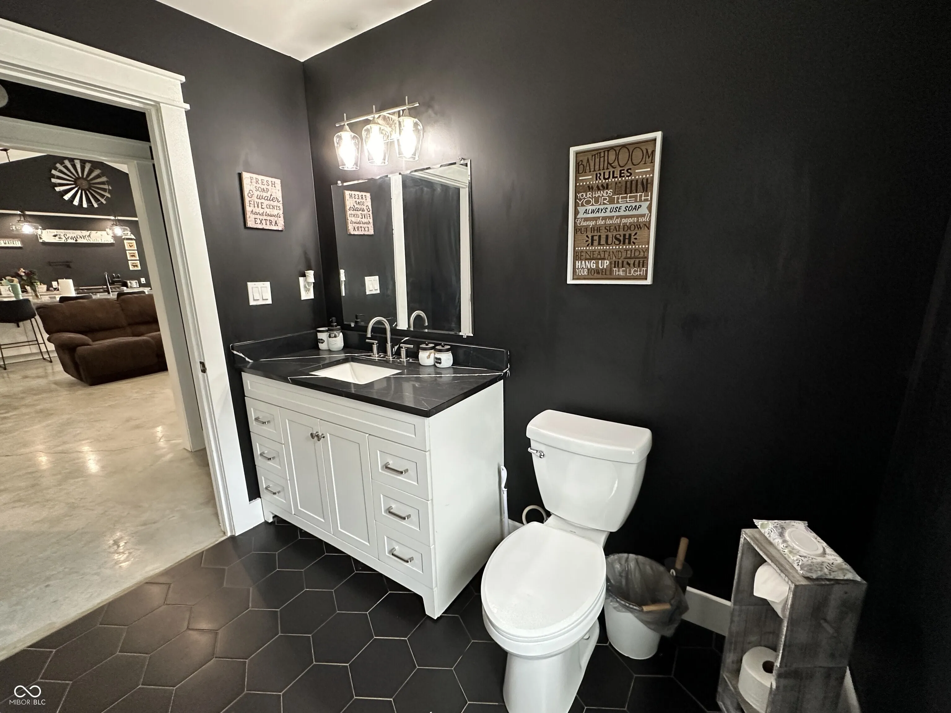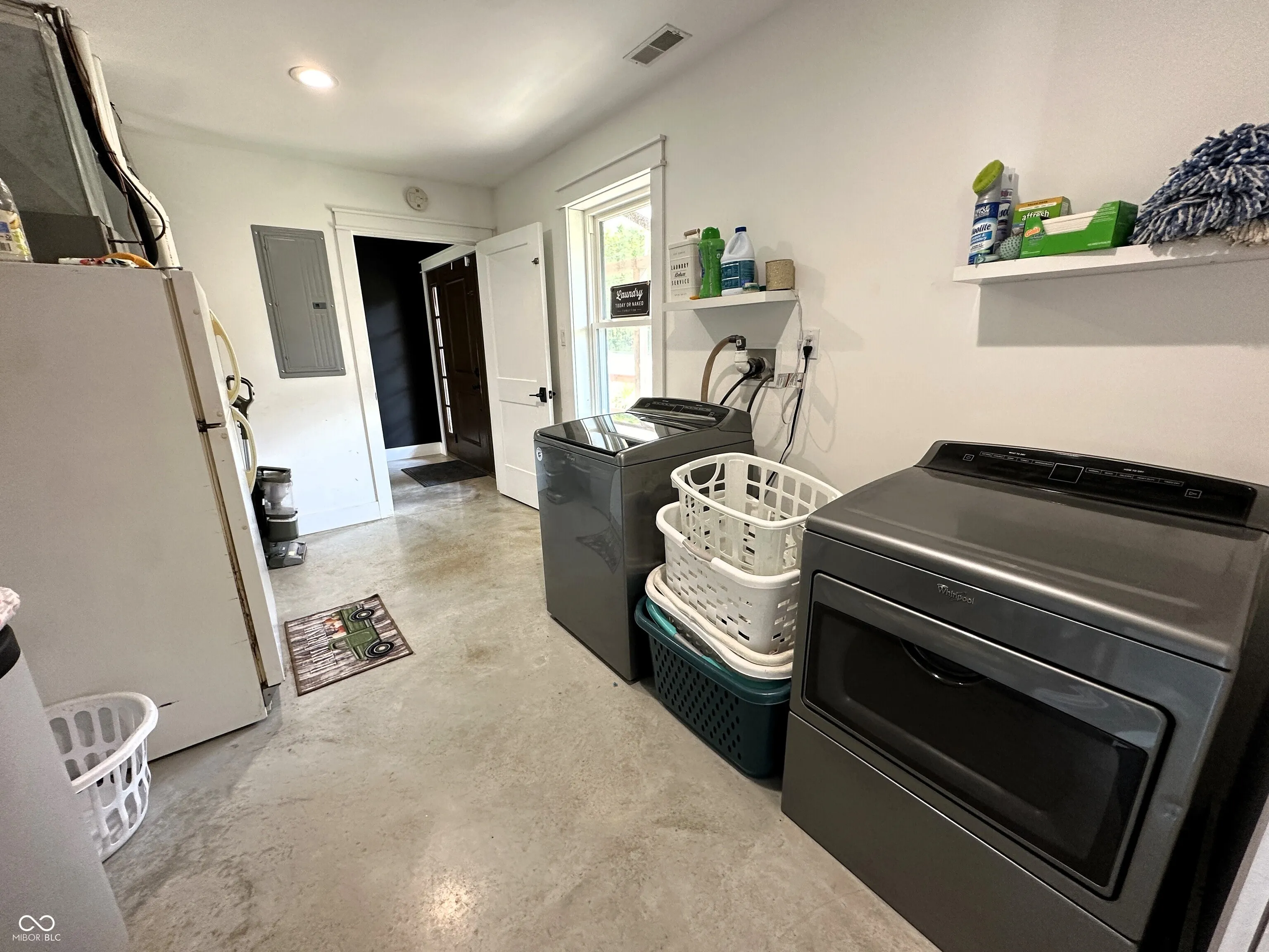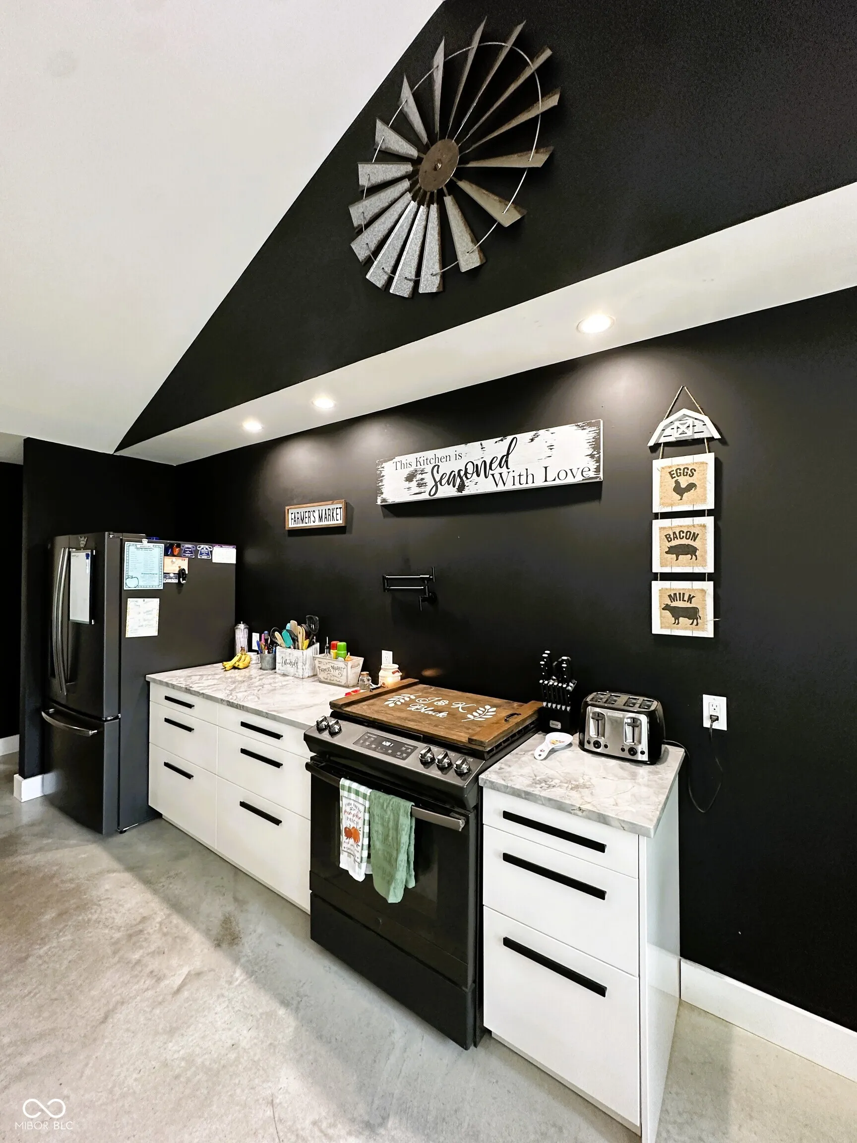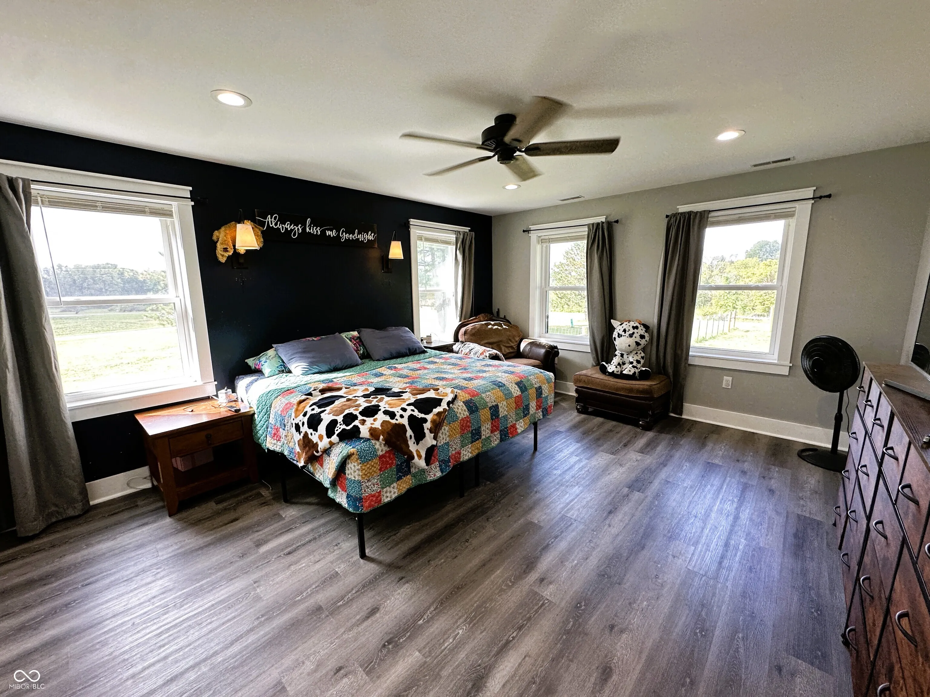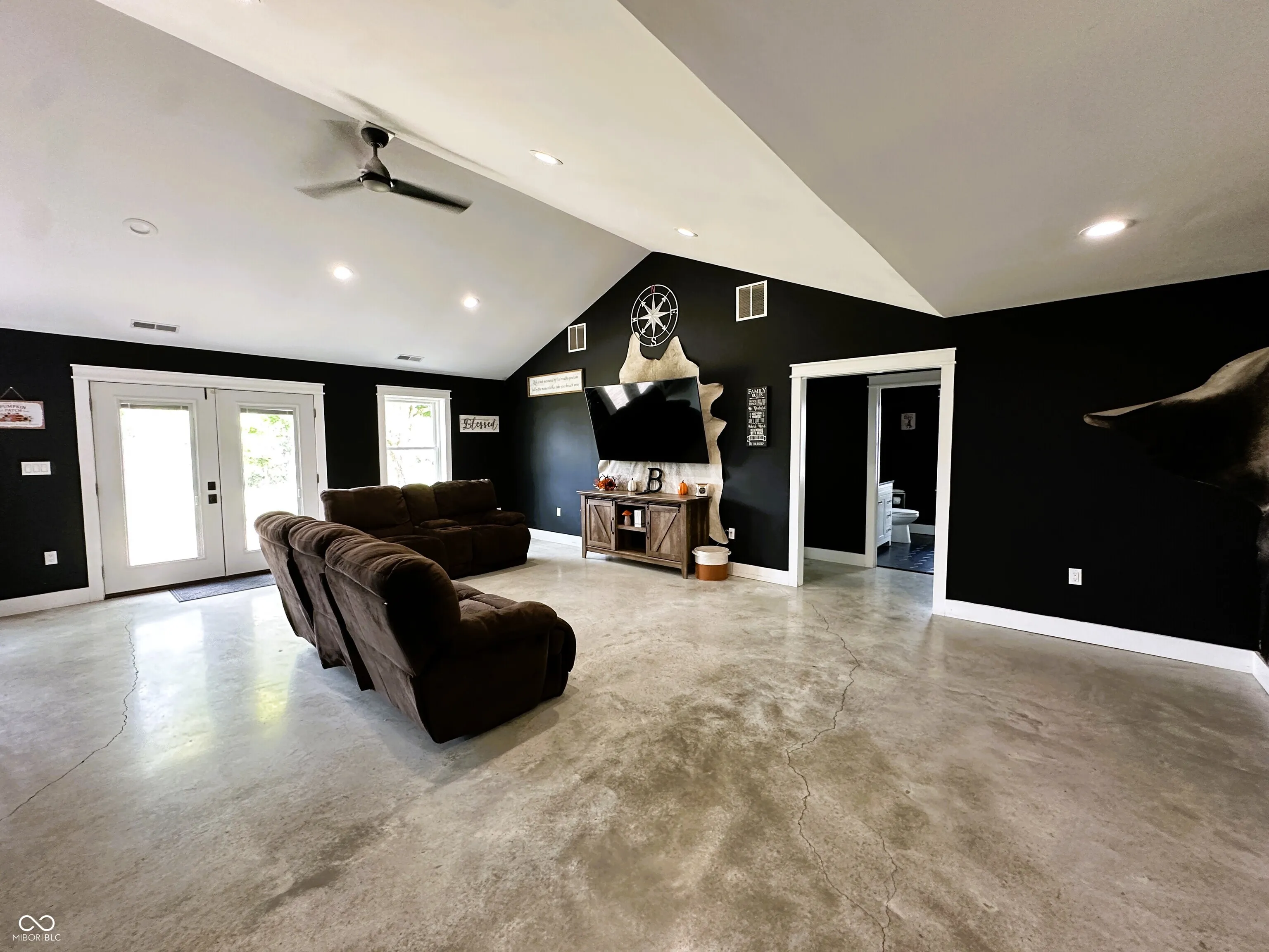 This custom-built 2,240 SF, 4 BR, 2 Full BA Barndominium on 4 country acres is the stuff that dreams are made of! Wide open spaces all around, plus a MASSIVE 1,440 SF heated Pole Barn/Workshop AND an 864 SF detached 2-car Garage added in 2022 that combined provide parking for 6+ vehicles! Built in 2019, this Barndo features an expansive open concept central living space w/ soaring cathedral ceilings & Great Room/Kitchen/Dining Room combined. Tons of natural light, matte black walls, bright white ceilings & shiny concrete floors add to the modern feel of this space. The Kitchen is anchored by a Dolomite stone waterfall island/breakfast bar w/ an amazing amount of cabinet space. Black SS gas stove, refrigerator, dishwasher & microwave all included. (Don’t overlook the awesome pot filler over the gas stove!) The 9×6 Walk-in Pantry w/ black granite countertop & custom storage cabinets will blow you away! (All cabinets & drawers in the Kitchen AND Pantry are soft close!) Split BR Floorplan w/ private Master BR Suite on the opposite side of the home from the other 3 BRs. There is SO much natural light in the Master BR overlooking the scenic backyard, plus a HUGE 13×10 spa-like Master BA w/ double vanities & quartz vanity tops, soaker tub, custom tile walk-in wet shower w/ rainforest showerhead, private toilet room, overhead wifi light w/ changing colors & speaker & 10×10 W/IN closet! JUST WOW. BRs 2, 3 & 4 share the 2nd full BA w/ black octagon ceramic tile flooring & quartz vanity top. The spacious Laundry Room/Utility Room is 14×9 & located next to the Master BR W/IN Closet. The attic pulldown stairs in the Laundry Room/Utility Room provide convenient add’l. storage. Double pane, vinyl tilt-in windows throughout. Outside you’ll find a covered front porch w/ cathedral ceiling, open back deck, fenced-in backyard, 3 apple trees, a persimmon tree & expansive country views for miles. 200 amp. electric in house, 100 amp. in Pole Barn & 50 amp. plus RV hook-up in Garage.