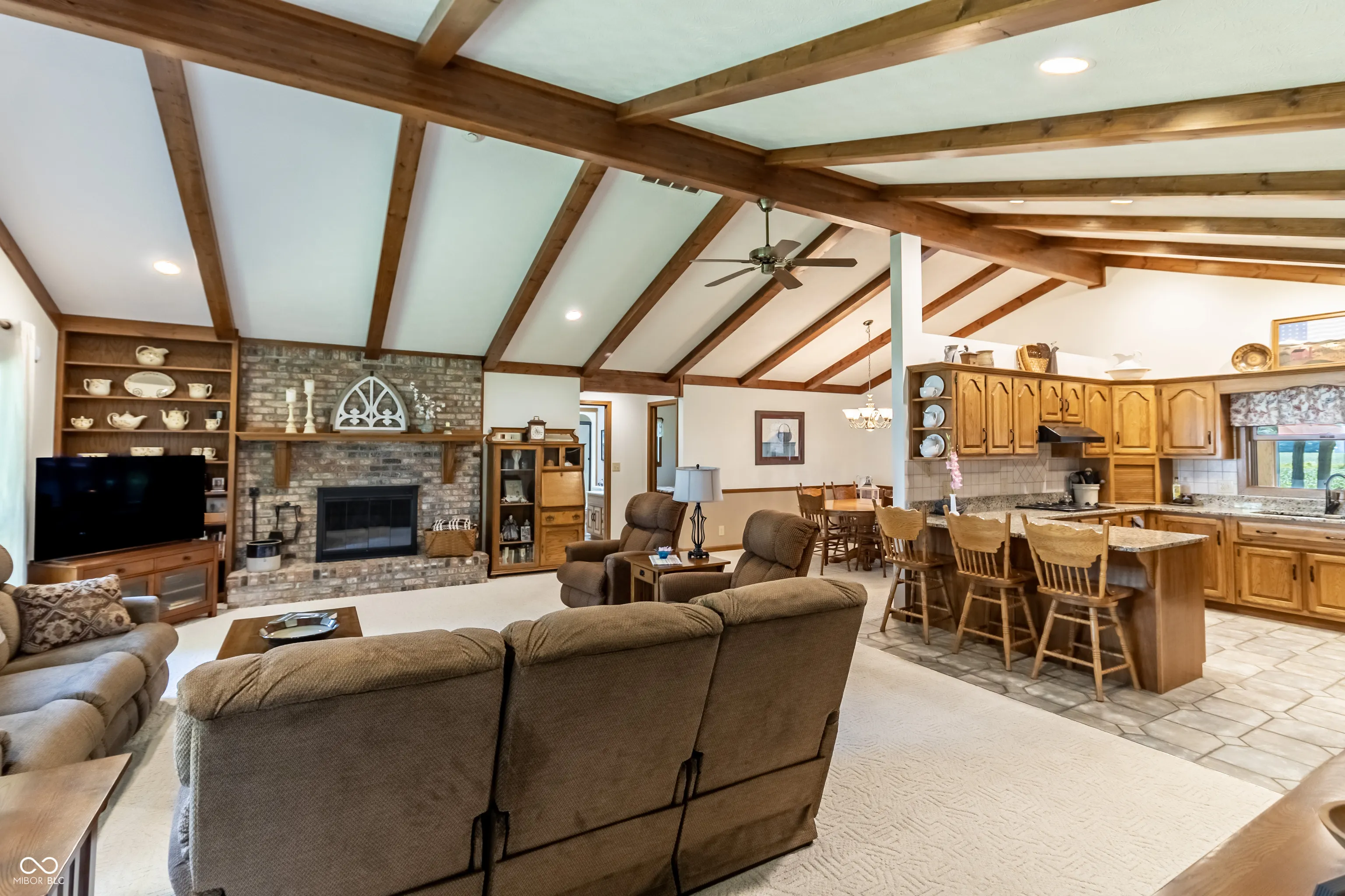 Own this 3bed 2 bath all brick ranch, open concept with soaring cathedral ceilings and exposed beams. The split ranch design separates the owners suite and the 2nd and 3rd bedrooms. Did I mention this sits on a 1.52 acre State Park like lot with mature trees and is positioned at the end of the cul-de-sac with agricultural fields to the north and east. The home has been meticulously maintained with fairly recent custom kitchen and bath updates. There is an attached 2-car garage, but the all brick detached garage/workshop can hold addition vehicles or other recreational items. The sunroom and back patio give year around pleasure of looking out into the acreage that is adjacent to the home. The storage above the garage is accessed via a stair case, and there is enough room to convert this to some living space or a home office. Schedule your showing today; the only reason you will be disappointed is if you let this one get away!!!!