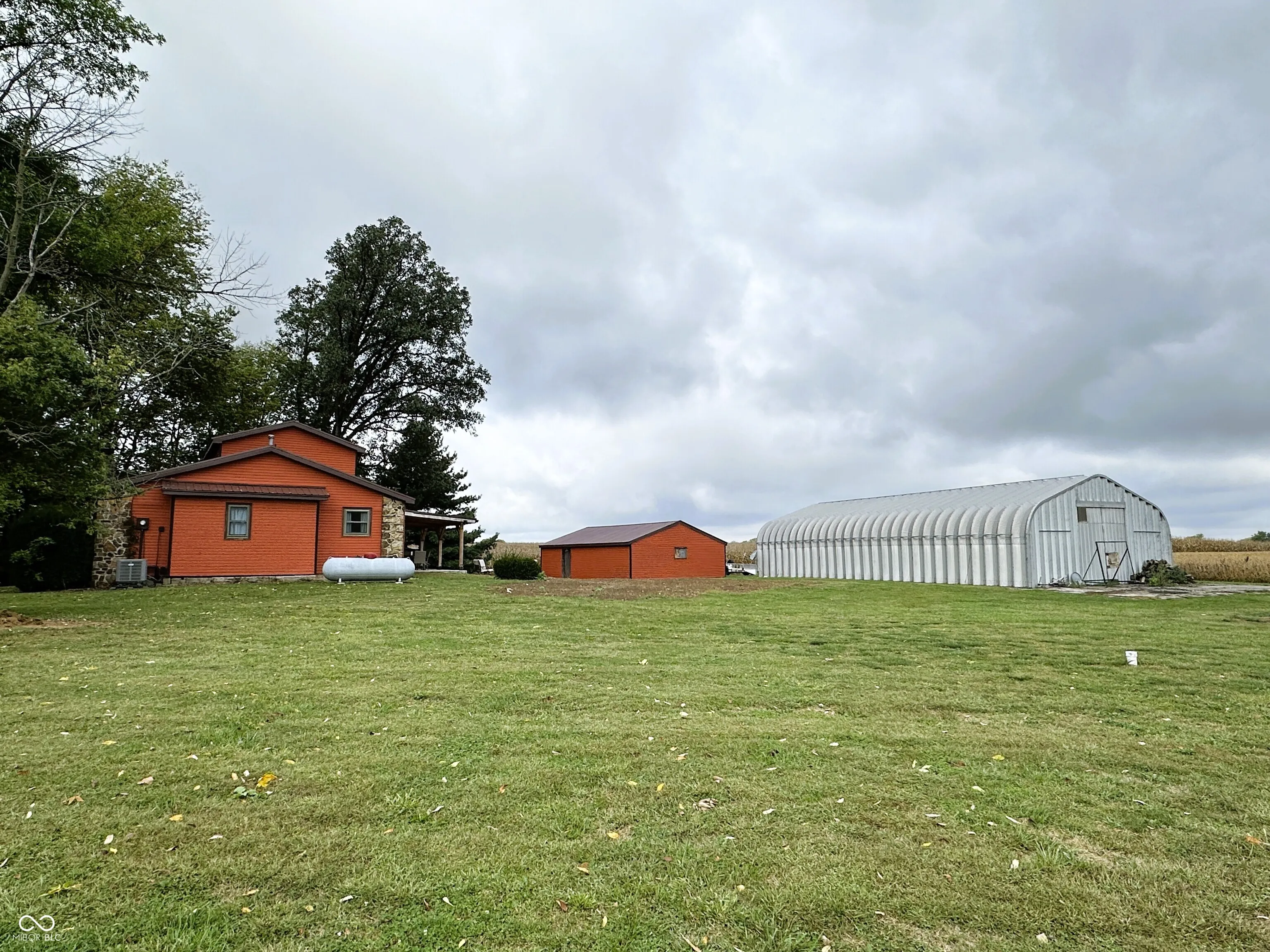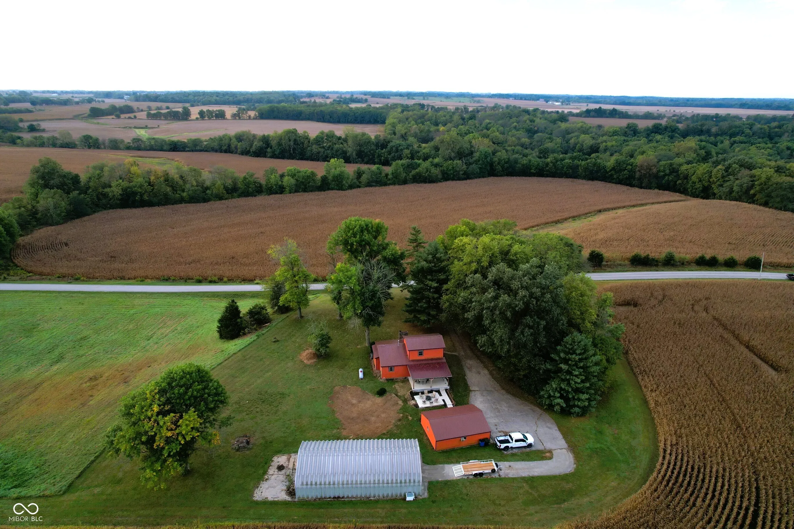 If peace, privacy & wide open spaces is what you want, then look no further! This 3 BR, 2 Full BA rustic charmer in the countryside has SO MUCH TO OFFER! Situated up on a hill on 1 acre and surrounded by farm fields on all 4 sides, this home is the definition of dreamy. Enjoy your evenings on the expansive covered back patio w/ open patio extension. Large 720 SF 2-car detached Garage w/ concrete floor, electric & plenty of storage cabinets. The MASSIVE 1,500 SF Quonset Building provides add’l. storage, parking and/or workshop space. Inside the home you’ll find an awesome 2-story Living Room w/ soaring vaulted ceiling & masonry wood-burning fireplace. The huge picture window in the Living Room provides beautiful natural light. Open concept living in the combined Kitchen/Dining Room. Pantry, center island and stove, hood fan, refrigerator & dishwasher are all included. The Laundry Closet is located off the Kitchen w/ washer & dryer included, as well. The Master BR is located in the upstairs loft & features a walk-in closet and private Full BA. BRs #2 & #3 are both located on the main level and share the second Full BA. The full basement is dry & can easily be finished. The Seller’s weight room is currently located there. New gas furnace and central A/C in 2021. New metal roofs on both house and garage in 2020. New concrete covered & uncovered back patios in 2023. What are you waiting for…come and take a look TODAY!