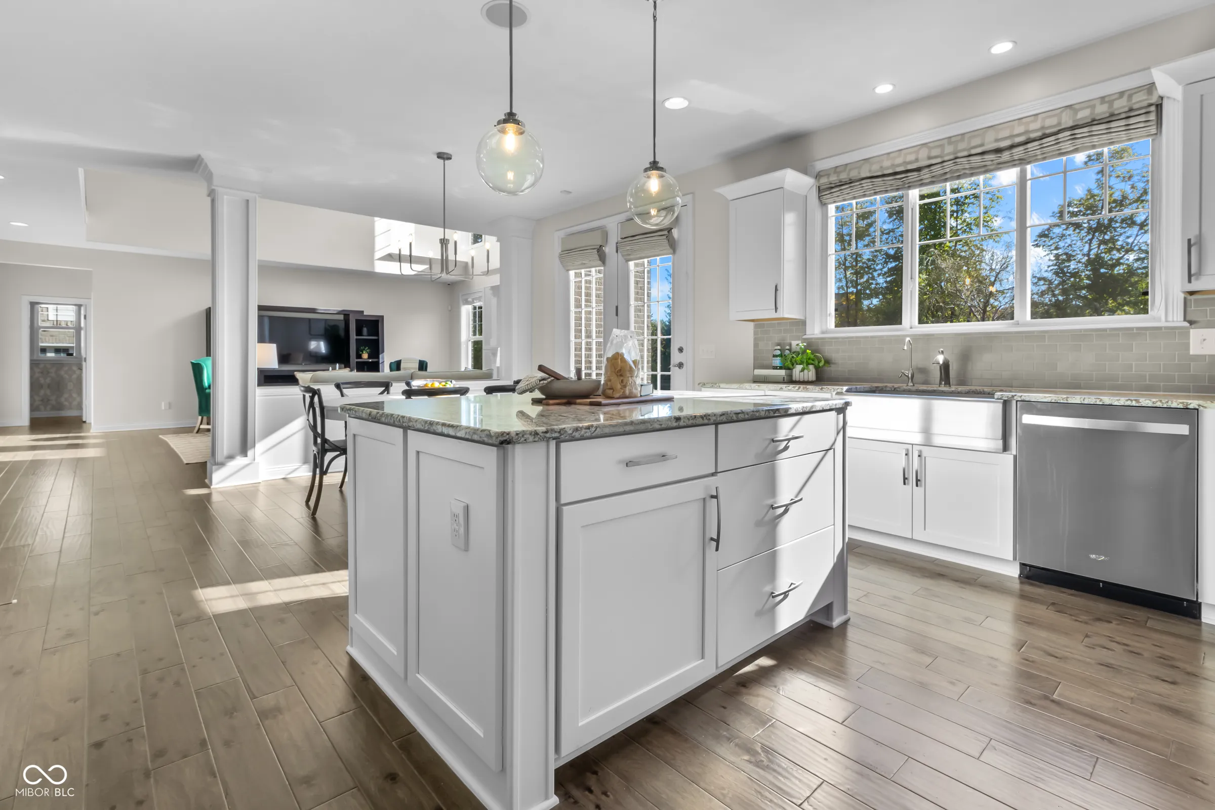 Welcome to this beautiful home, where the grand two-story entry flows into a large family room open to the upper level, with soaring ceilings and large windows. The spacious, eat-in kitchen features a center island, stainless steel appliances, granite countertops, and a large walk-in pantry-perfect for cooking and gathering. The main floor also offers a formal dining room, a versatile sitting room or home office, a first-floor bedroom, half bath, and laundry room. Dual staircases lead upstairs to four bedrooms, including the primary suite with a custom walk-in closet and luxurious en suite bath. Two bedrooms share a Jack-and-Jill bath, and the fourth has a private ensuite. A loft area provides flexible space perfect for a playroom or reading nook. The finished basement includes a wet bar, second family room, half bath, and plenty of storage. Complete with a three-car garage, this home is located in Brookhaven, offering a community pool, playground and basketball court, all within the sought-after Zionsville school district.