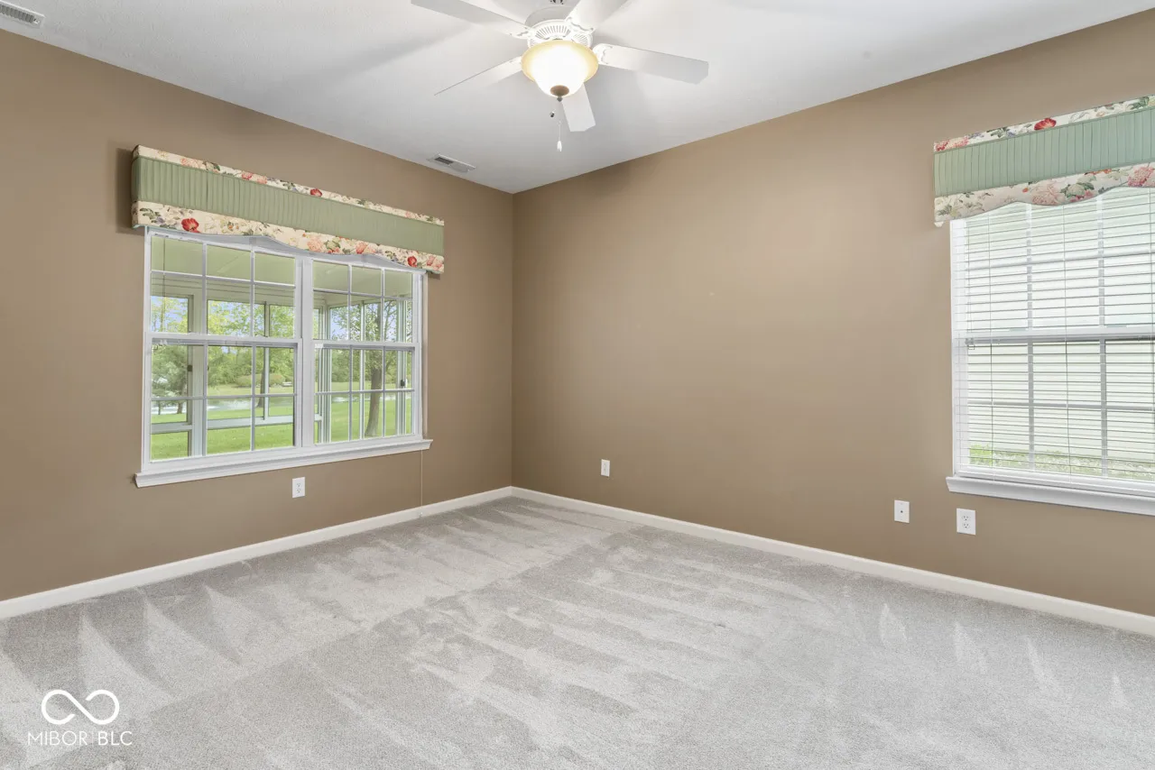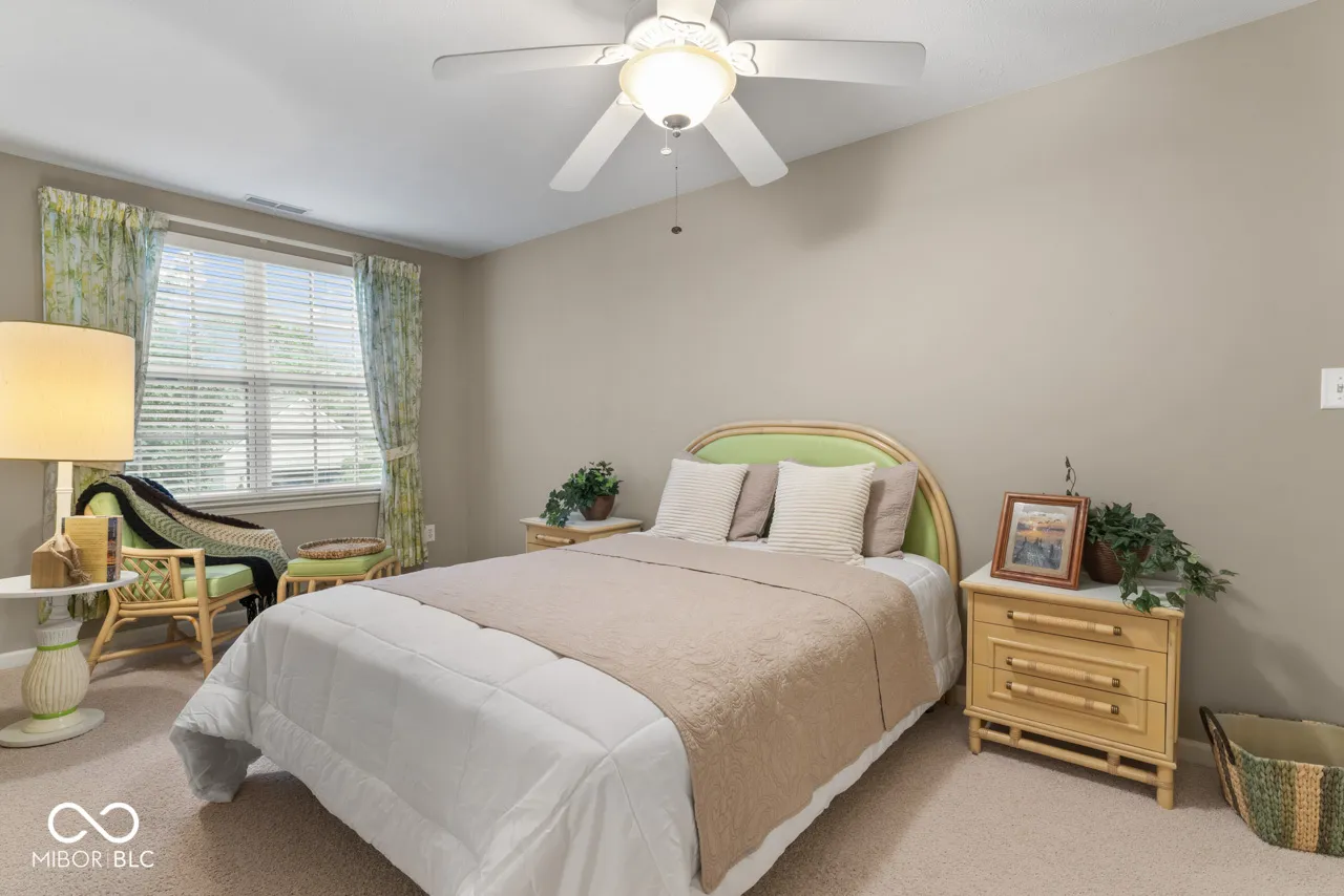 Enjoy a low stress lifestyle in this wonderful low-maintenance home in Willow Lakes on one of the best lots in the neighborhood! This house is truly special with a large sunroom and a screened porch that overlooks the pond and fountain, mature pines and willow trees, creating privacy without feeling closed in. Enjoy a cozy two-way gas fireplace from the breakfast room or the living room. There is also a formal dining area and a breakfast bar with room for 4 barstools making large dinners a breeze. The primary bedroom and attached bath has two walk-in closets, double vanity sinks and a walk-in shower. The second bedroom has an attached bath with a tub/shower enclosure and a walk-in closet. Upstairs is a large bonus room (3rd bedroom) with a walk-in closet and half bath. The main floor has newer carpet, and both full baths have newer quartz countertops. Garage has an epoxy floor and a closet for the mechanicals. Gas Furnace is 5-years-old; water softener is 2-years-old. Roof is original, but in good shape. Irrigation system keeps the grass looking good. The HOA cuts the grass and removes snow in the winter. Great location close to Noblesville, Westfield, 146th and the new bypass will be just down the street. A short walk away from the Midland Trail that connects with the Nickle Plate and the Monon.