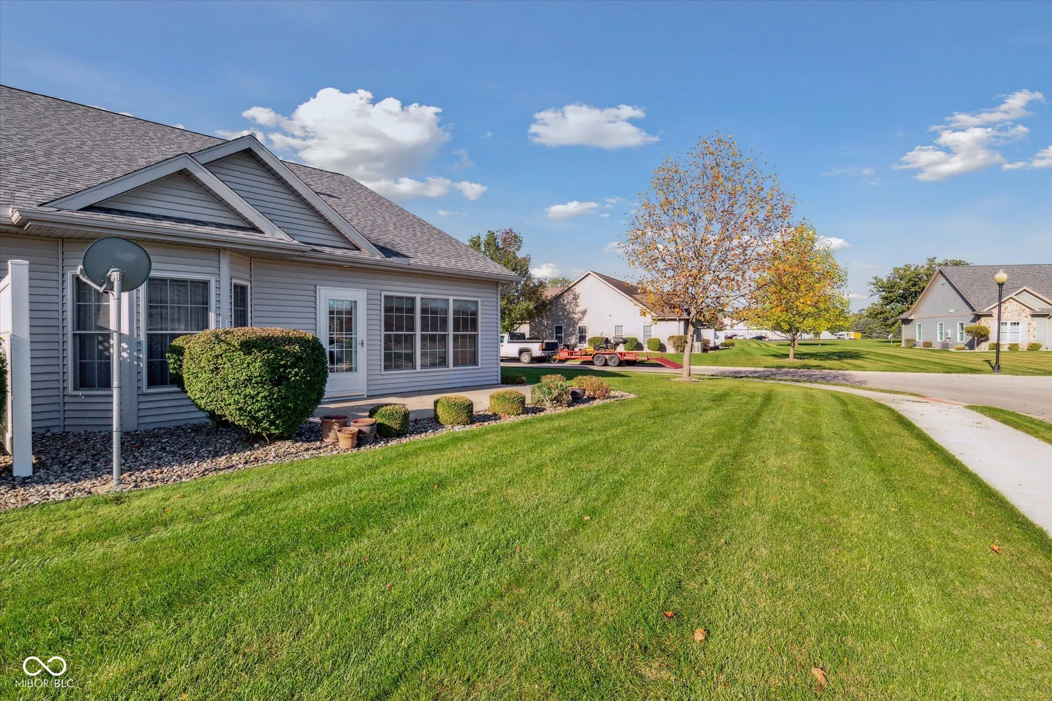 Welcome to this delightful 2-bedroom, 2-bath condo situated in the desirable Heritage Farms subdivision of Nappanee. Spanning 1,660 square feet, this home features an open concept layout accentuated by soaring vaulted ceilings that enhance its airy feel. Enjoy the soothing surroundings of the inviting sunroom, perfect for relaxation and leisure. The large, unfinished basement offers a canvas for future expansion or personalization, truly making this space your own. Located close to walking trails and a peaceful park, this ADA accessible property combines convenience and nature harmoniously, all with the benefit of low maintenance living.