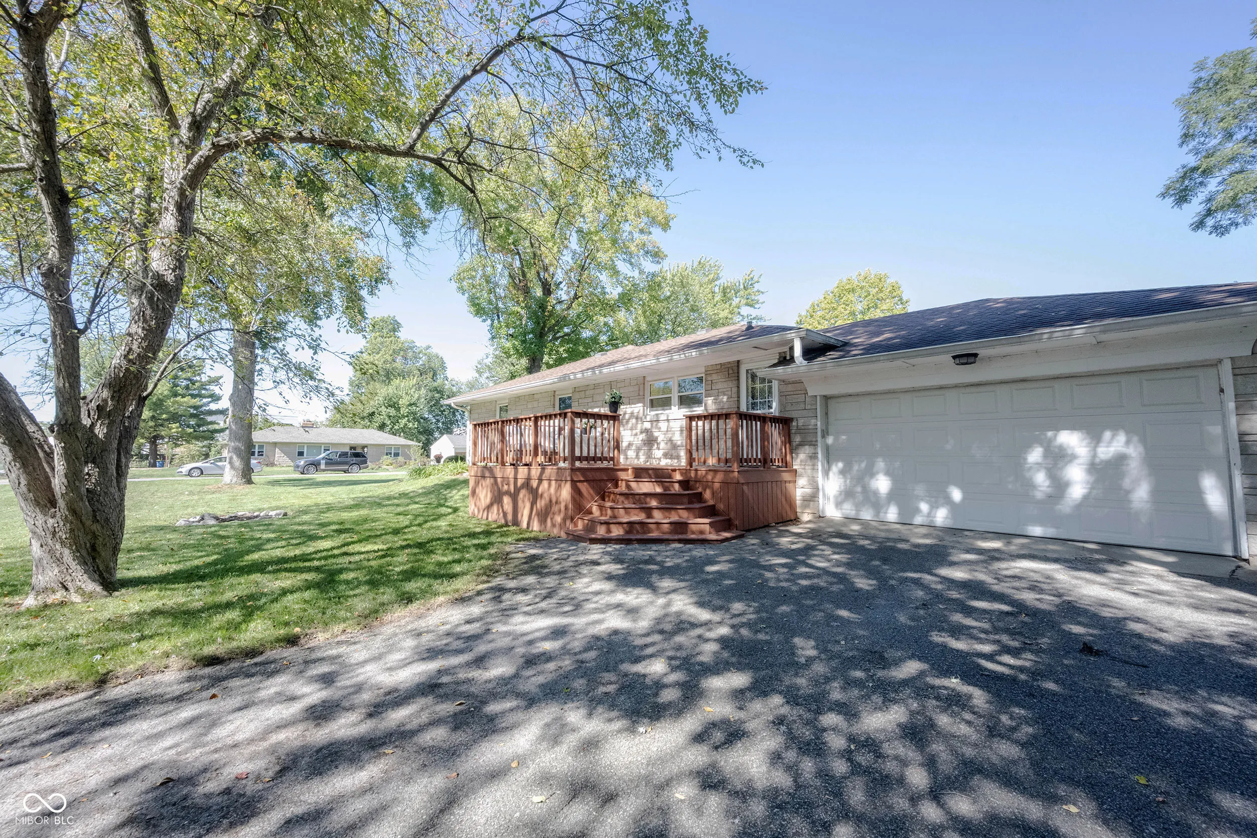 Tranquility & charm defines this all-stone ranch on a quiet tree lined street in the popular Riddle Manor Neighborhood. Hardwood floors, beveled glass doors and beautiful natural light distinguish the well-appointed open living & dining room space. Enjoy entertaining around the kitchen island or walk outside to the large deck overlooking the corner lot. You will be impressed with the recently updated carpet in the 3 spacious bedrooms, featuring 1.5 bathrooms with ample closet space. Primary bedroom presents a fully renovated half bathroom, sitting area and customized walk-in closet. Unfinished basement with added epoxy flooring provides additional living space, workout area, open storage and laundry. Two car attached garage with suitable storage space for your needs. Home is walkable to the Glendale shopping area, restaurants and Broad Ripple’s Farmers Market. Don’t miss out on this well-maintained home!