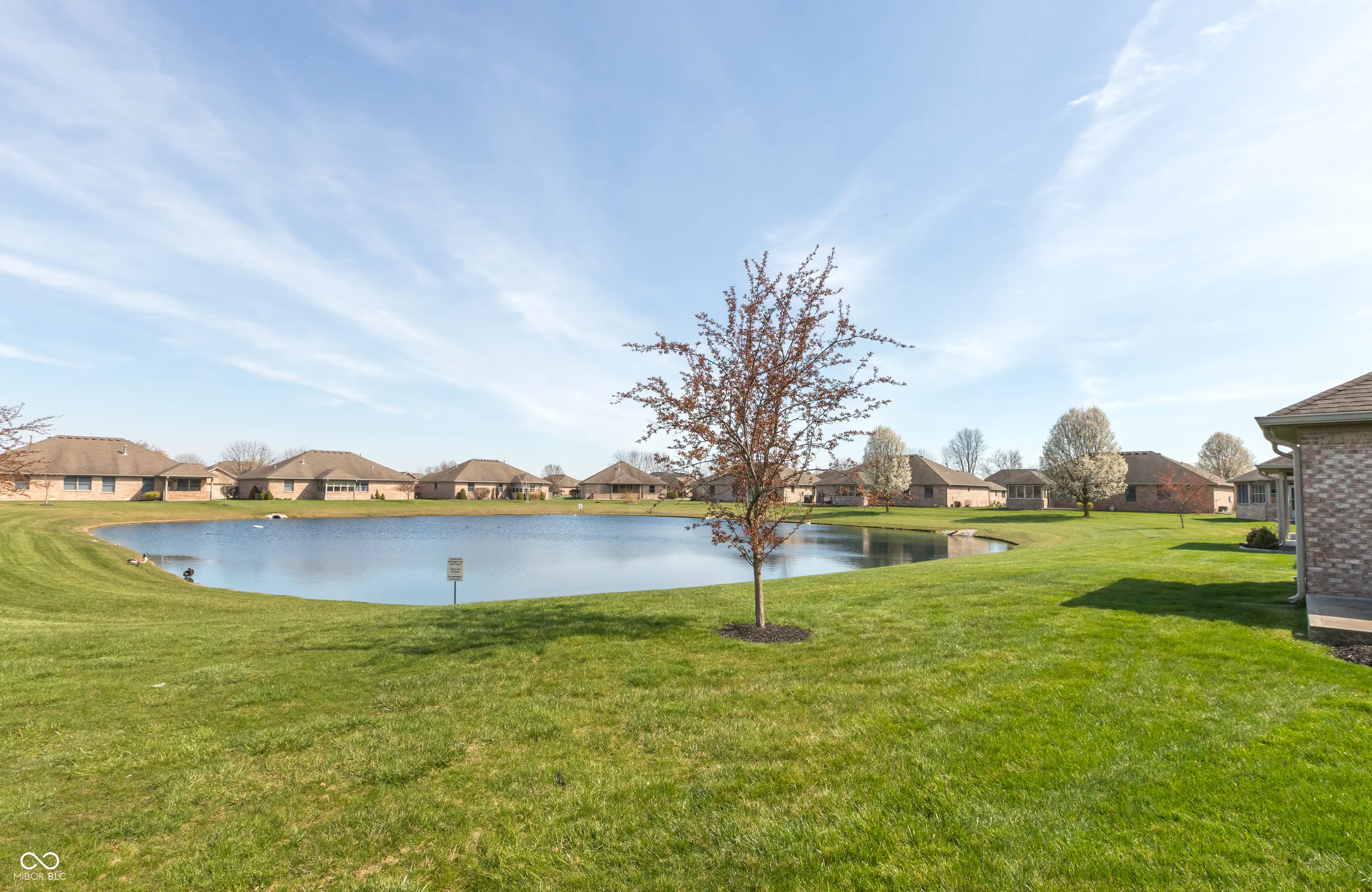 MOTIVATED SELLER willing to pay nghd transfer fee &/or 1st Quarter dues to SIMPLIFY YOUR LIFE in this CUSTOM, FREE-STANDING ALL-BRICK 3 BDRM, 2 BA RANCH CONDO w/SUNROOM, PATIO & Fin 2 Car Gar in Popular Nghd on SE edge of Bburg OVERLOOKING a POND so NO NEIGHBORS BEHIND. POPULAR Neighborhood & floorplan w/HUGE Great Rm featuring Vltd clgs & OPEN CONCEPT to DINING, KITCHEN & SUNROOM w/sliding glass doors leading to the back PATIO. Enjoy the MORNING SUN glistening off the POND & shining through all the windows in the back of the home! QUALITY BUILT & WELL MAINTAINED w/Andersen windows, stained wdwk & custom details. Master bath has step in Shower. Hall Bath has GARDEN TUB/SHOWER combo. Newer HVAC (2020) Water Heater (2022) plus Appliances & water softener included! Plenty of STORAGE in Hall Closet, kitchen pantry & Primary WI-Closet! Beautiful Curb Appeal! Come see! MOVE-IN READY & LIVE IN LUXURY…. EVERY DAY! NOTE: couple of pictures are virtually staged.