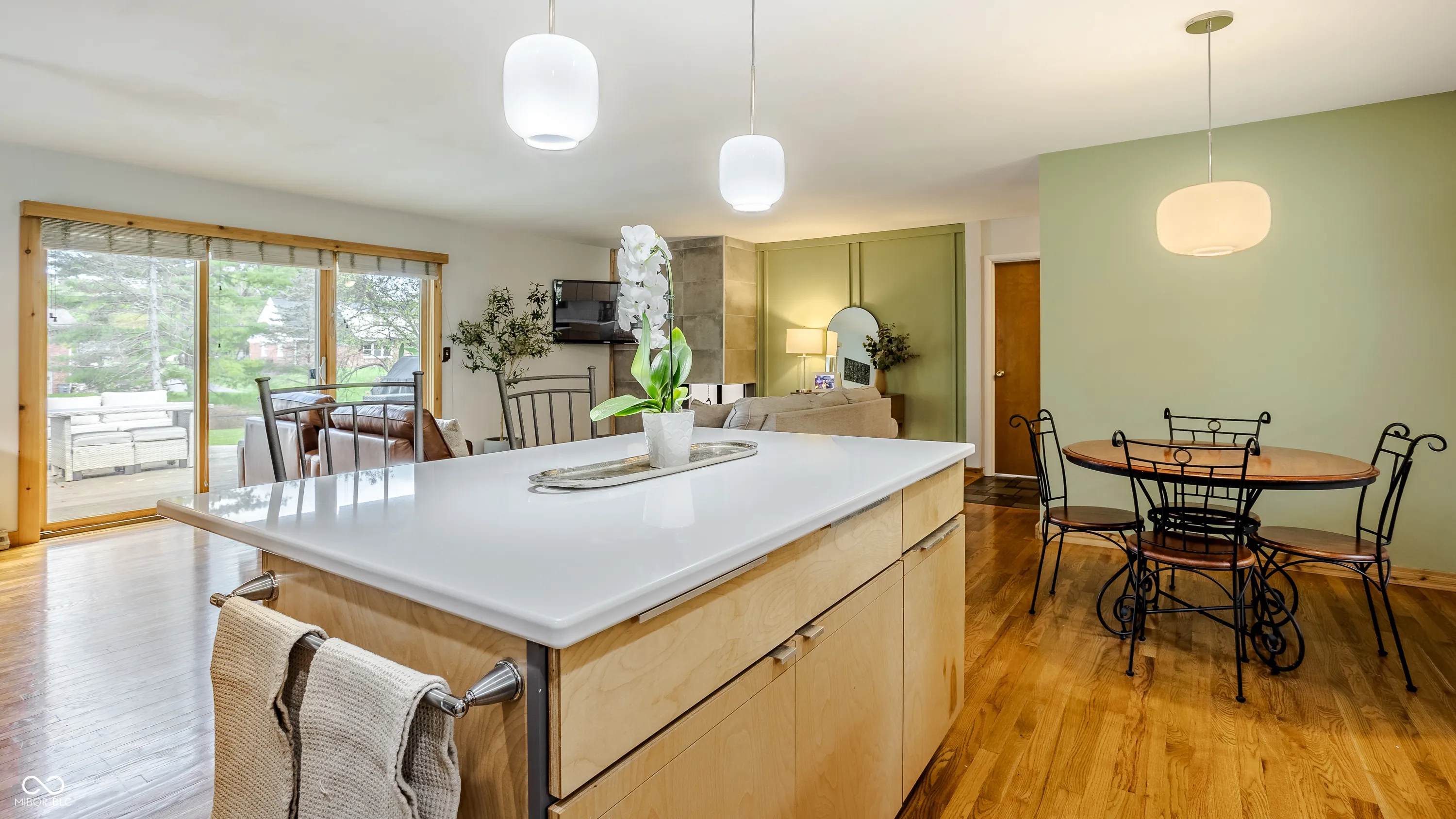 Beautifully updated, multi-level home featuring a large, fully fenced backyard with mature trees in a desirable and convenient Washington Twp location. The heart of the home is the remodeled, open-concept kitchen which flows seamlessly into the living and dining areas, perfect for hosting gatherings. A see-through corner fireplace warms the space, which also features hardwood flooring and sliding glass doors to the deck for al fresco dining and entertaining. A few steps down from the main level, a spacious family/rec rm lends itself to movie nights and family fun. Sliding glass doors lead to a glass-enclosed porch overlooking the tree-lined setting. Hardwood flooring continues to the upper level, which hosts three bedrooms including the primary suite with updated spa-like bath, generous walk-in closet, laundry closet, and sitting room ideal for a home office. The unfinished basement, accessible from the garage, offers a 2nd laundry room and abundant storage space.