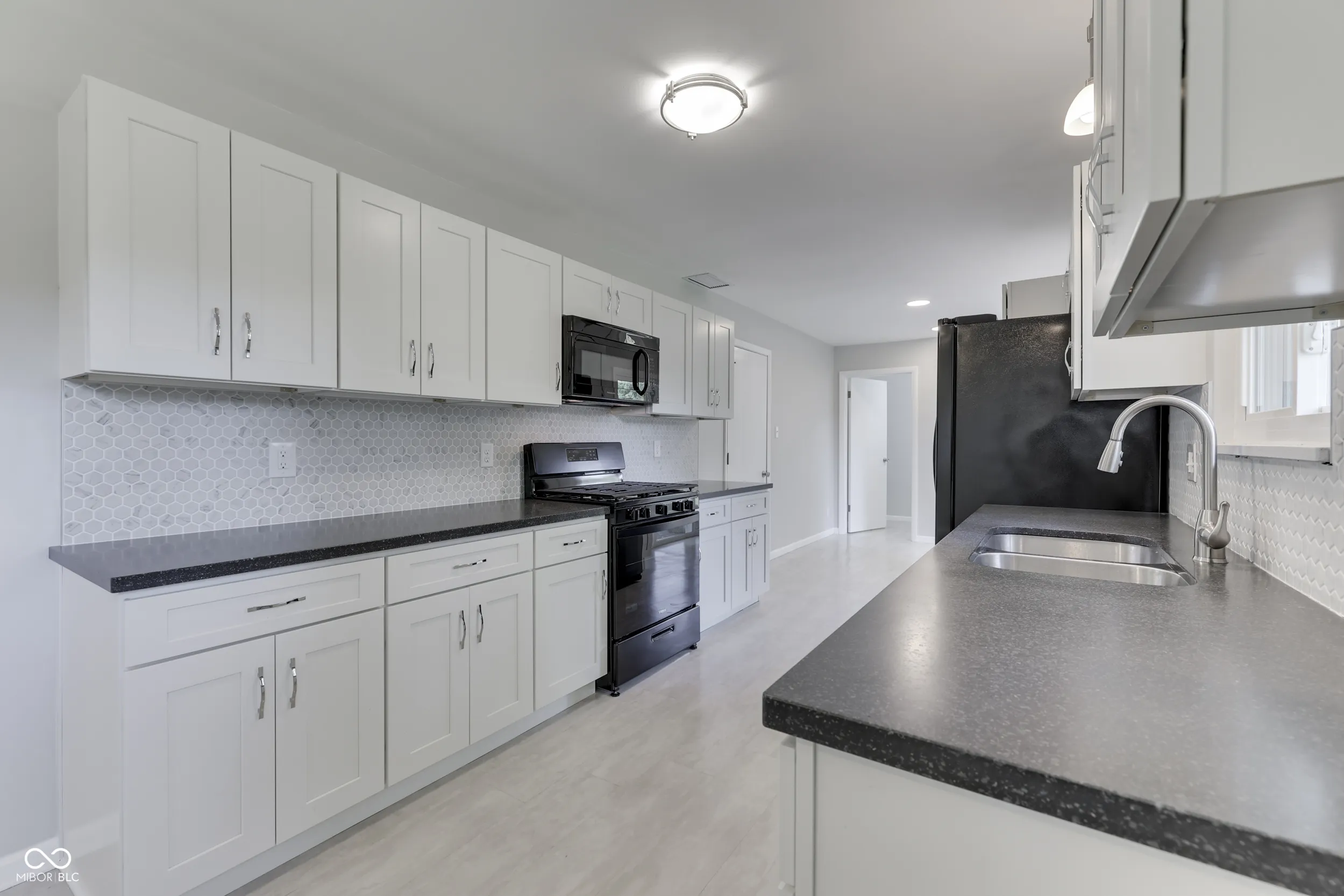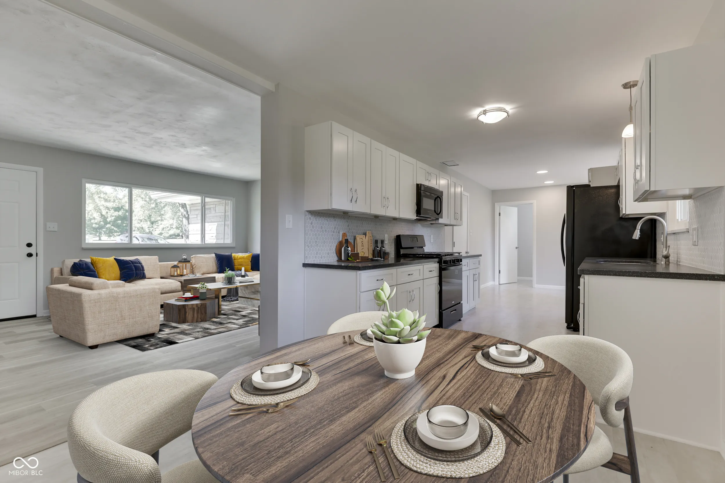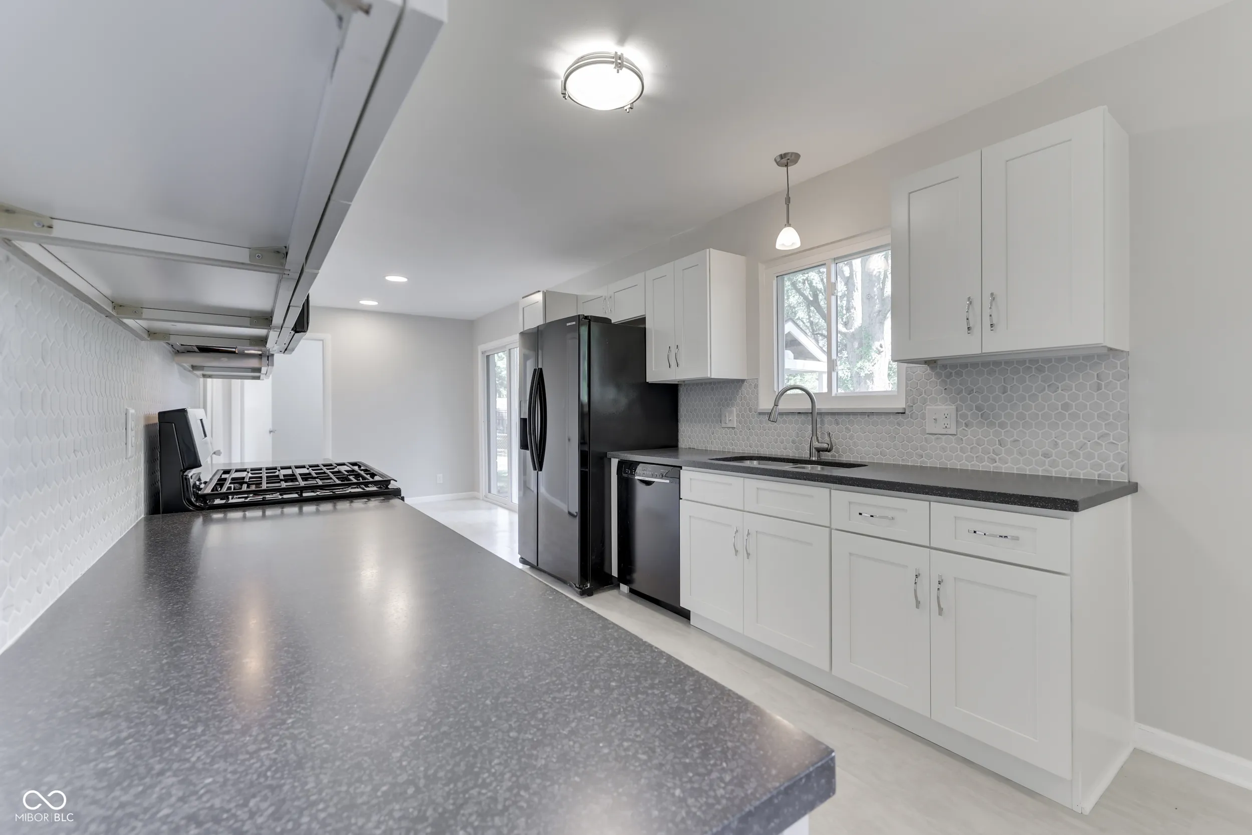 Welcome to this beautifully updated 1960 stone ranch! Boasting a large range of modern upgrades! This home features a brand-new eat in kitchen with updated cabinetry, solid surface countertops, and gorgeous hex backsplash. You will find an inviting layout bright with lots of natural light, new flooring throughout, fresh paint, with stylish trim and accents. There is a dining room as well as a flex space perfect for an additional seating area or desk. The laundry has its own room conveniently located off of the kitchen. The bathroom has been fully renovated for a contemporary feel. A new patio door leads to a spacious, fully fenced backyard, perfect for outdoor entertaining. With these updates already in place, this home is move-in ready, offering both comfort and potential for your personal touch! Perfect starter home with room to grow, located close to all kinds of amenities. Seller has done lots of upgrades and is listing it “As is”. Virtual staged photos are available for the living room and eat in kitchen.