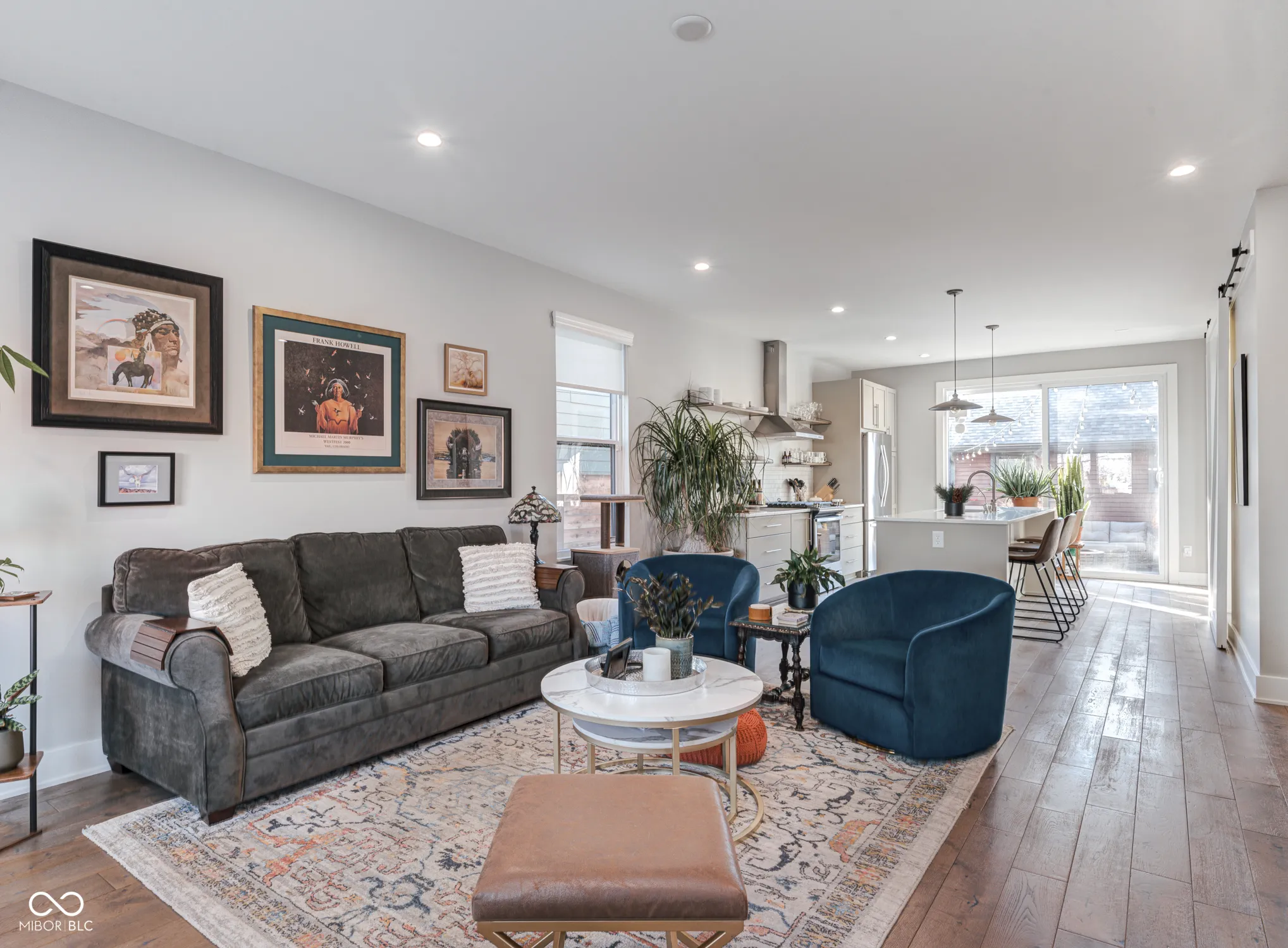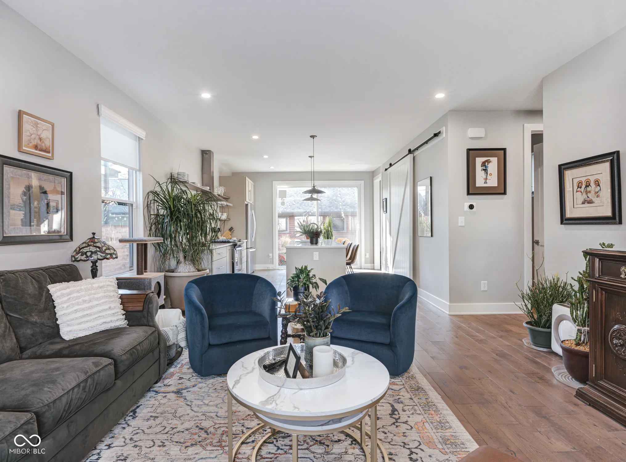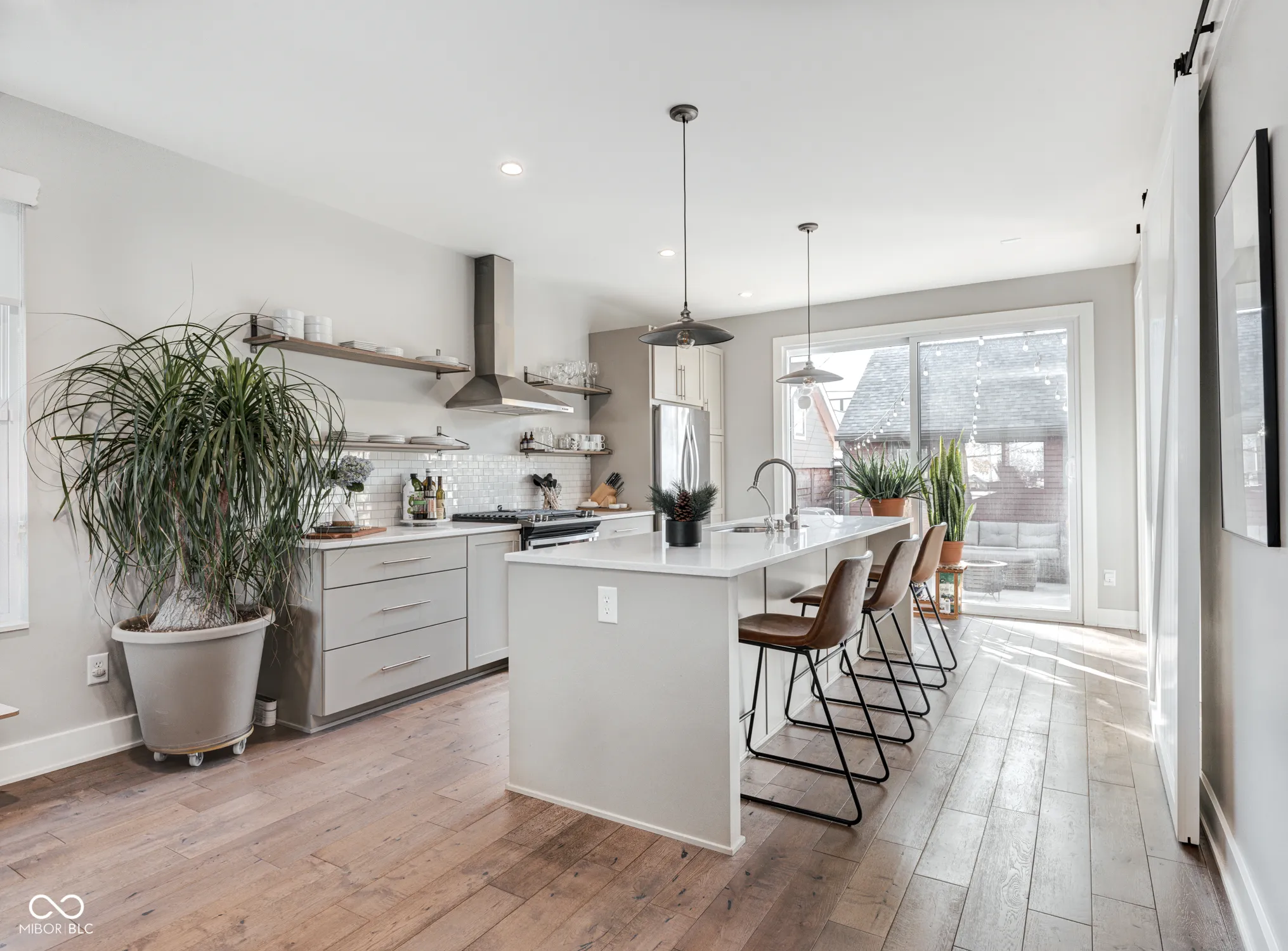 Newer Compendium Group Construction in Windsor Park – Blocks to Mass Ave, the Bottleworks District and the Factory Arts Building | Live at the convergence of three of the most popular pedestrian and bike trails in Indianapolis: the world-renowned Indianapolis Cultural Trail, Pogues Run, and the Monon. The open concept first floor boasts tall ceilings and generous windows, a kitchen with oversized island, warm cabinetry, gas range, a spacious pantry and large sliding doors to the back patio, a stunning half bath and mudroom. Upstairs, the bedrooms offer vaulted ceilings, walk-in closets (California Closet system in primary) and attached baths; laundry on second level, too. The basement boasts great storage, a family room/workout space and another bedroom with egress and attached bath. Out back, the upgraded patio and backyard with mature trees is perfect for relaxing and entertaining. The two-car garage is oversized and perfect for additional storage. Located across the street is the Factory Arts District featuring 8th Day Distilling, Centerpoint Brewing, Day Won Fitness, artist studios and more! Staying with the home: Refrigerator, Dishwasher, Gas Oven Range and Hood, Washer, Dryer, Microwave, Ring Cameras x3, Ring Doorbell, Electronic Locks (front and back door), Security System w/ Glass Break Sensors, Water Softener & Reverse Osmosis Filter for Kitchen Sink