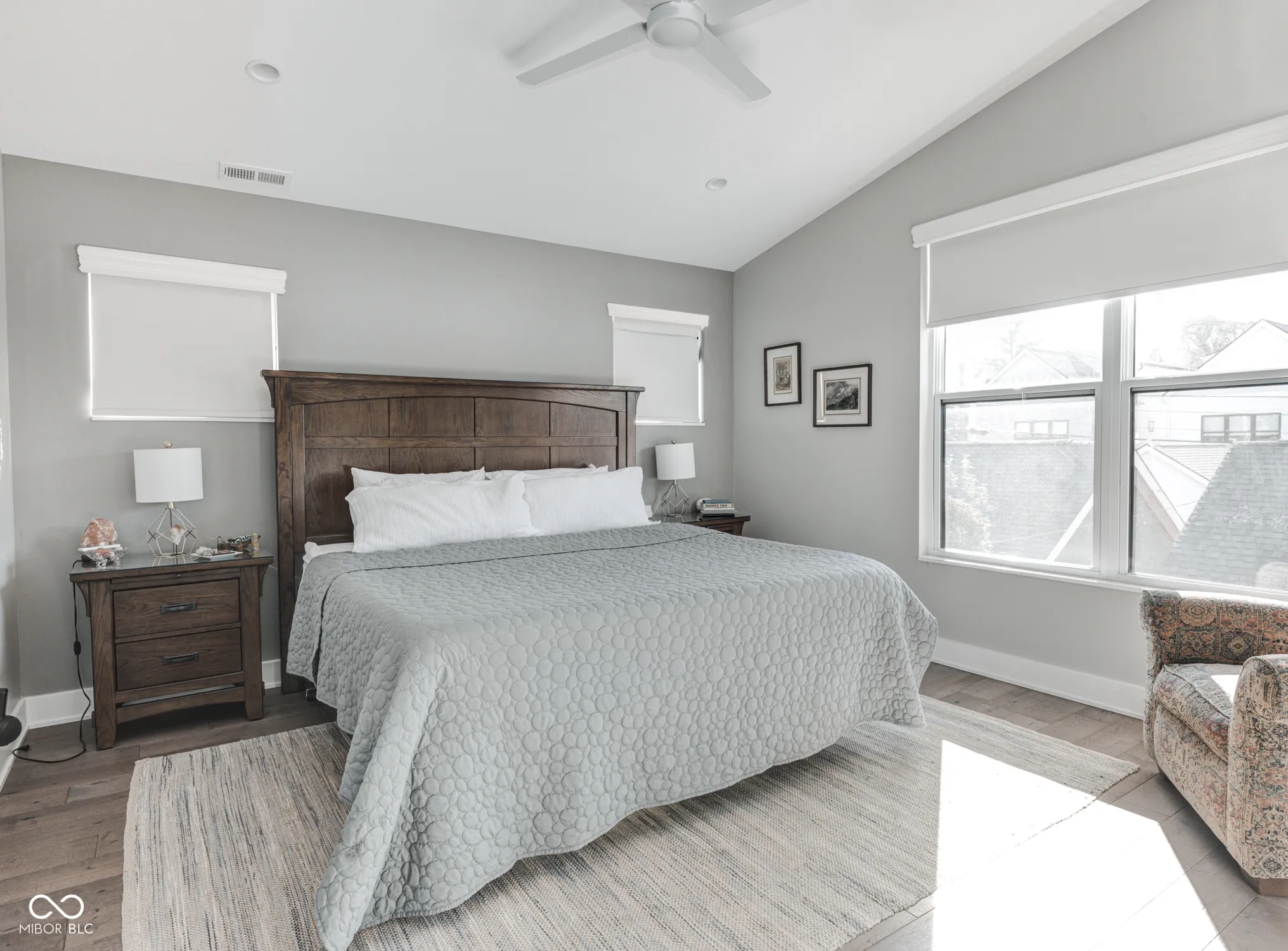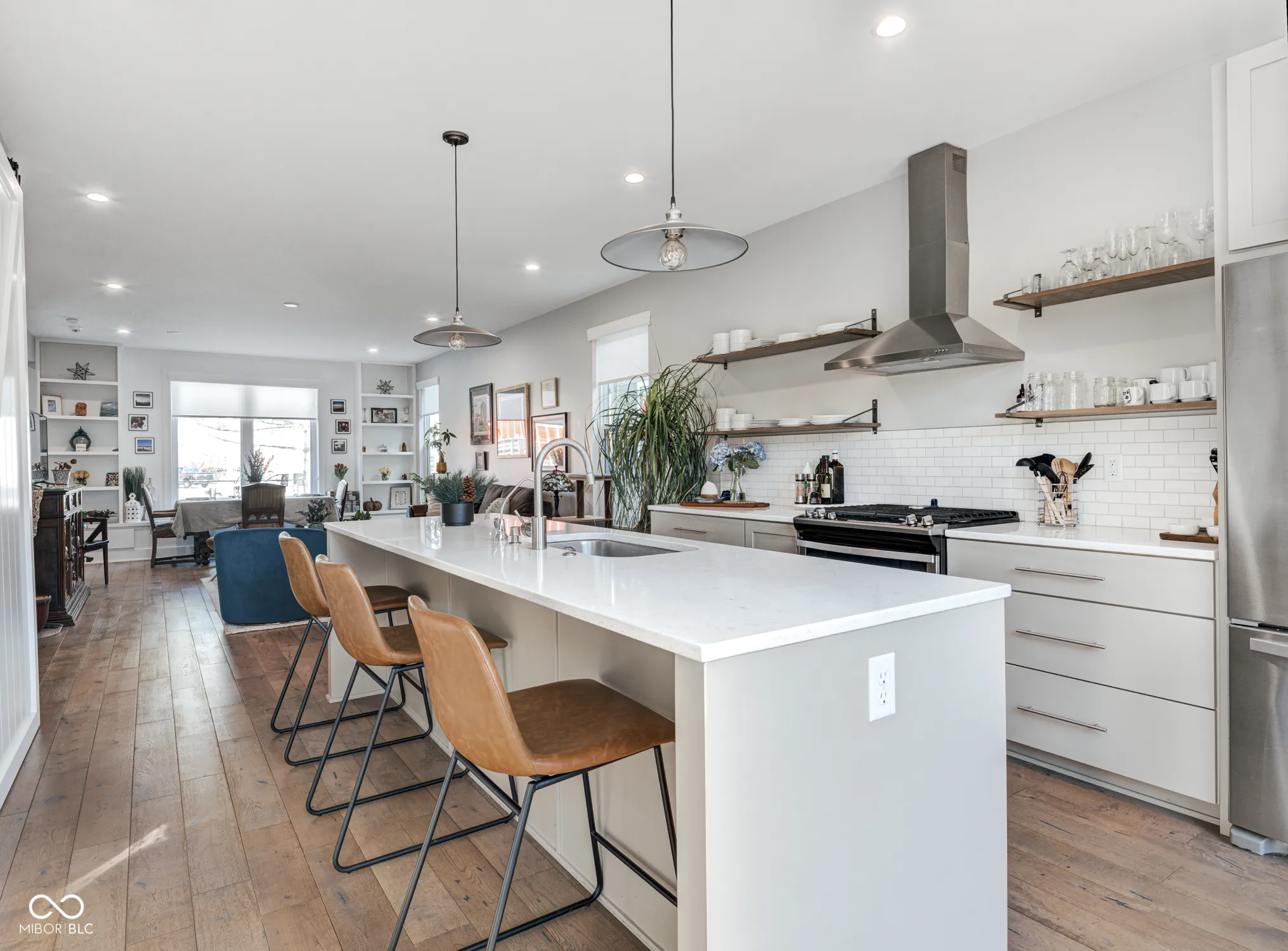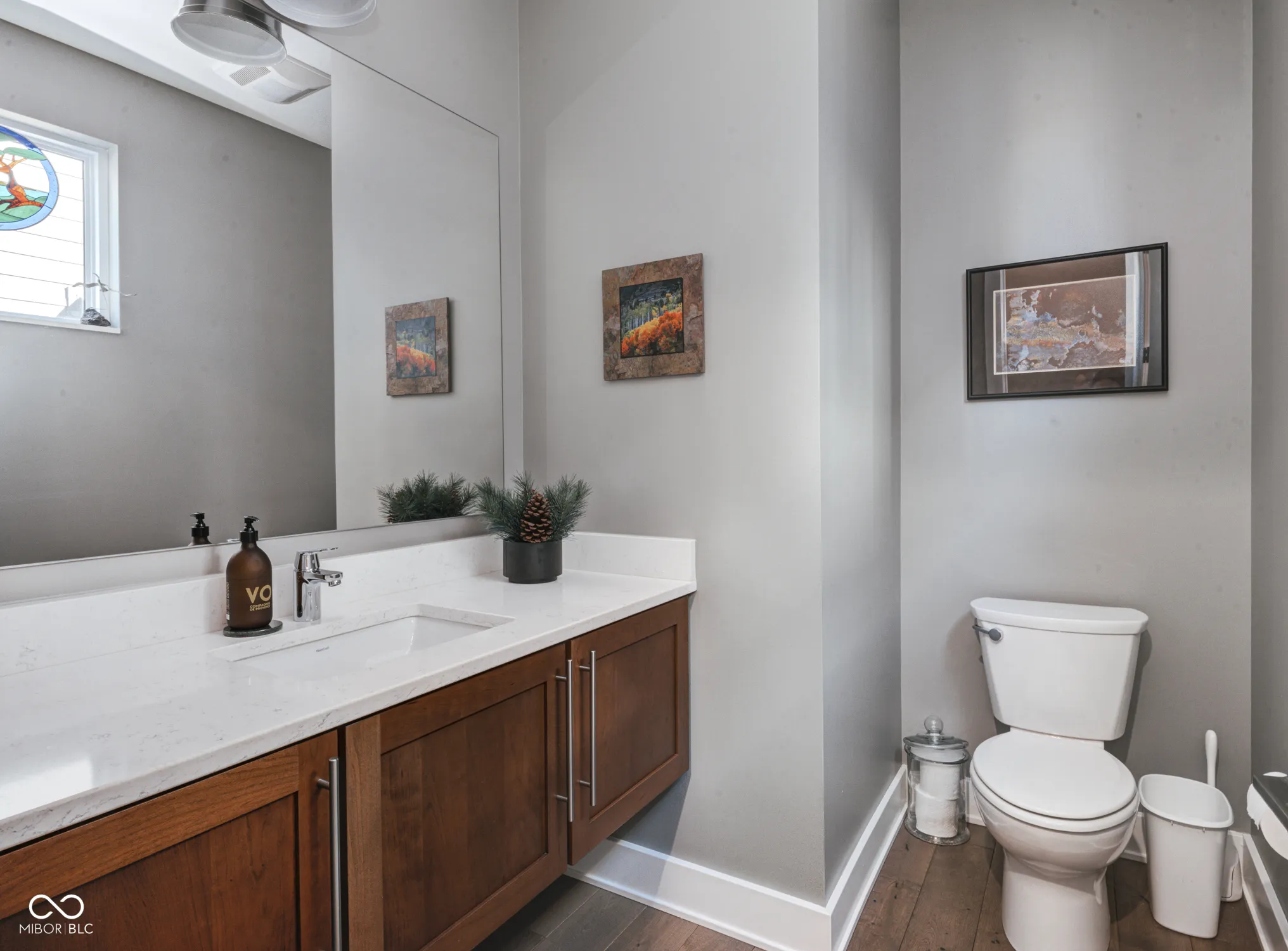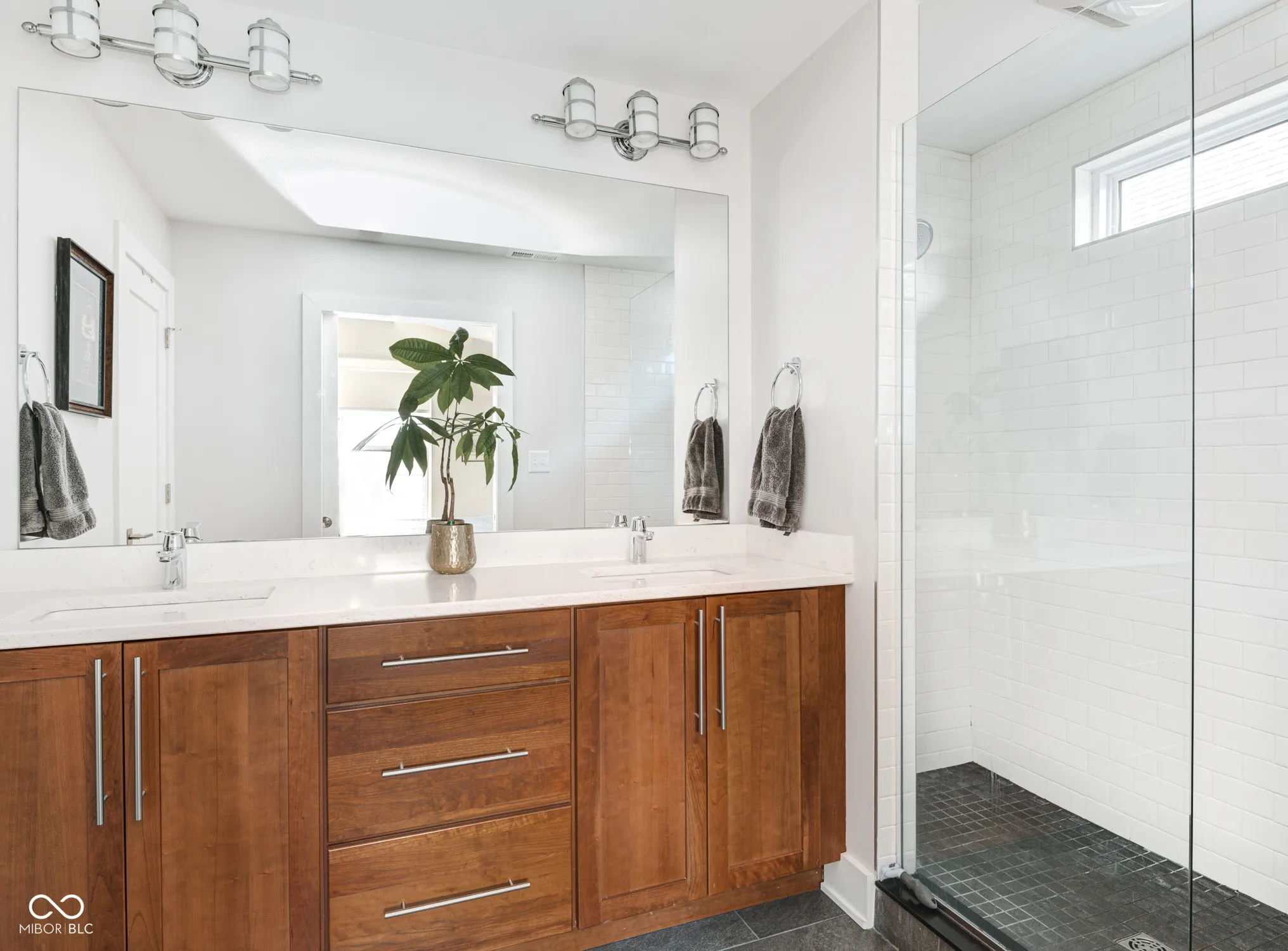 Newer Compendium Group Construction in Windsor Park – Blocks to Mass Ave, the Bottleworks District and the Factory Arts Building | Live at the convergence of three of the most popular pedestrian and bike trails in Indianapolis: the world-renowned Indianapolis Cultural Trail, Pogues Run, and the Monon. The open concept first floor boasts tall ceilings and generous windows, a kitchen with oversized island, warm cabinetry, gas range, a spacious pantry and large sliding doors to the back patio, a stunning half bath and mudroom. Upstairs, the bedrooms offer vaulted ceilings, walk-in closets (California Closet system in primary) and attached baths; laundry on second level, too. The basement boasts great storage, a family room/workout space and another bedroom with egress and attached bath. Out back, the upgraded patio and backyard with mature trees is perfect for relaxing and entertaining. The two-car garage is oversized and perfect for additional storage. Located across the street is the Factory Arts District featuring 8th Day Distilling, Centerpoint Brewing, Day Won Fitness, artist studios and more! Staying with the home: Refrigerator, Dishwasher, Gas Oven Range and Hood, Washer, Dryer, Microwave, Ring Cameras x3, Ring Doorbell, Electronic Locks (front and back door), Security System w/ Glass Break Sensors, Water Softener & Reverse Osmosis Filter for Kitchen Sink