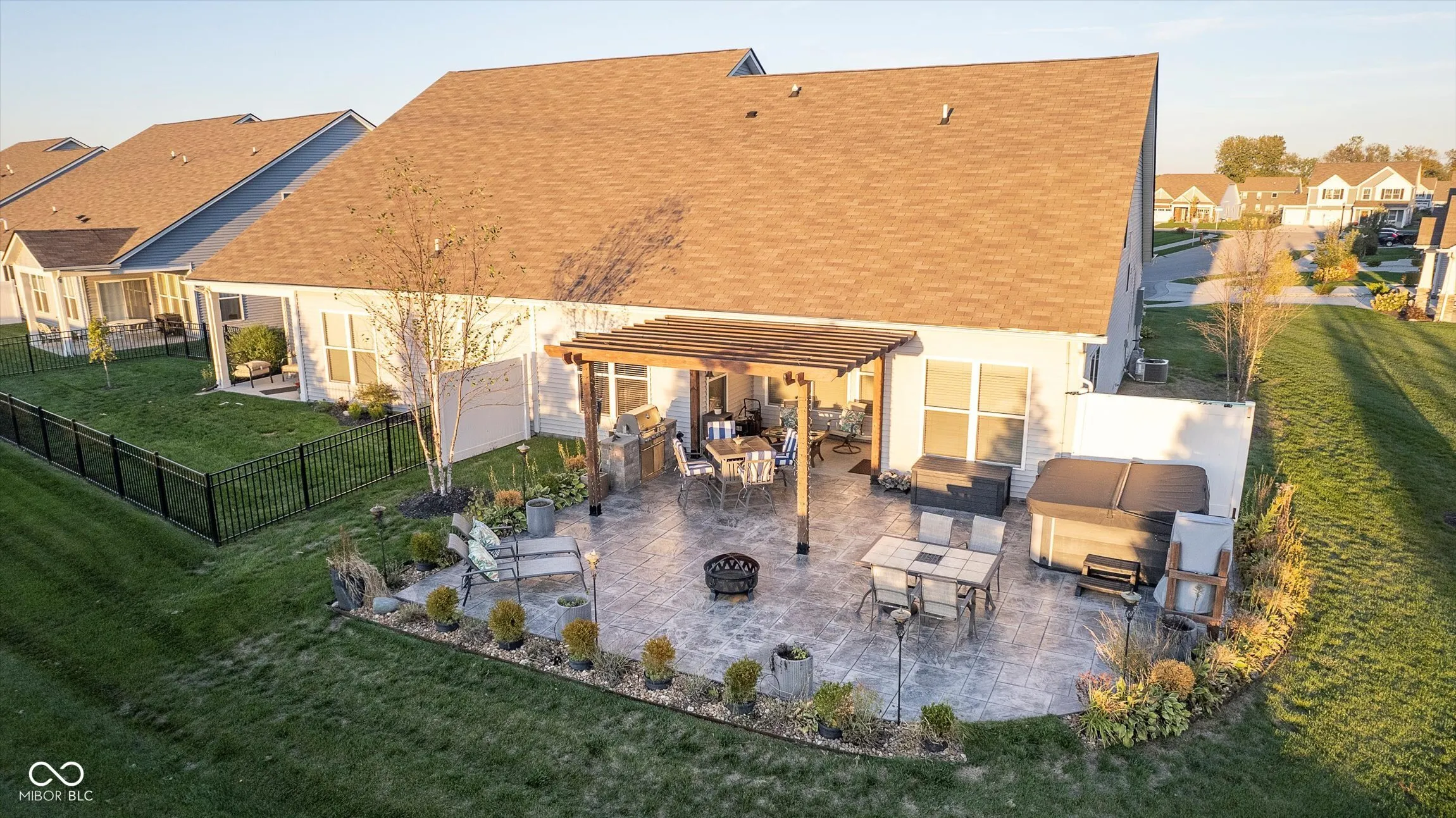 Newer ranch patio home with open floor plan and stunning outdoor living space! Main floor primary bedroom with spacious bath and closet plus additional main floor bedroom and full bath! Kitchen with eat in area is ready for home cooked meals or family time gathering around the large island! Abundant closet/storage space on main level! Upstairs features a large bonus room with full wet bar (wine fridge, ice maker, humidor, kegerator with lines run, dishwasher & full fridge), perfect gathering place to host friends and family for a holiday or Sunday football game! Step outside to your private backyard oasis with stamped concrete patio, hot tub, pergola, professional landscaping and spacious outdoor dining area! Rain Bird irrigation system with bonus flower pot drip irrigation! All furnishings are available to stay with the home! Drive your golf cart to dinner, ice cream or Morse Reservoir! Access to Tamarack neighborhood pool & playground!