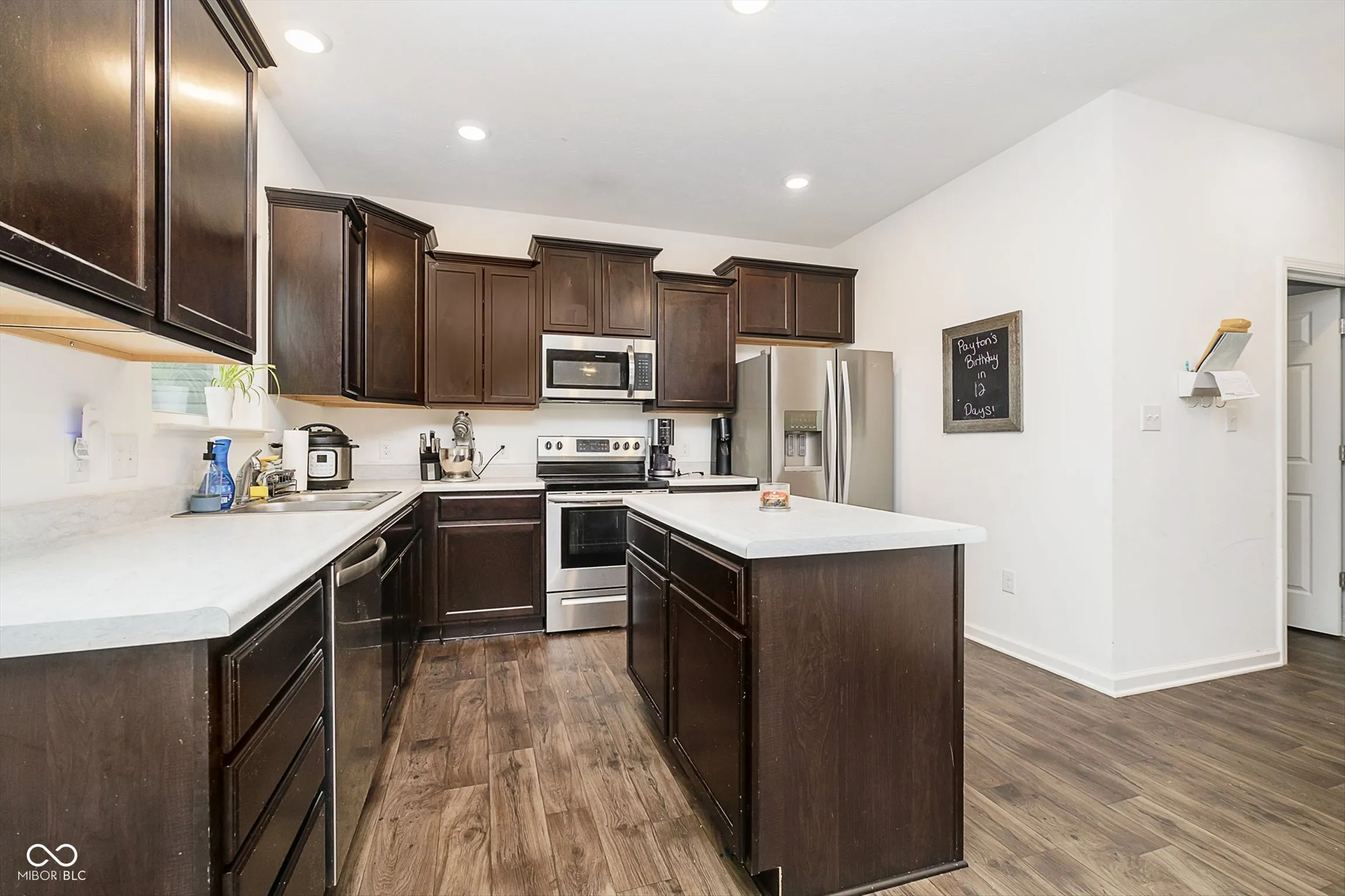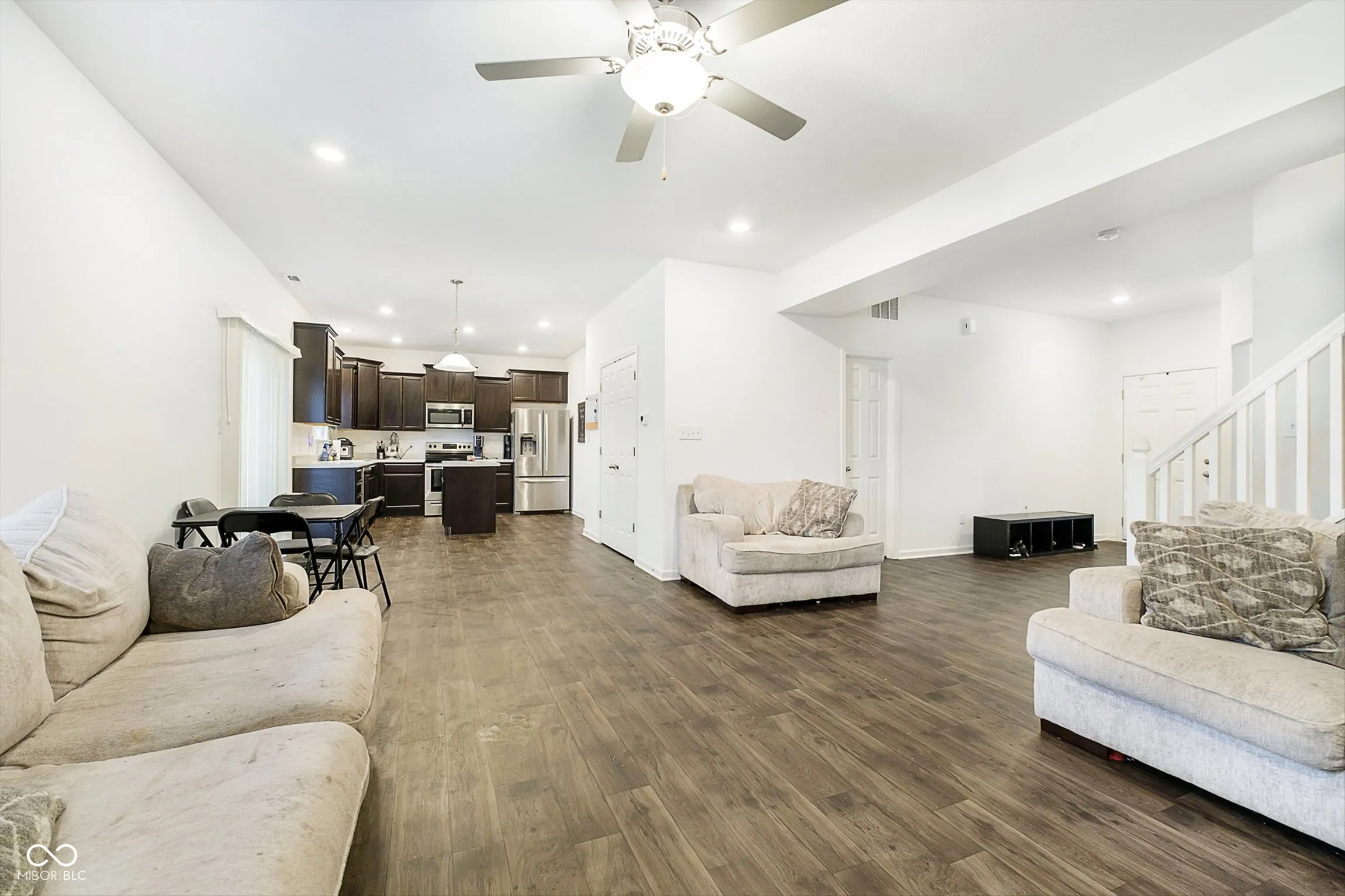 Discover this beautiful 4-bedroom, 2.5-bathroom home, perfectly situated in a welcoming Indianapolis neighborhood. This spacious 2-story residence offers a functional and flexible layout, starting with a versatile room just off the entryway, ideal as a home office, playroom, or easily converted into a fifth bedroom. The main level features stylish vinyl plank flooring, giving the space a warm, modern appeal. The heart of the home is the kitchen, equipped with sleek stainless steel appliances and rich dark wood cabinetry, making it both practical and visually appealing. For convenience, a half bath is also located on this floor. Upstairs, you’ll find a generously sized loft area that offers additional living space, perfect for a media room, study, or recreation area. The upper level also includes three well-proportioned bedrooms, a shared hall bath, and the expansive primary suite. The primary bedroom is a true retreat with its elegant tray ceiling and fan-light combo, leading to a large en suite bathroom featuring a walk-in shower, double vanity with dark wood cabinets, and an oversized walk-in closet. With a spacious 2-car garage and plenty of room for both everyday living and entertaining, this home provides comfort, style, and versatility for today’s homeowner.