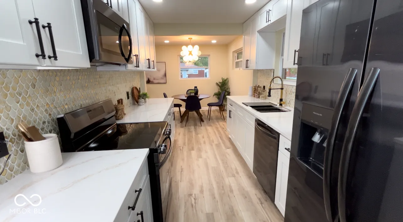 This Home is a MUST SEE!! It is a Completely renovated brick ranch with a full basement around the corner from the new Eskenazi Health, Thomas & Arlene Grande Campus. This home is a Great Investment Opportunity as the area is undergoing revitalization. This cozy home sits on a quiet street with a spacious well-kept yard, fenced in backyard and just minutes from the Purple Line bus route . This location is very accessible to interstates and other main corridors in Indianapolis. The Home is vacant and ready for immediate occupancy! The home includes: New 1-car garage, a 2-car carport and new gutters. New Electrical 200 amp breaker box installed with new wiring throughout home. All New Plumbing throughout, New Furnace, New R-15 insulation, and a 3-year termite defense warranty. All new fixtures and hardware throughout the home with lots of nature lighting, an Open Floorplan with ample counter space for gatherings. New Luxury Vinyl Plank, and Energy efficient LED Lighting throughout home. ALL NEW KITCHEN** New Shaker Cabinets with tiled backsplash, New Granite Countertops All new black Stainless-Steel appliances… ALL NEW BATHROOM** with tiled bath tub. Lifetime Warranty** on Basement structure and waterproofing comes with New Sump Pump with Battery back-up system. Basement is framed and with a washer and dryer connections.