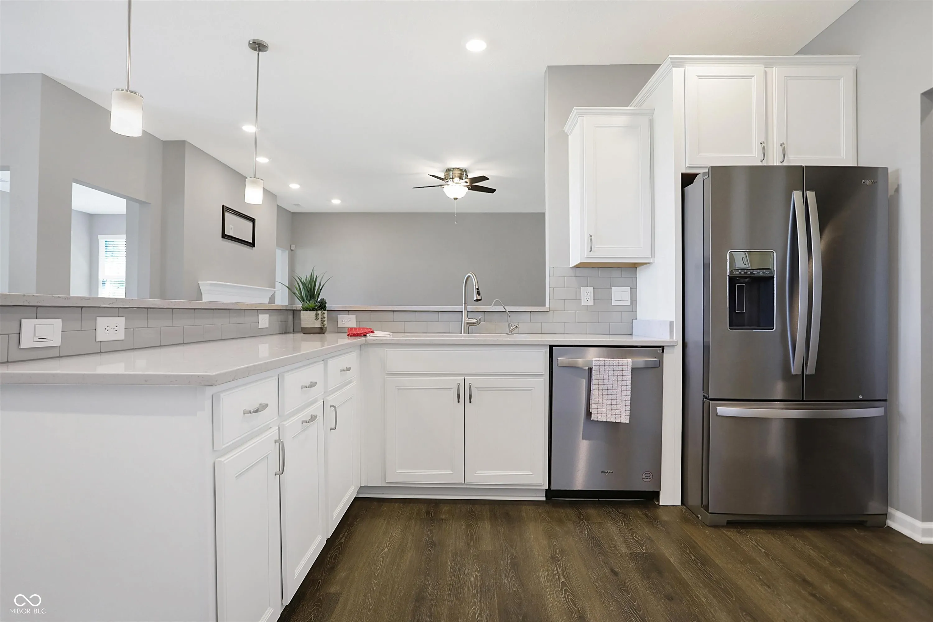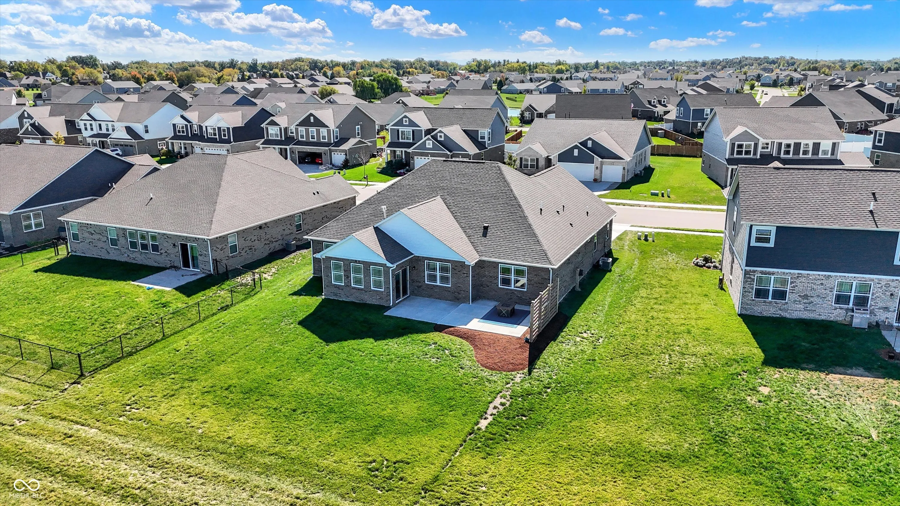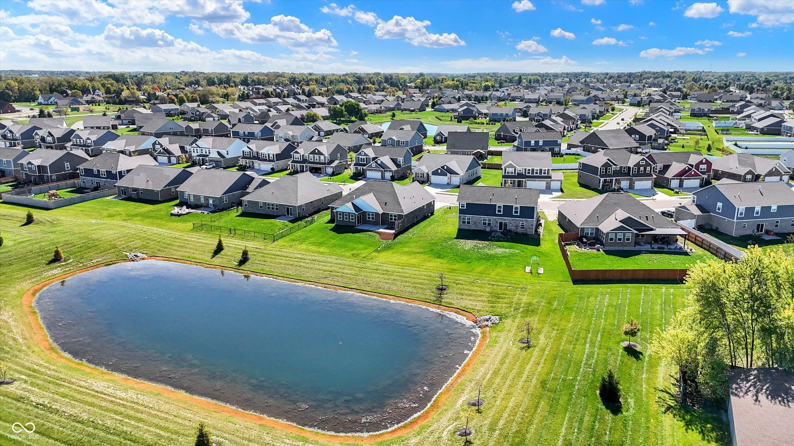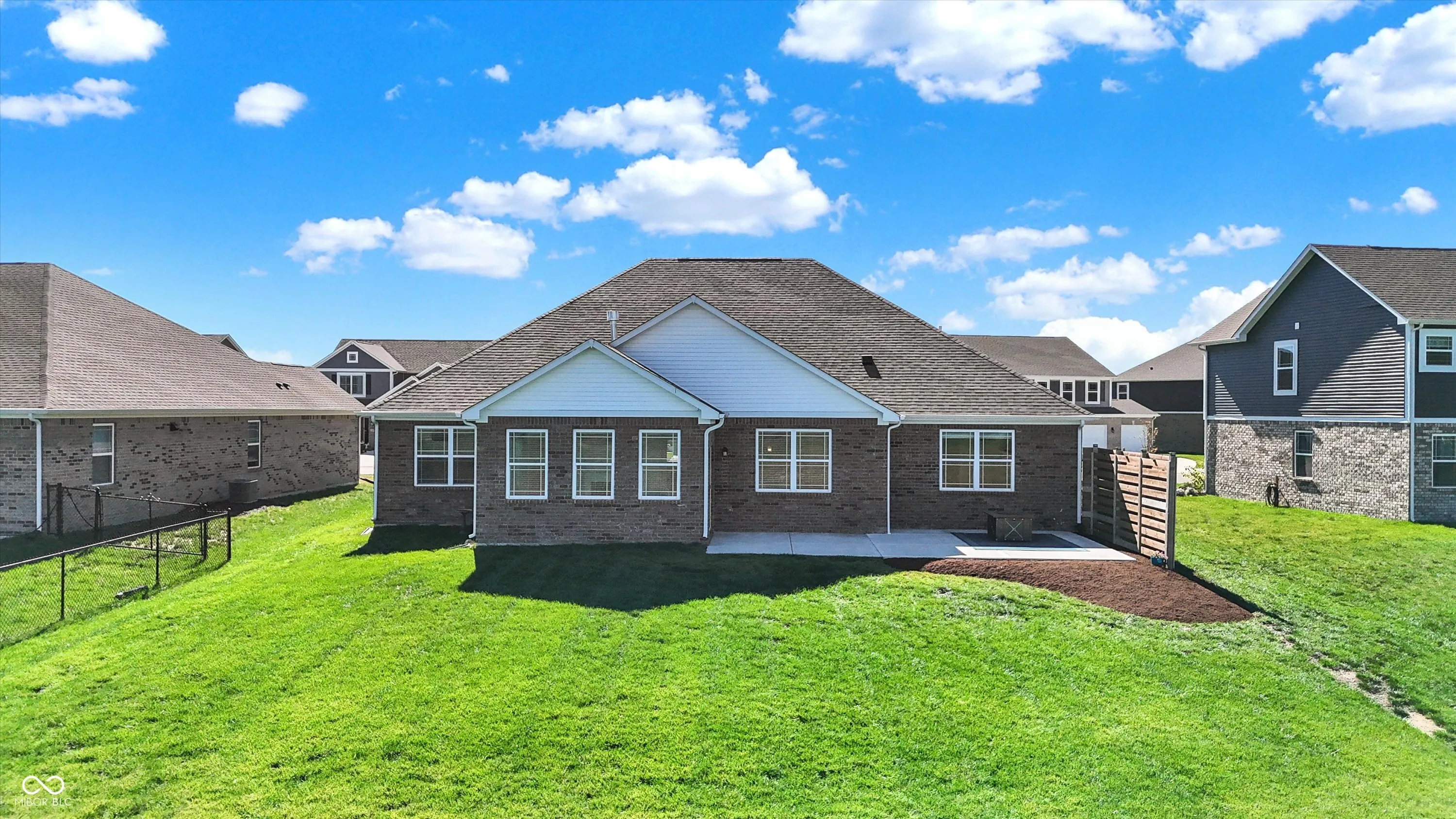 Beautiful like new 2 year old brick ranch with serene pond view and 3-car garage. Enjoy the pond view from the Primary bedroom, 2nd bedroom, Breakfast room, Sunroom with fireplace, and gourmet kitchen featuring built-in double oven, gas cooktop, convection microwave/hood, French door refrigerator, dishwasher, and reverse osmosis faucet at the sink. Additional cabinetry was added after purchase to provide desk space in Kitchen/Breakfast area with file drawer and more cabinetry for storage, as well as cabinetry added in laundry room. Enjoy the view of the pond on the added 28’x16′ rear patio along with custom cedar privacy panel with lights, and the just added patio landscaped area awaiting your plantings. Aqua Systems on-demand water softener. Two inch faux wood blinds on all windows. Primary bath features large double sink vanity & large tiled walk-in shower, as well as large walk-in closet. Bedrooms 2 & 3 also have walk-in closets. Concrete driveway extended for 3rd bay garage. Peace of mind with security sensors on all windows & doors and integrated smoke & carbon monoxide detection, as well as remotely controlled myQ garage doors, video doorbell, and automated door lock. Ceiling fans with lights added in Primary bedroom and Great room. Home currently connected to AT&T fiber for internet.