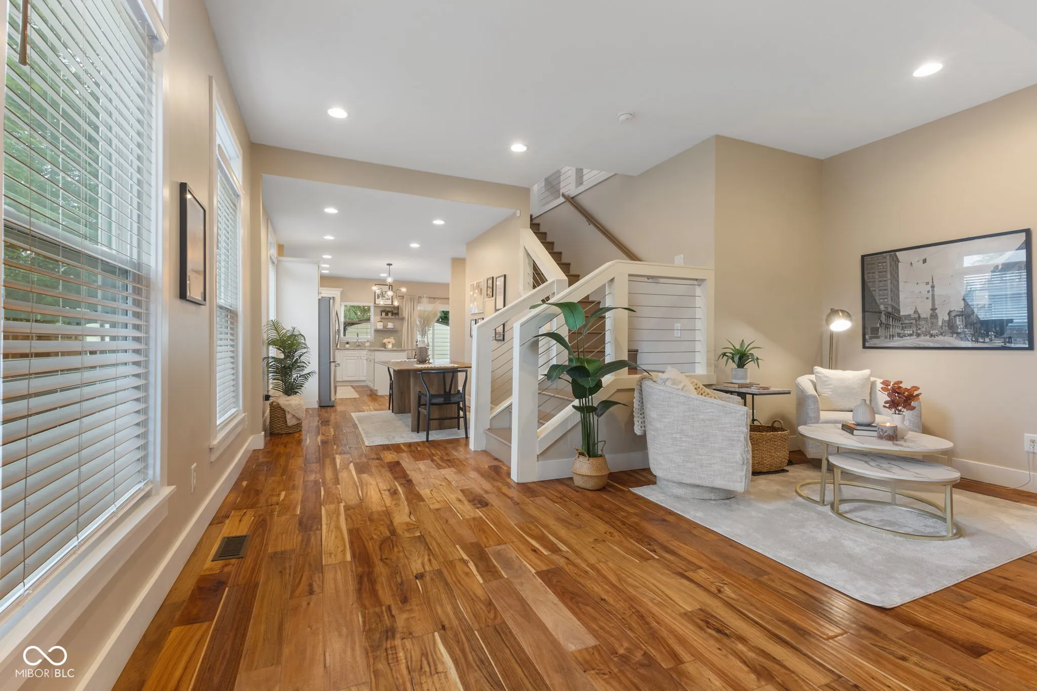 Welcome to this delightful newly remodeled home, perfectly situated just a short 10-minute walk from the energetic Fountain Square and its lively Shelby Street. Located in the sought-after Bates-Hendricks neighborhood, this traditional American home is a blend of timeless charm and modern convenience. As you step inside, you’ll be greeted by an inviting atmosphere with beautiful hardwood floors that flow seamlessly throughout the main floor. The heart of the home is the kitchen, featuring beautiful cabinetry, generous counter space, and a cozy island with a breakfast bar-ideal for casual dining or morning coffee. The built-in wine and coffee bar adds a touch of elegance, perfect for entertaining or a quiet night in. Outside, the spacious back deck is designed for fun and relaxation, providing a wonderful space for summer barbecues or enjoying a peaceful evening in your fenced backyard. Venture upstairs to discover a charming loft area that’s perfect for a small workspace or a cozy reading corner. The master bedroom is your private oasis, complete with a walk-in closet and a stylish bathroom suite that invites you to unwind. The upper level features carpeting, creating a warm and inviting retreat. This home offers not just a beautiful living space but also a prime location, allowing you to take advantage of all the vibrant amenities that Bates-Hendricks and Fountain Square have to offer. Don’t miss out on the opportunity to make this charming, updated home your own!