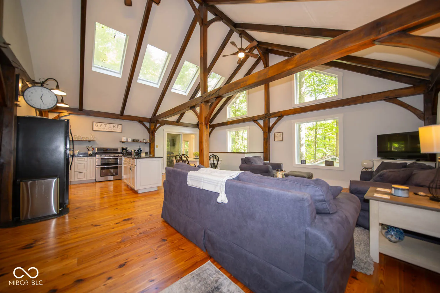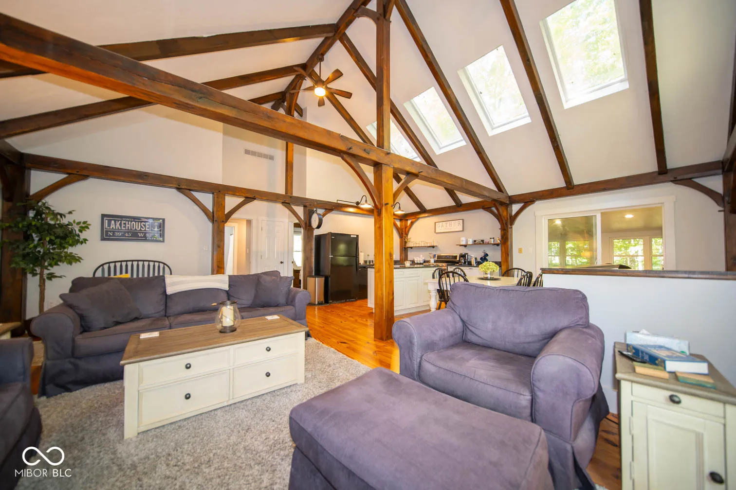 Turn-Key 4 Bedroom, 2 Full Bath, Walk-out Basement, Amish Built, locally harvested Timber Frame Home on Raccoon Lake! 49′ Long Seawall Built in 2022. Main floor has 6″ Pine Flooring (Milled Locally), NEW Metal Roof, New Interior and Exterior Paint, NEW Kitchen w/Custom Soft Close Kraftmaid Cabinets, Center Island, Quartz Countertops and Appliances (Gas Range, Double Over). NEW Bonus Room off the Main floor with a stunning view of the rear of the property. NEW Interior Trim (Oversized), Exterior Doors, Interior Doors. NEW Ejector Pit, All New Laminate Flooring in Carpeting, NEW Carport 30×16 with Enclosed Workshop, Covered Front Porch along the entire front exterior, NEW Firepit for Entertaining, All New LED Lighting thru-out the home. NEW Covered Rear Porch off of the Walk-Out Basement and All NEW decking and exterior walks. New Home Air Purifier. New Water Heater. Home has Geothermal Heat (Low Utilities $100 mth) 2nd Floor Bedroom has a loft with a queen mattress for additional lake guest. Hollingsburg Boat Ramp & Parking Lot is right out the front door makes for Easy Access to the Lake and Plenty of Parking. This home is a fantastic Year-Round Home, Generational Property or an Investment into being a Manager of your own Lake Vacation Property. There is always something going on in the Covered Bridge Capital of the World. Minutes from the State Park, Turkey Run, Shades, Sugar Creek, Rockville, Mansfield….Endless Memories!