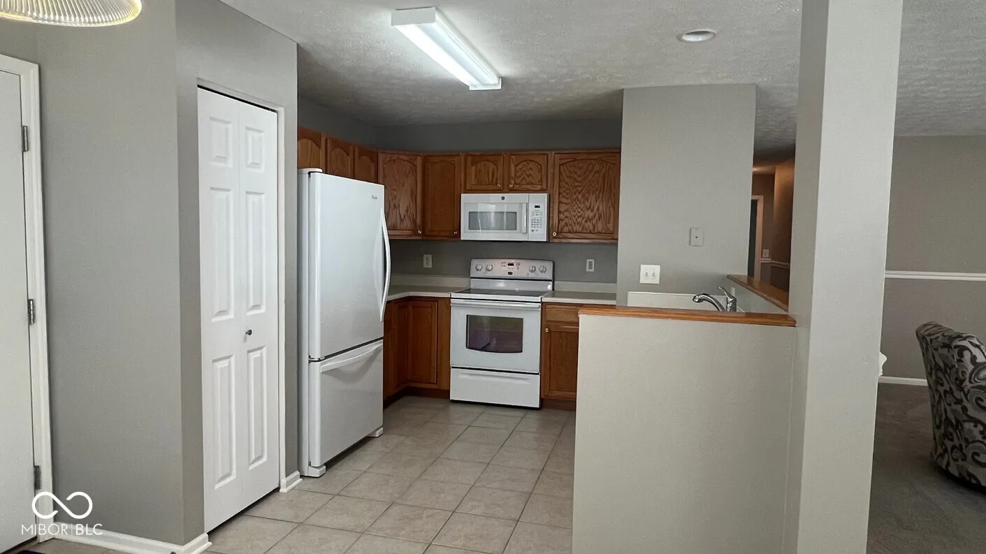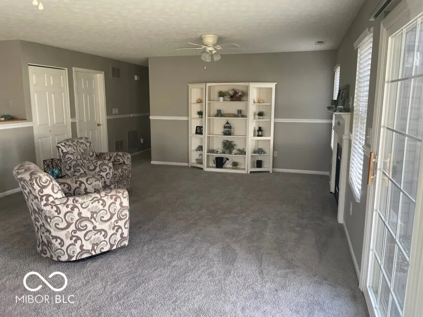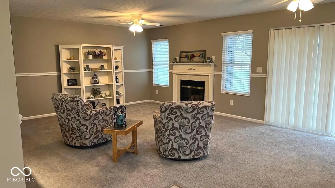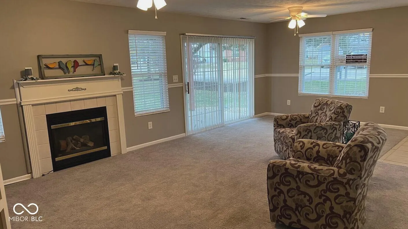 Welcome Home! The freshly painted and immaculate first floor two-bedroom/two-bath condo in the heart of Westfield is waiting for you! This corner end unit that overlooks your maintenance free yard. Newer windows provide an inviting atmosphere of natural light. The open layout offers a large great room with fireplace, a bright sunny kitchen with pantry, where all appliances stay. A huge primary suite with a large walk-in closet. Additional storage is available in the laundry room. The covered porch opens to a large yard with mature trees offering some privacy. The attached two car garage opens into the kitchen for easy access. The included appliances, newer furnace, and water heater contribute to the practical appeal of this buyer friendly home. The recently replaced rooftops, and exteriors for the entire development make Mapleton an attractive neighborhood. The location is perfect for bike rides on the Midland Trail, walks to food and shopping, and commutes on major highways.