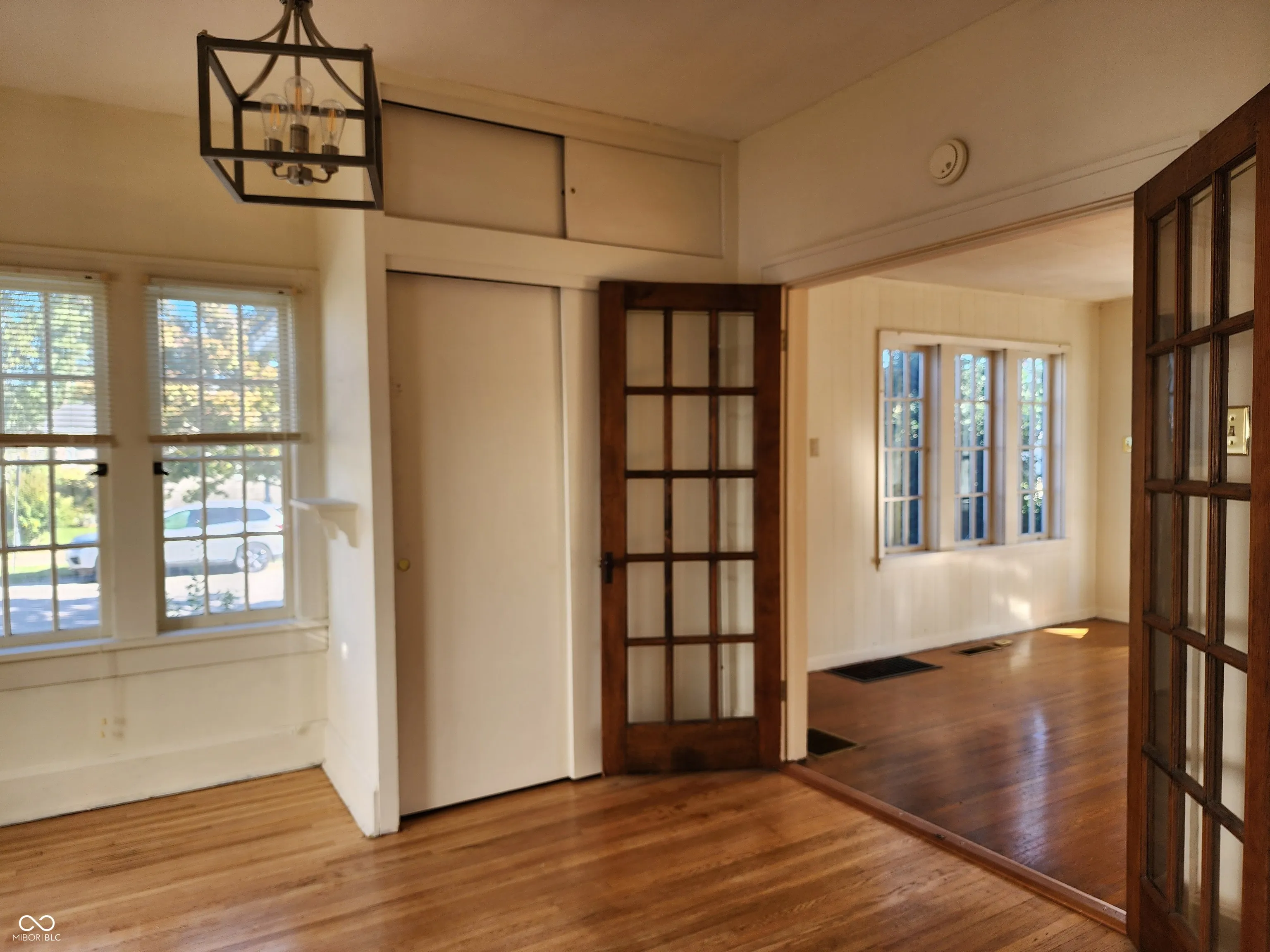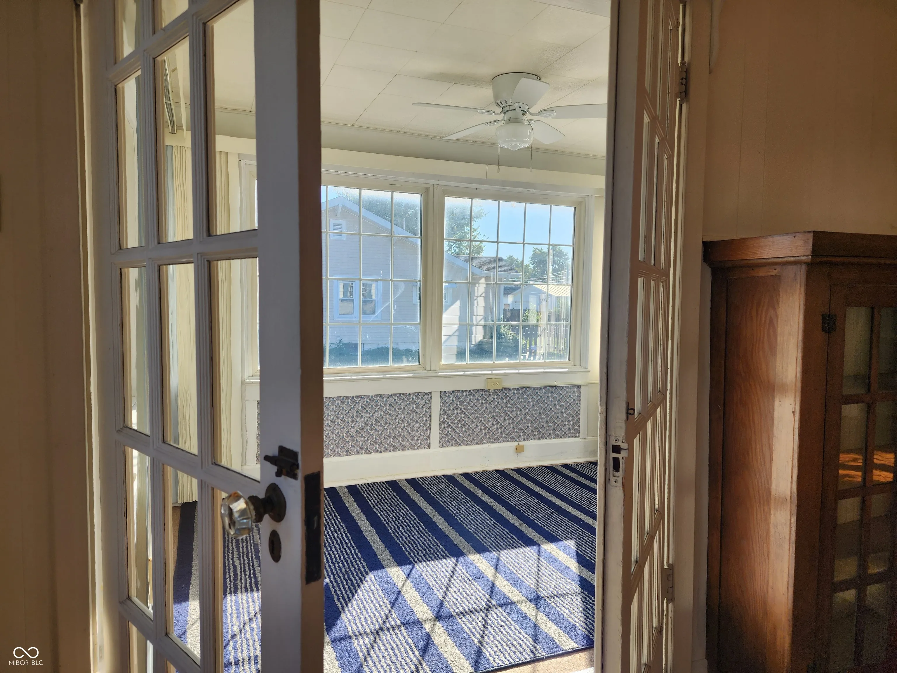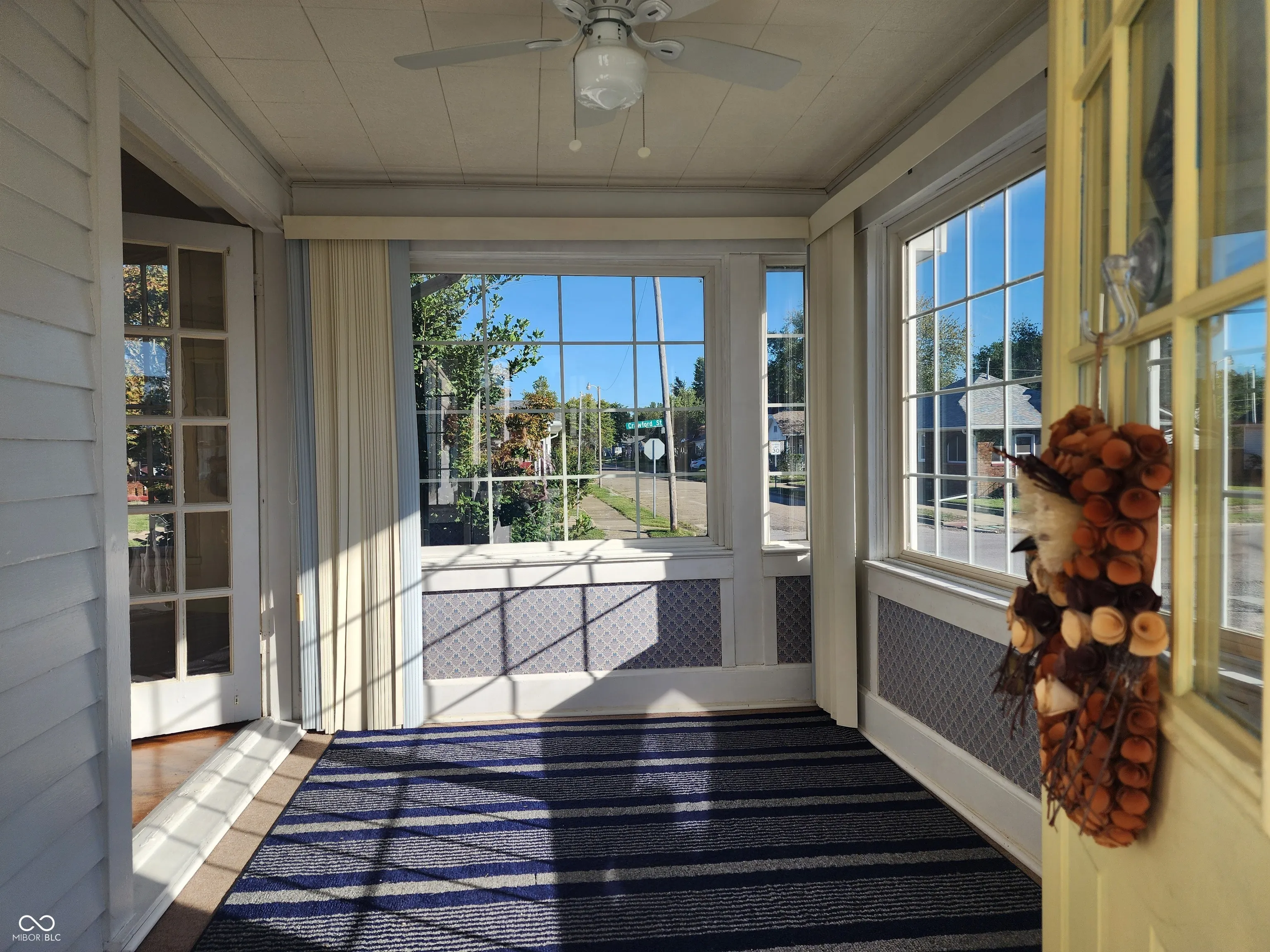 Welcome to this lovely cottage, full of light and good vibes. Such a beautiful place to live with hardwood floors, vintage cabinets in a large kitchen, multiple french doors and a super inviting sunroom. Bathroom has walk-in bathtub. The basement is dry and offers lots more work or craft space. There’s an adorable fenced backyard and a 2 car garage with loft storage space. Furnace and AC are 2 years old. Roof is a forever metal roof. Newer carpet in both bdrs. Seller added a vintage crystal chandelier in one of the bdrs and some modern light fixtures in the dining room and living room. Outside foundation and shutters are freshly painted.