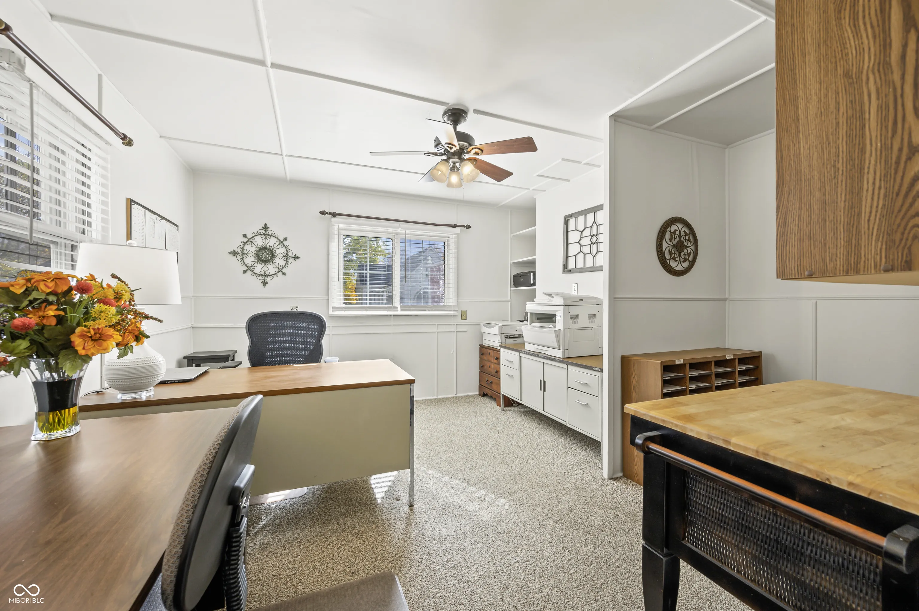 PRIME LOCATION: Situated in the heart of “newly developing” downtown Martinsville, shopping & schools. Close to I-69 & only minutes to Bloomington or Indy. Home features hardwood floors, lofted ceilings w/beams, fireplace with flush hearth and built-in bookshelves. BRAND NEW furnace, water heater & roof on garage (roof on home only a few years old). Property offers approximately 1400 sf on main level with additional 695 sf in unfinished basement (which could be finished for additional living space). Fenced backyard with two-car garage. Property is currently commercial office…some photos have been digitally staged/enhanced to show property’s potential as a Residence. *NOTE: Simple addition of kitchen needed to revert back to a home. Taxes will be greatly reduced when exemptions are filed for property as a residence.