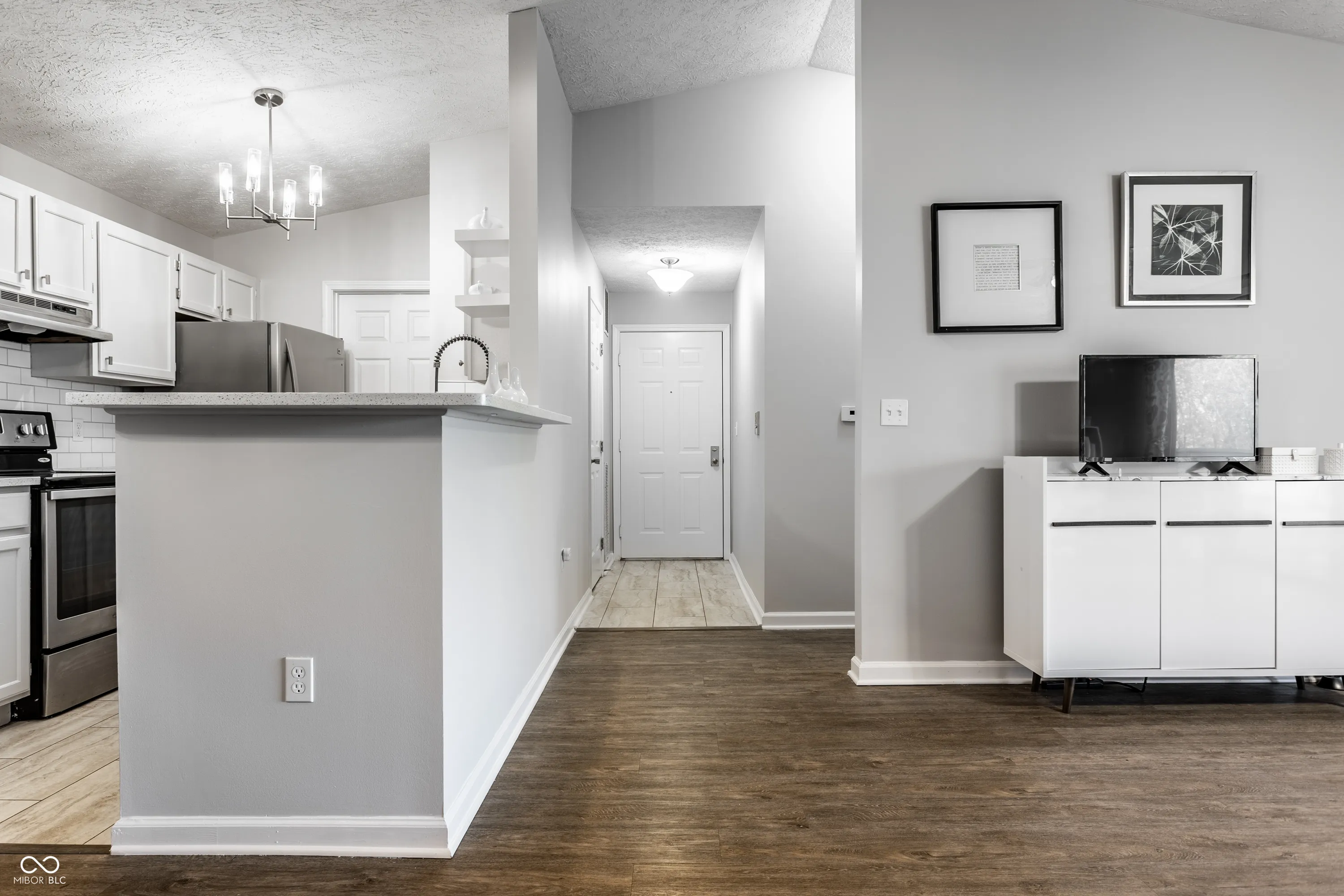 Highly sought after Lenox Trace condo ready for you! Enter this charming completely updated 2 Bed/2Bath gem with gleaming wood plank hardwood floors throughout! Kitchen offers all stainless steel appliances, pantry, breakfast bar, & plenty of cabinet and counter space leading to dining room. Owners suite is complete with walk-in closet and completely remodeled bathroom (currently used as office). Spacious living area with fireplace and slider leading to serene covered deck overlooking pond is ideal for relaxing coffee mornings. Updates include Furnace, Vinyl wood plank flooring, light fixtures, Owners bath vanity, sink & mirror, SS appliances and fresh paint. If you are looking to live in walking distance to the Monon Trail and enjoy all that downtown Carmel offers including-restaurants, breweries, Arts District, Midtown, The Palladium and biking the trail-You just found it!