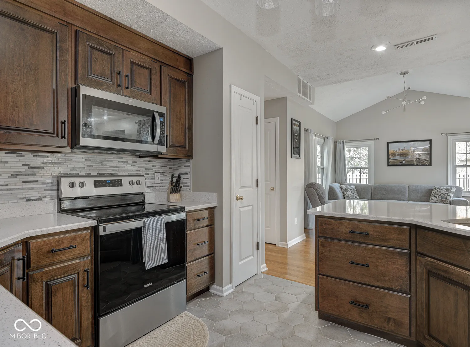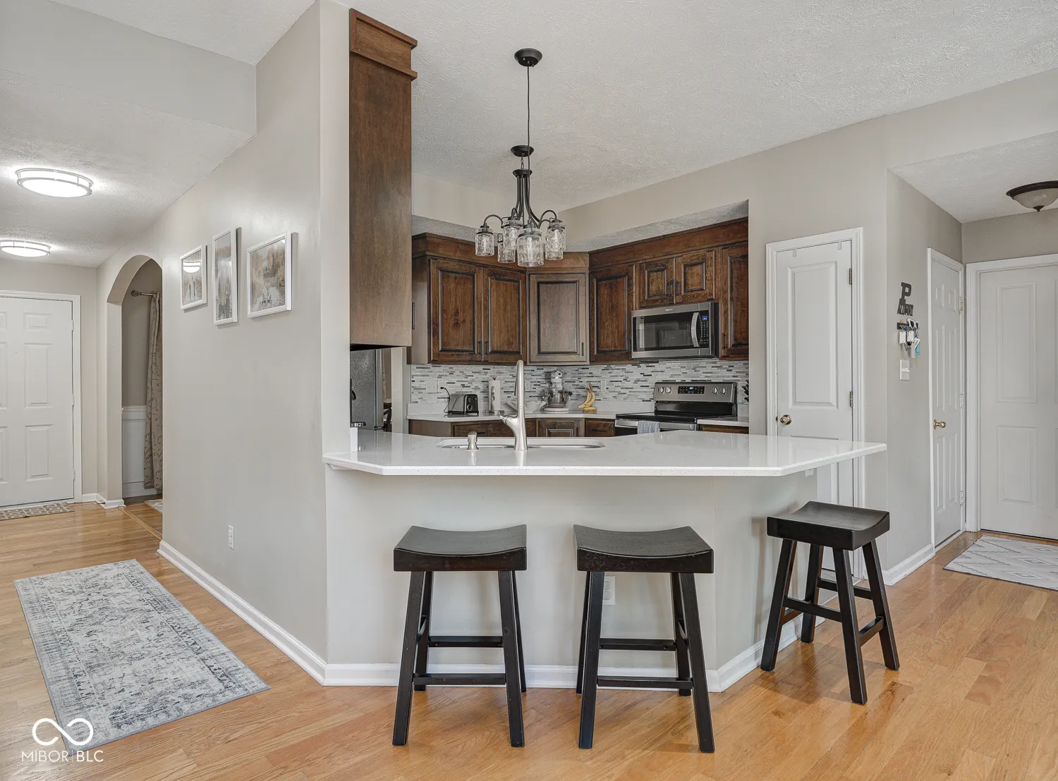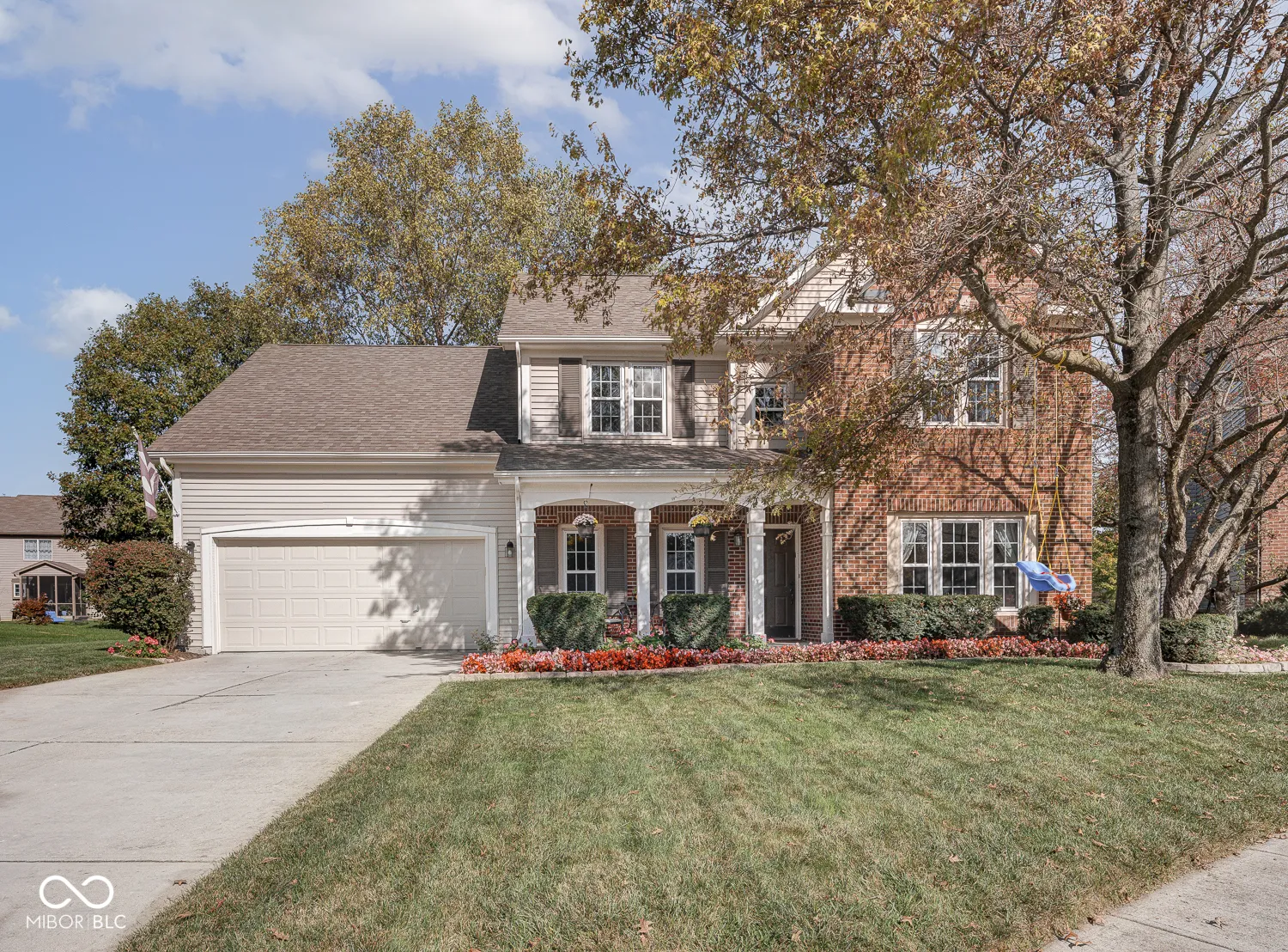 Pristine 4-bedroom home perfectly nestled on a cul-de-sac in The Parks at Springmill! Charming front porch leads to welcoming foyer with coat closet, art niche and hardwood floors. French doors open to a convenient main level home office/den with nearby half bath. Generous formal dining room features an arched entry and custom wainscoting. Dreamy kitchen was fully renovated in 2022 with hex floor tile, custom slow-close cabinets, quartz counters and a Whirlpool appliance package. Every detail was carefully planned including the tile backsplash, under-cabinet lighting and tasteful hardware/fixtures. Breakfast bar overlooks the formal living room and inviting sun room for seamless entertaining. Step outside onto the large concrete patio in your fully fenced and private backyard! Upstairs, you’ll find 4 sizeable bedrooms with generous storage and new carpet! Primary retreat features cathedral ceiling, ensuite bathroom with new shower door/glass and walk-in closet! New water heater in Spring of 2023. Active neighborhood with walking trails, 5 ponds, swimming pool, playground, picnic areas, tennis and basketball courts! Easy access to downtown Carmel, US-31 and highly rated schools. This home has everything on your list!